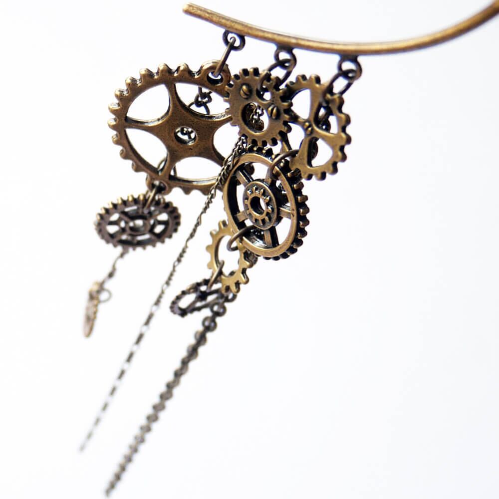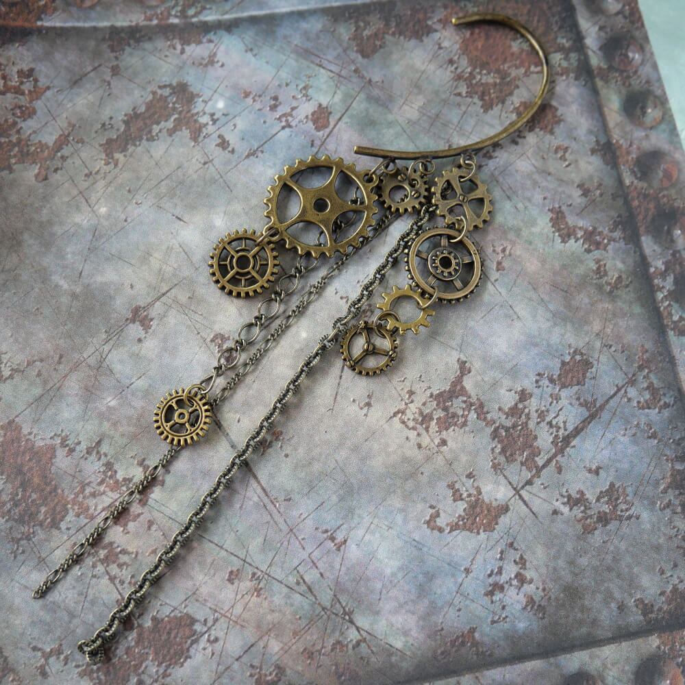歯車パーツを使用したスチームパンク系のイヤーフック