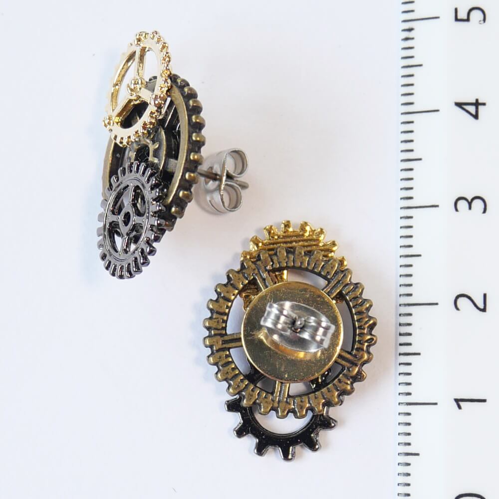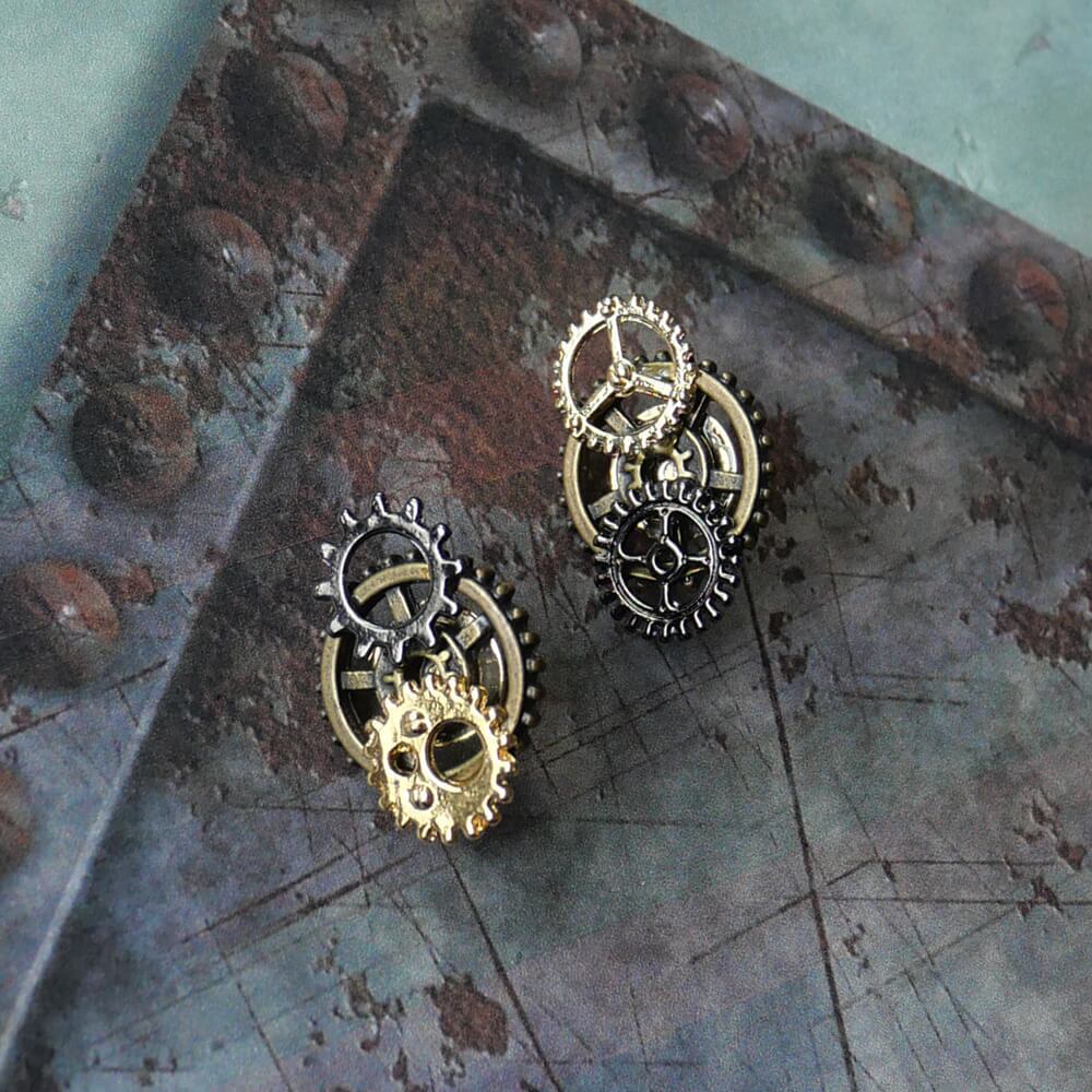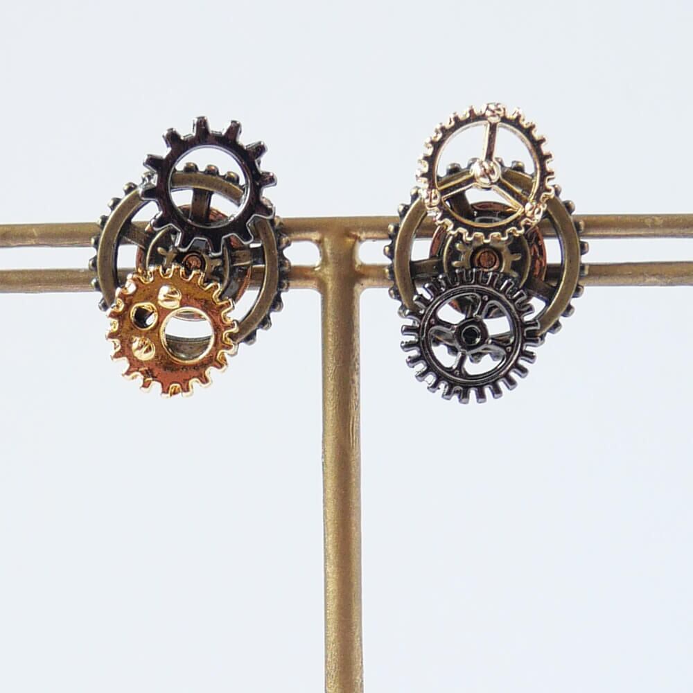 3種類の歯車パーツを使用したスチームパンク系ピアス