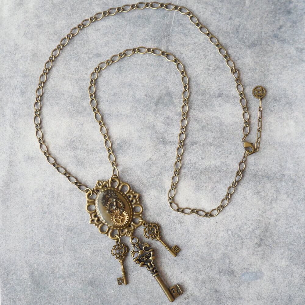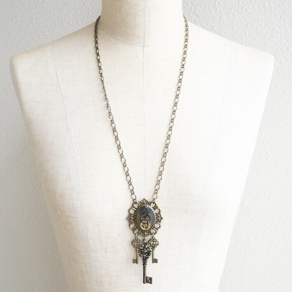 様々な歯車を組み合わせたヘッドパーツにアンティークテイストの鍵が3つ