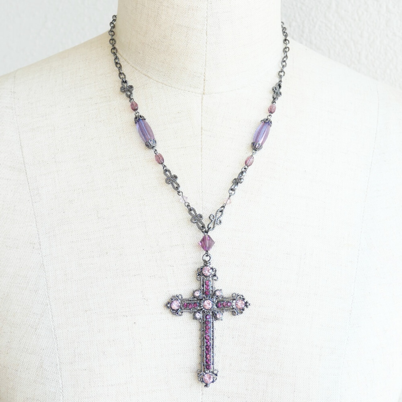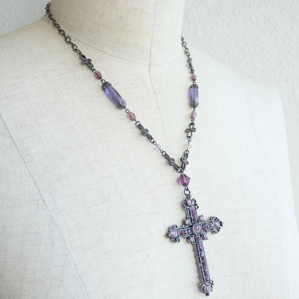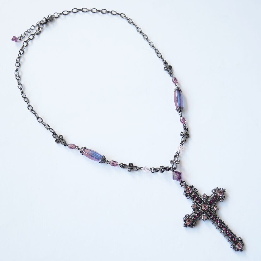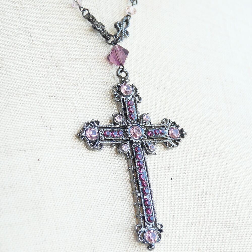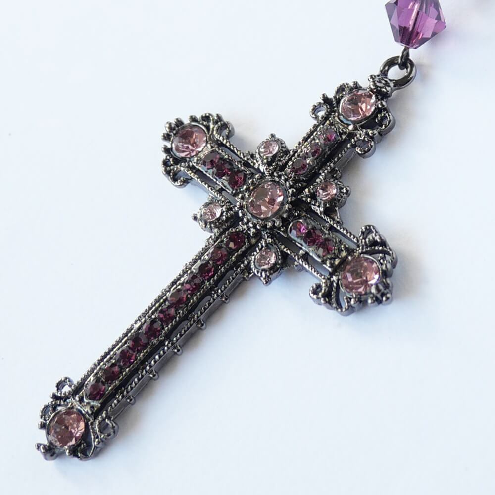 アメジスト、ライトアメジストカラーのストーンを散りばめた紫系の十字架