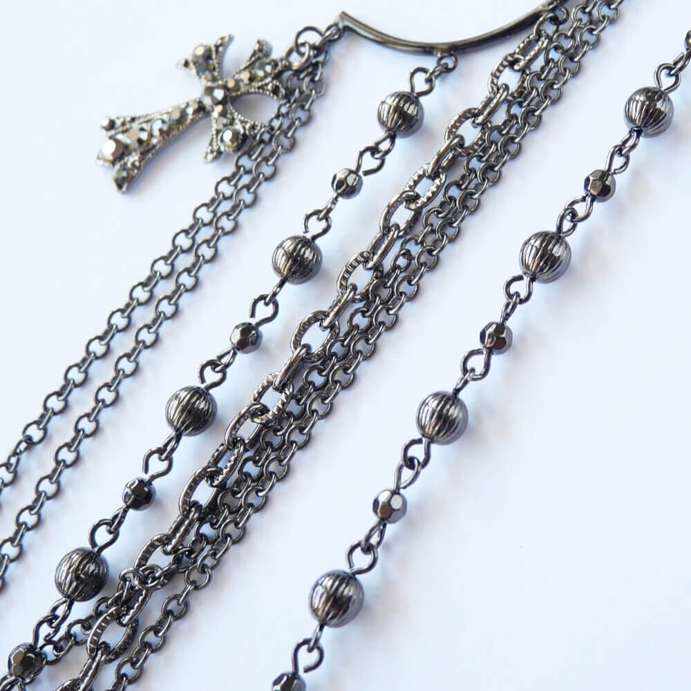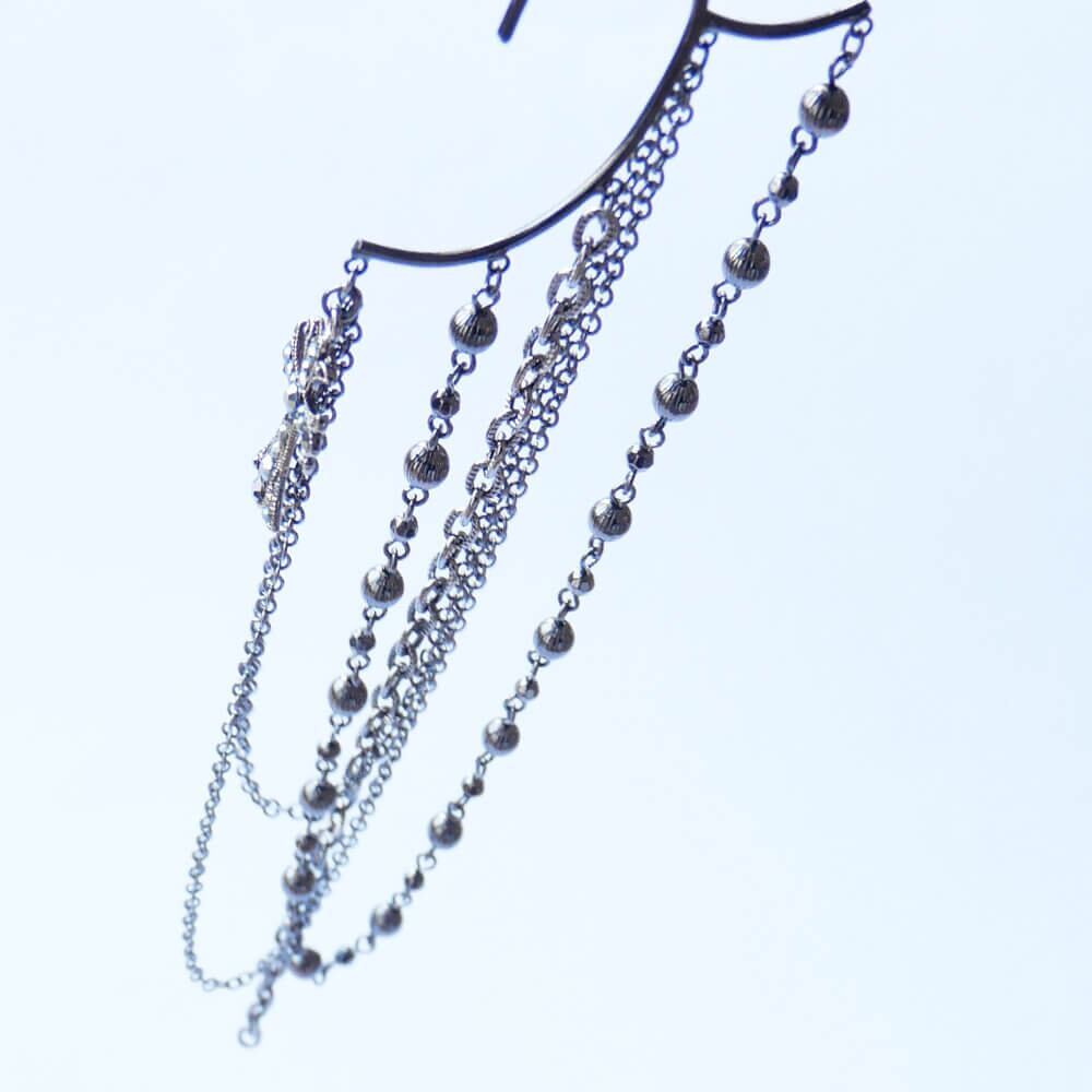 メタルクロスと様々なガンメタチェーンが揺れるデザインが特徴のイヤーフック