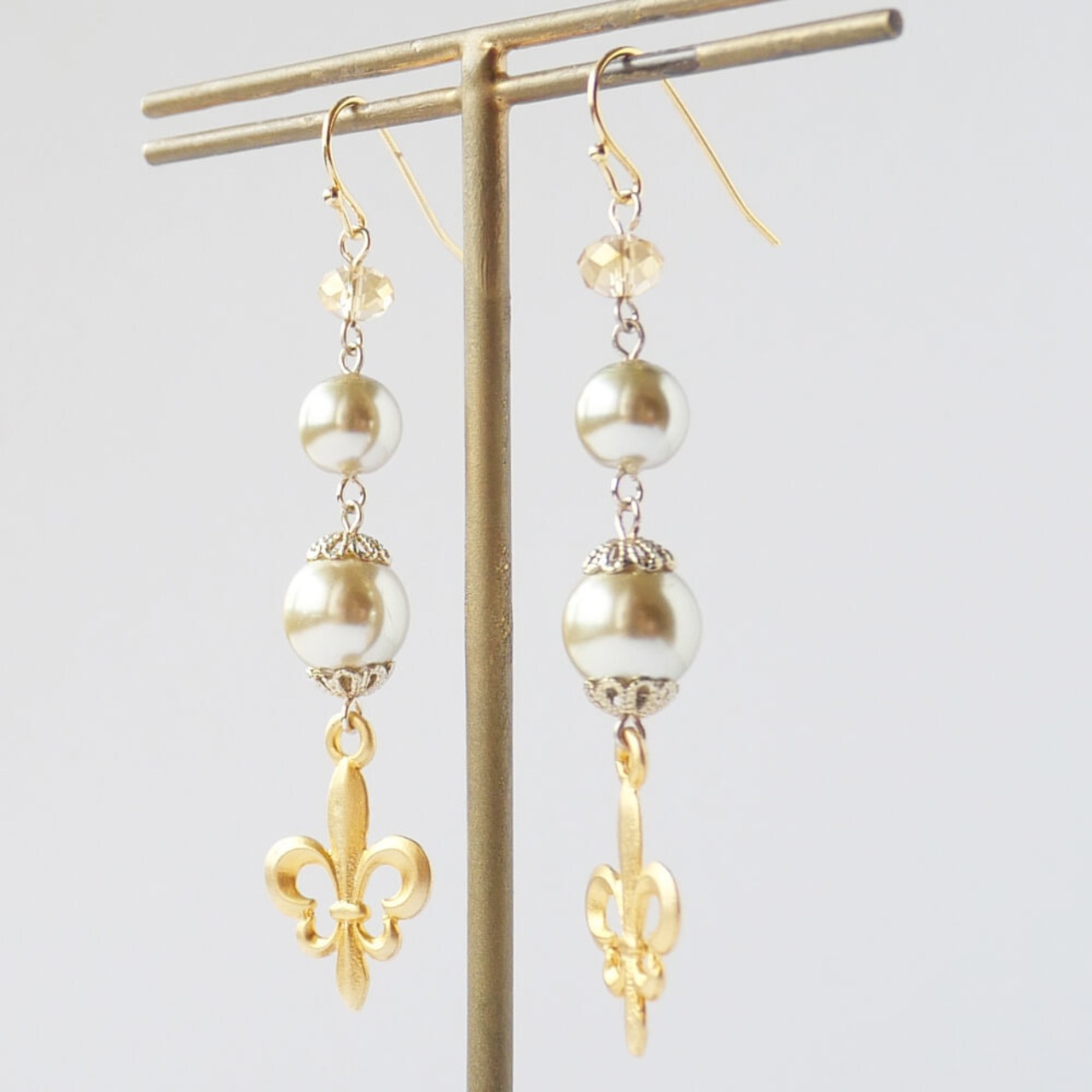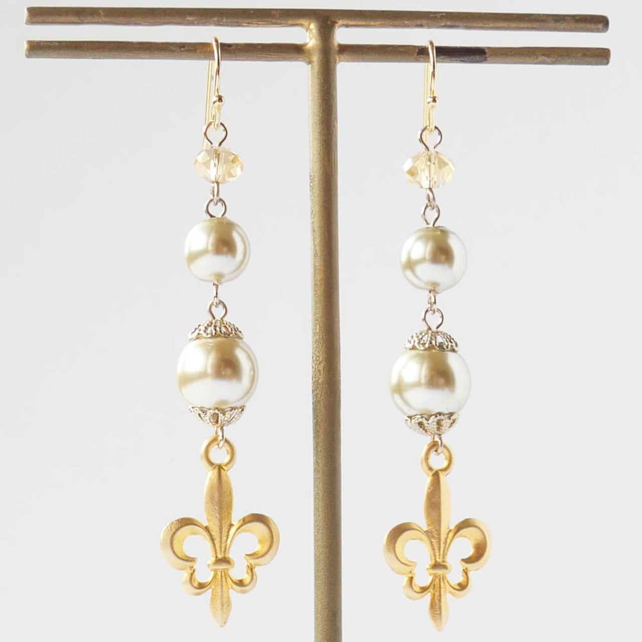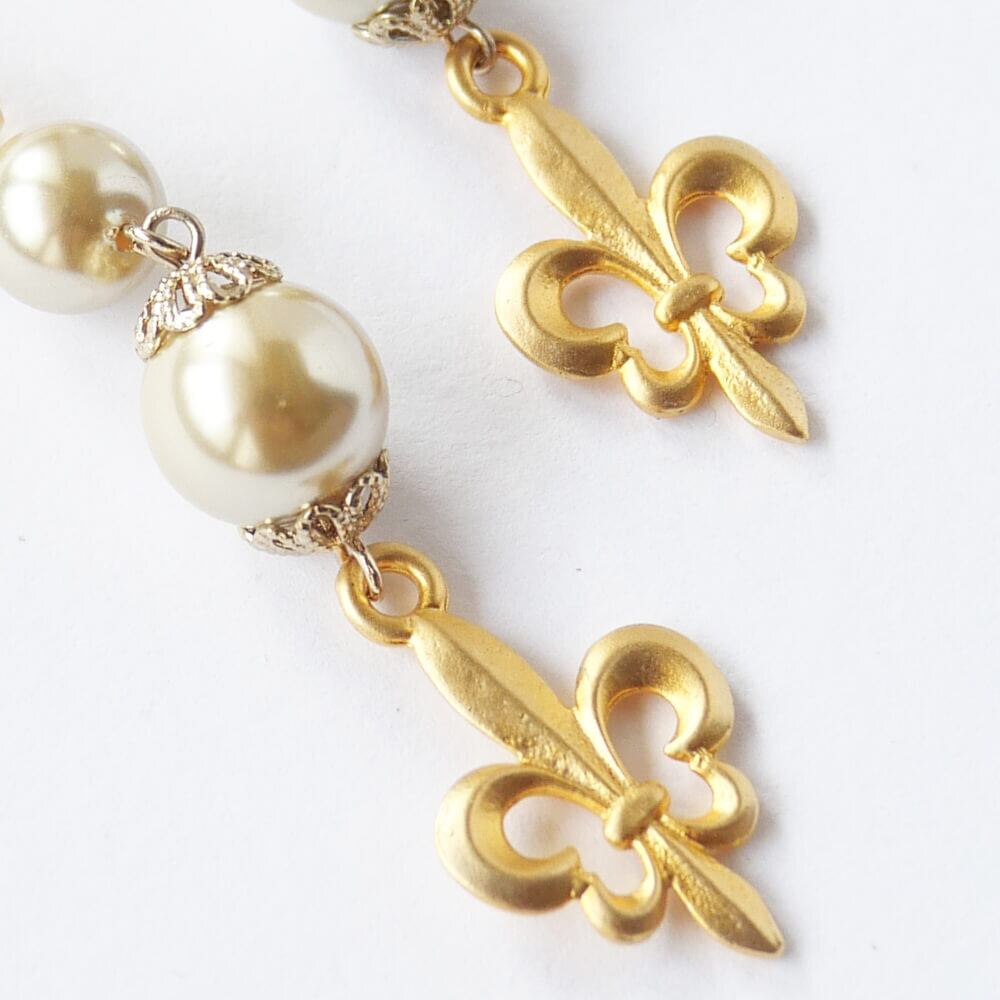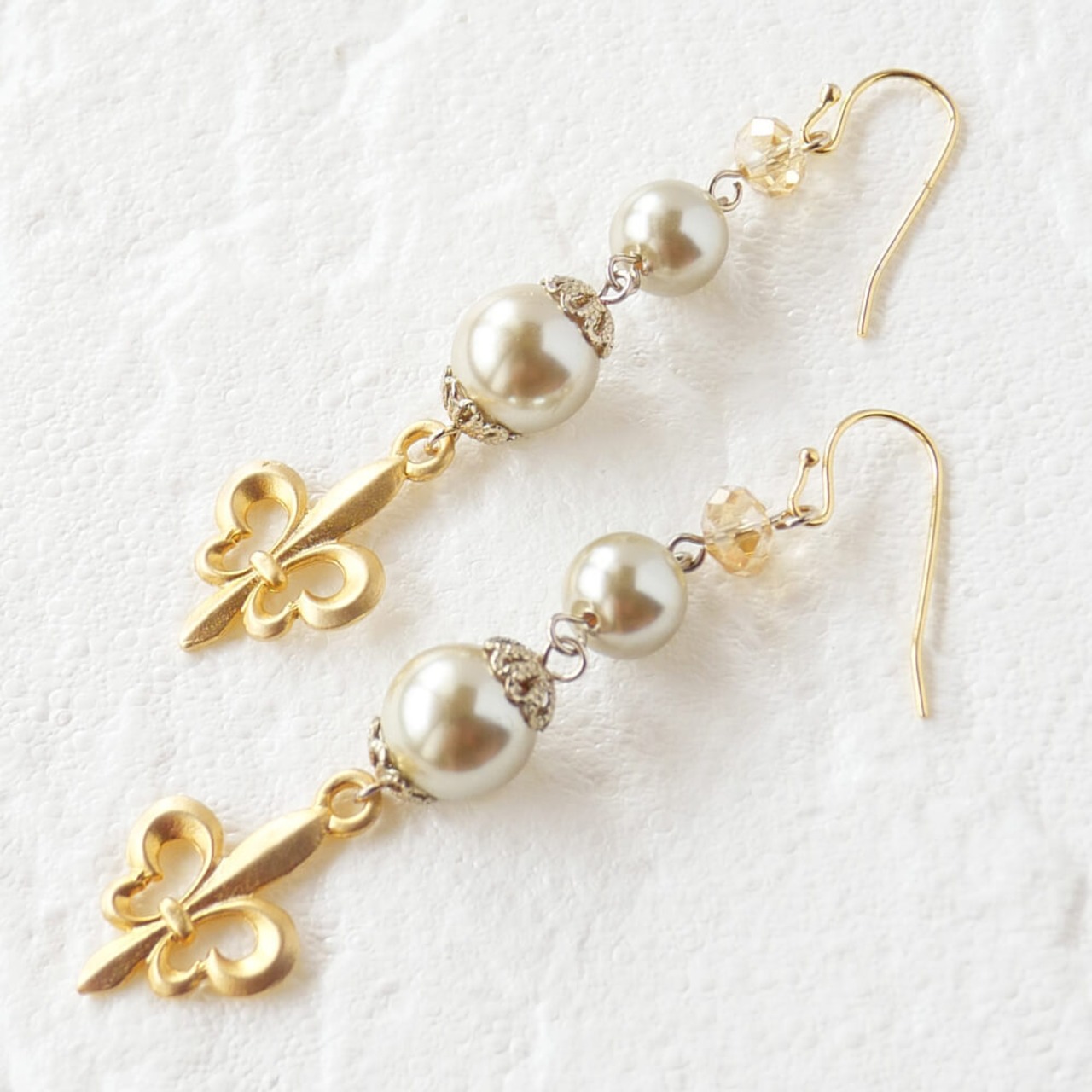 ベージュパールとクリスタルのアンティーク系 ピアス