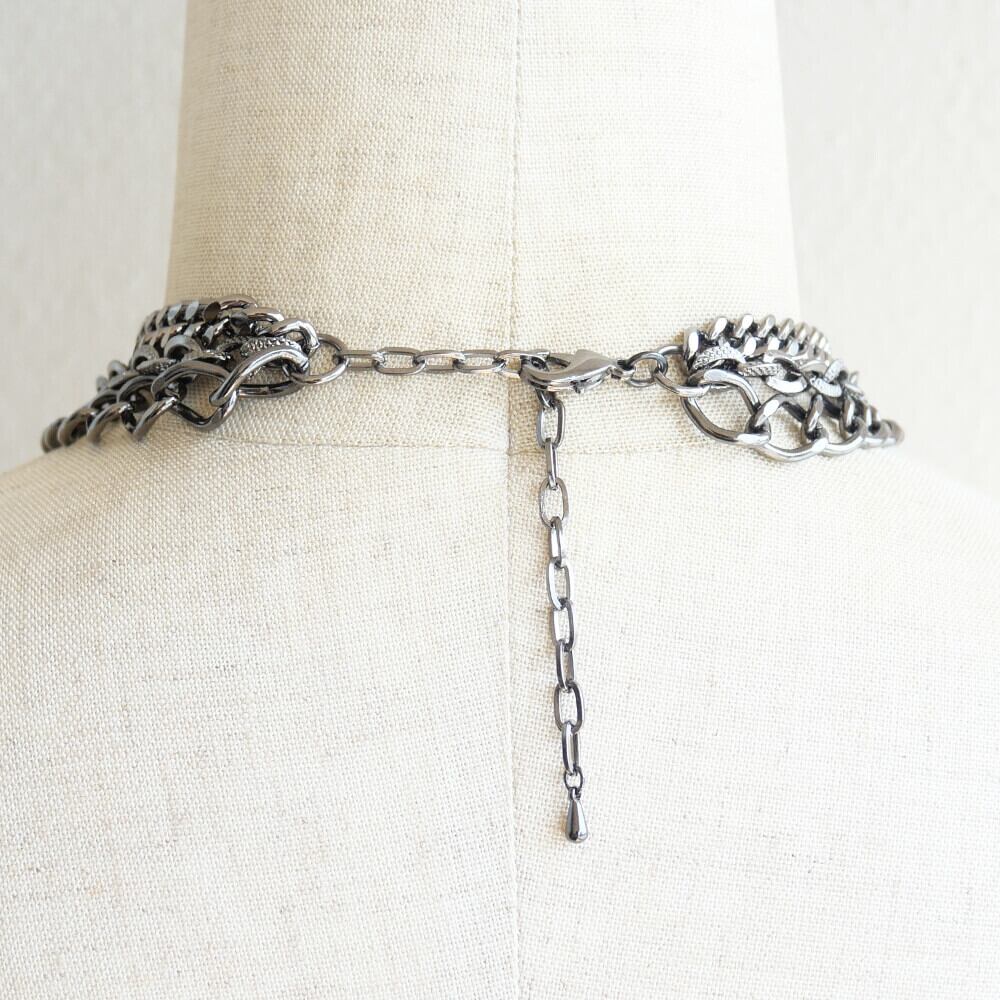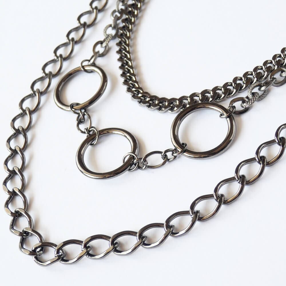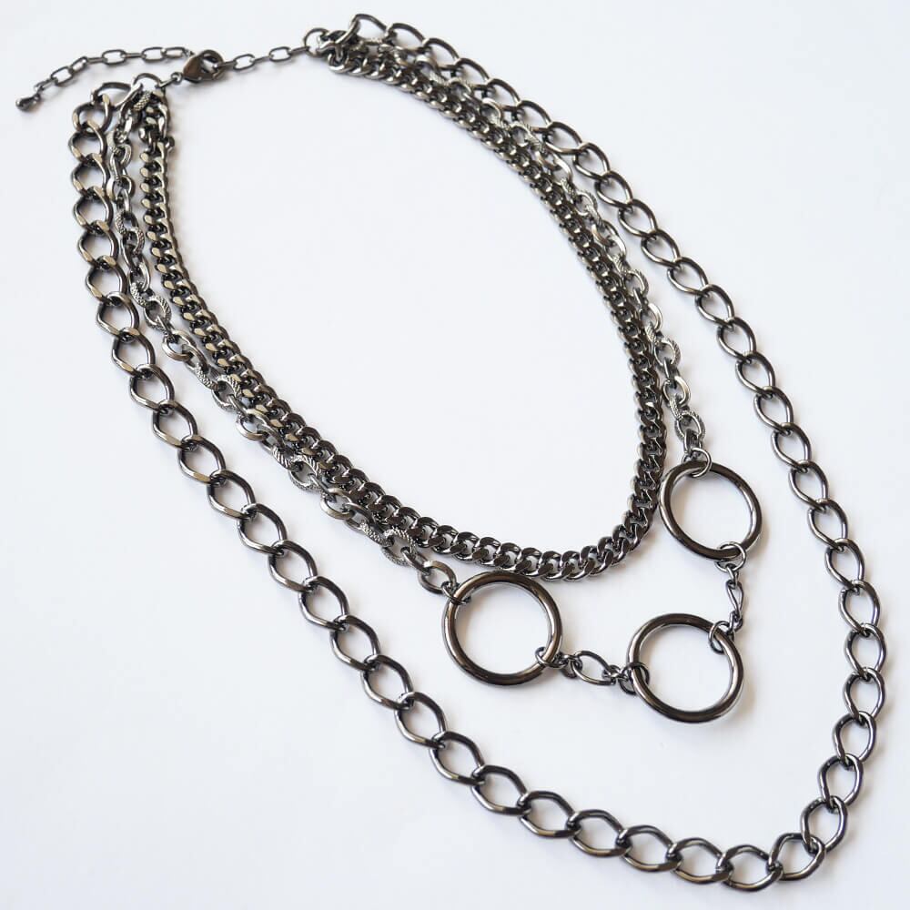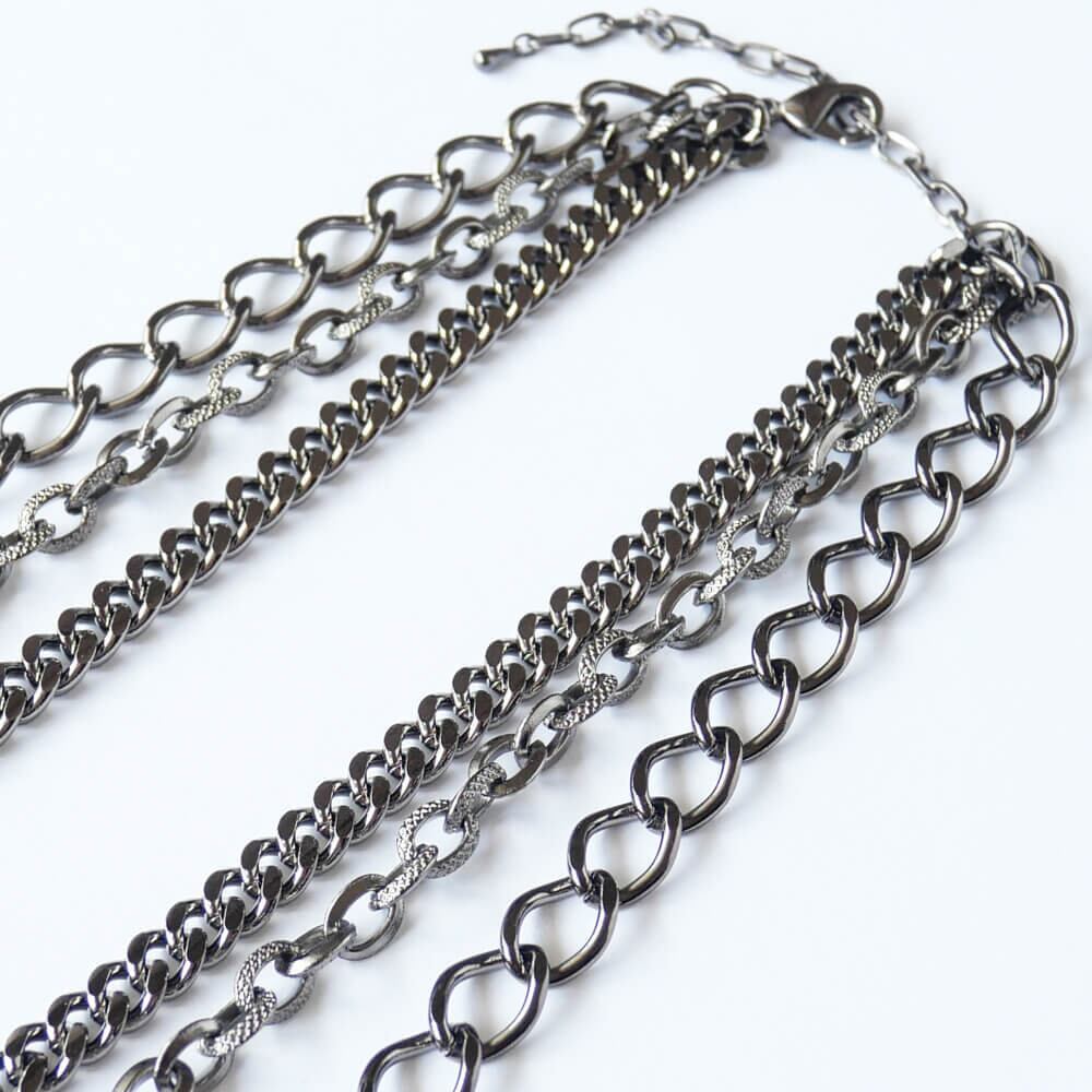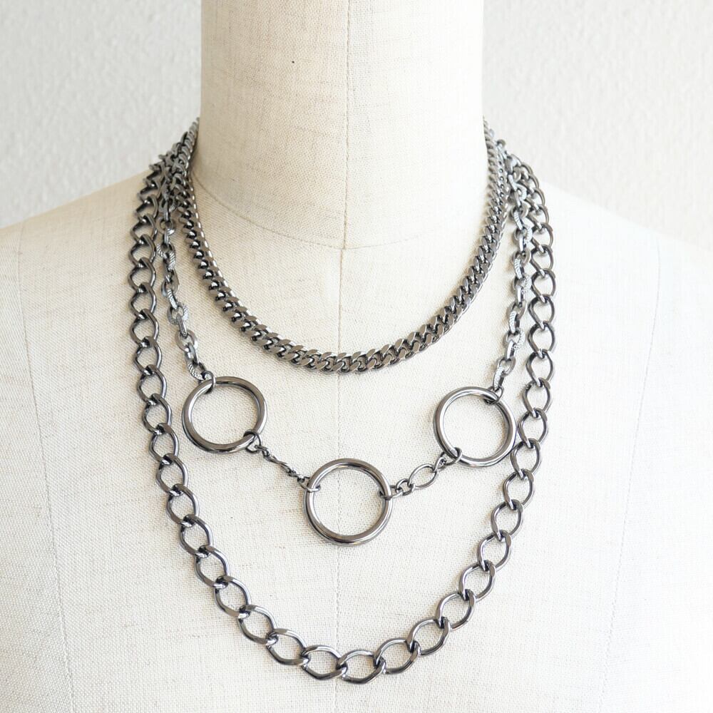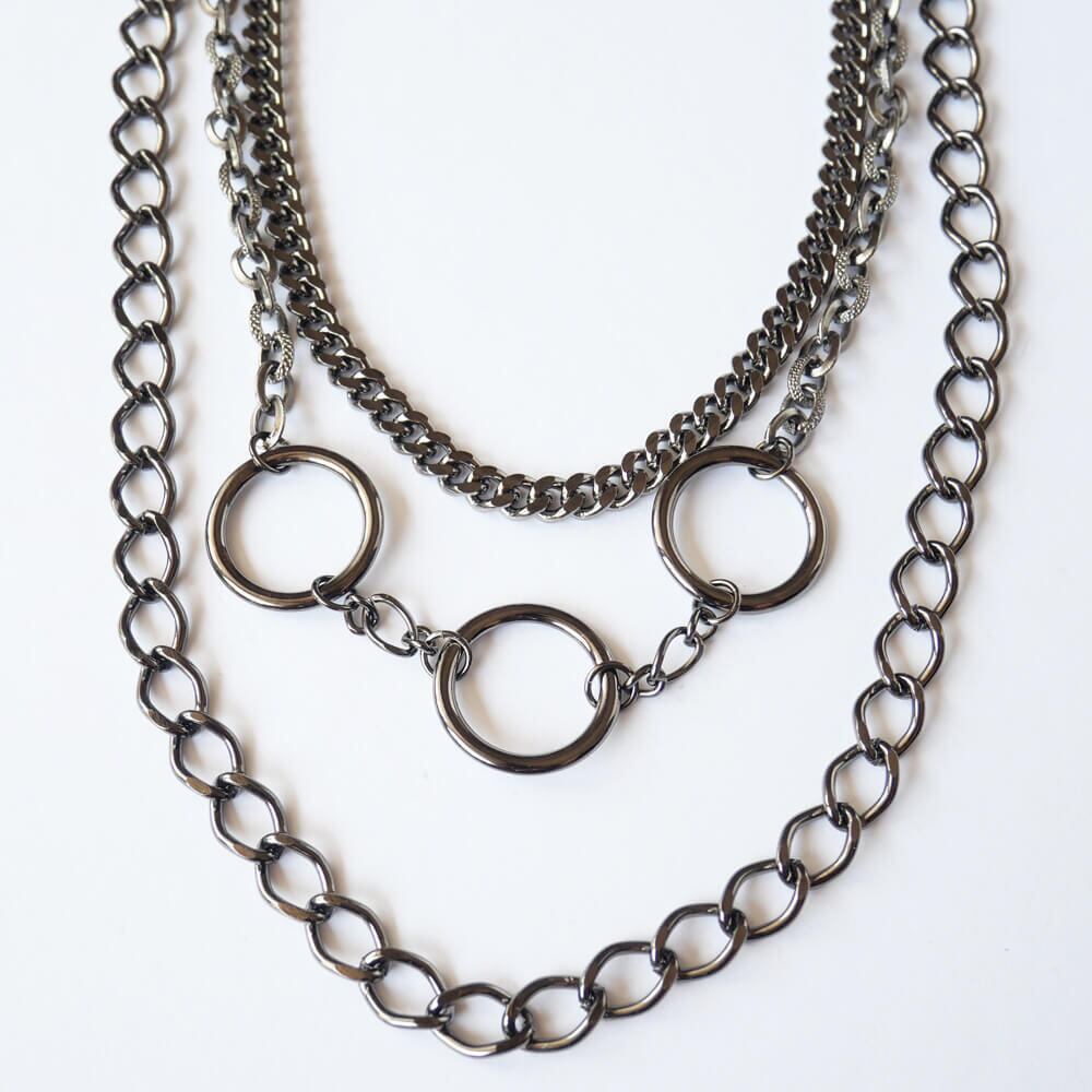 このアクセサリーだけで存在感十分の3連のハード系パンクチョーカーネックレス