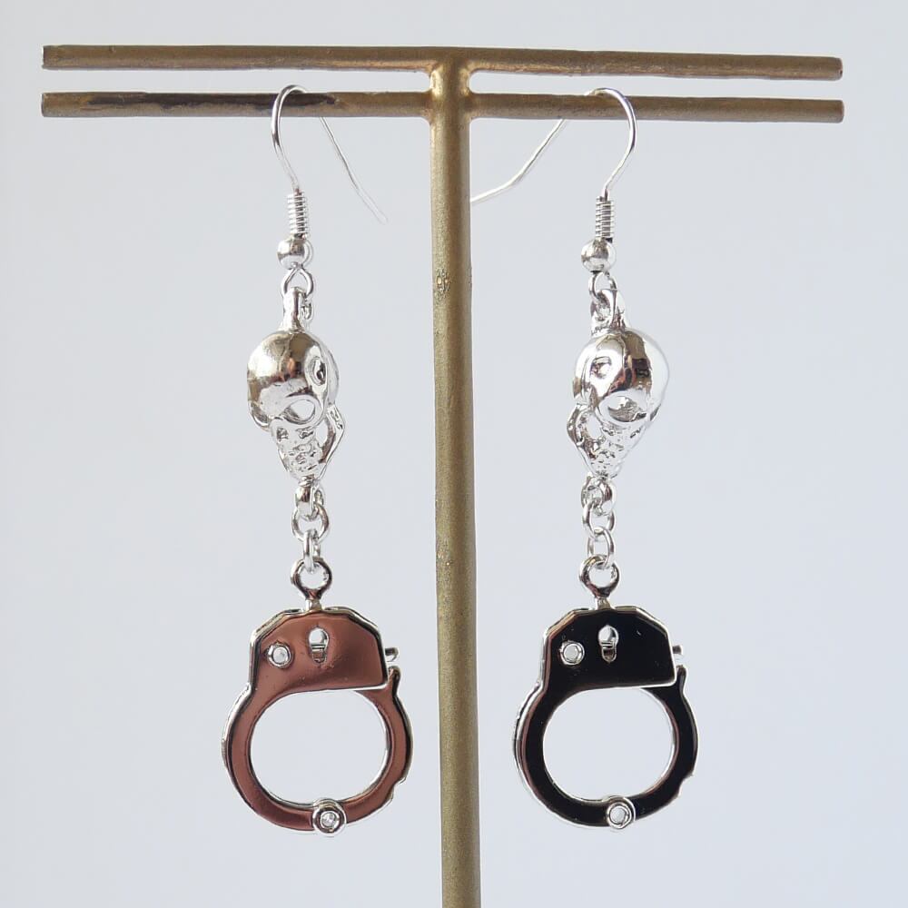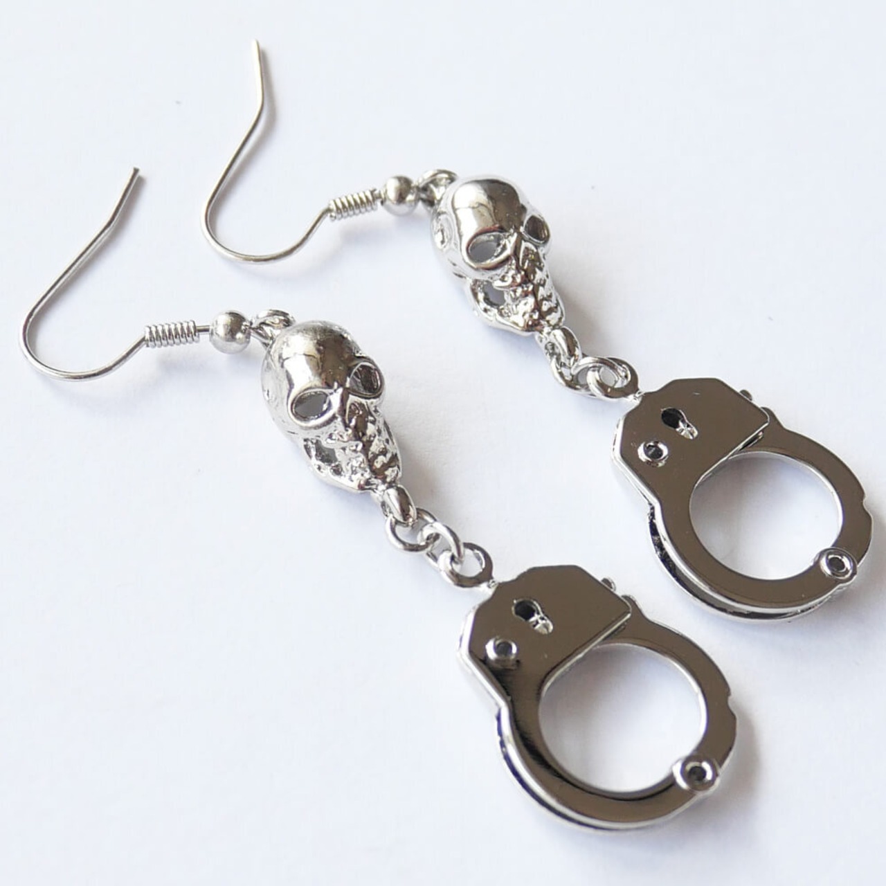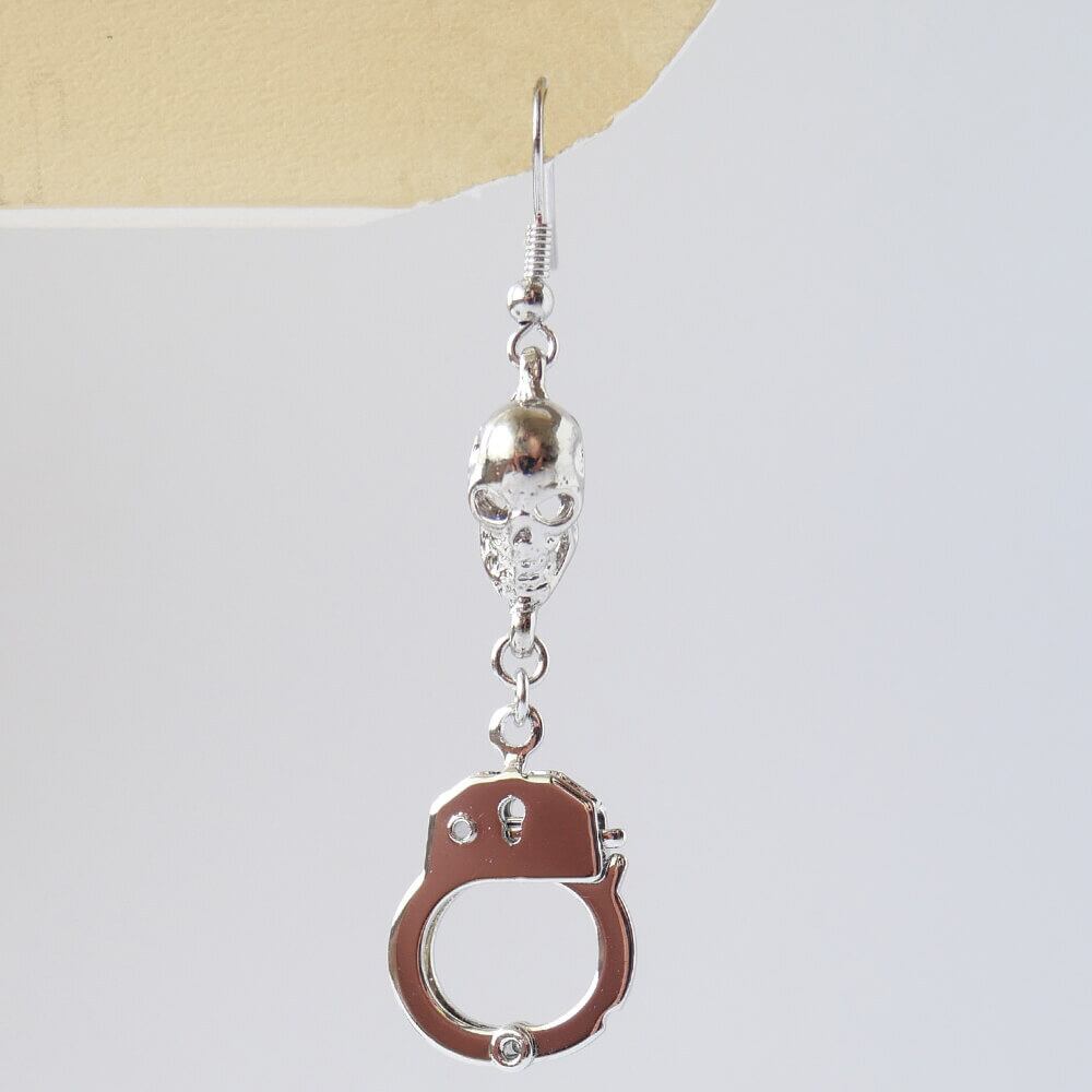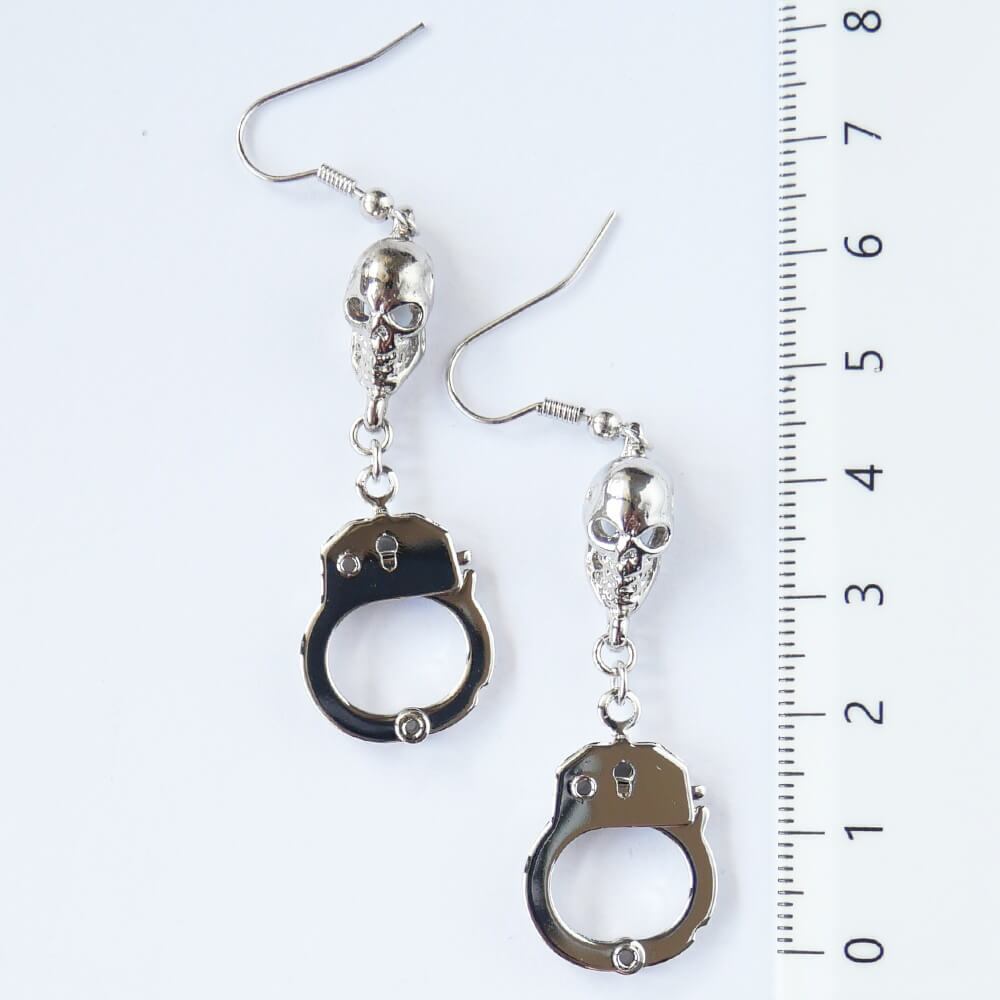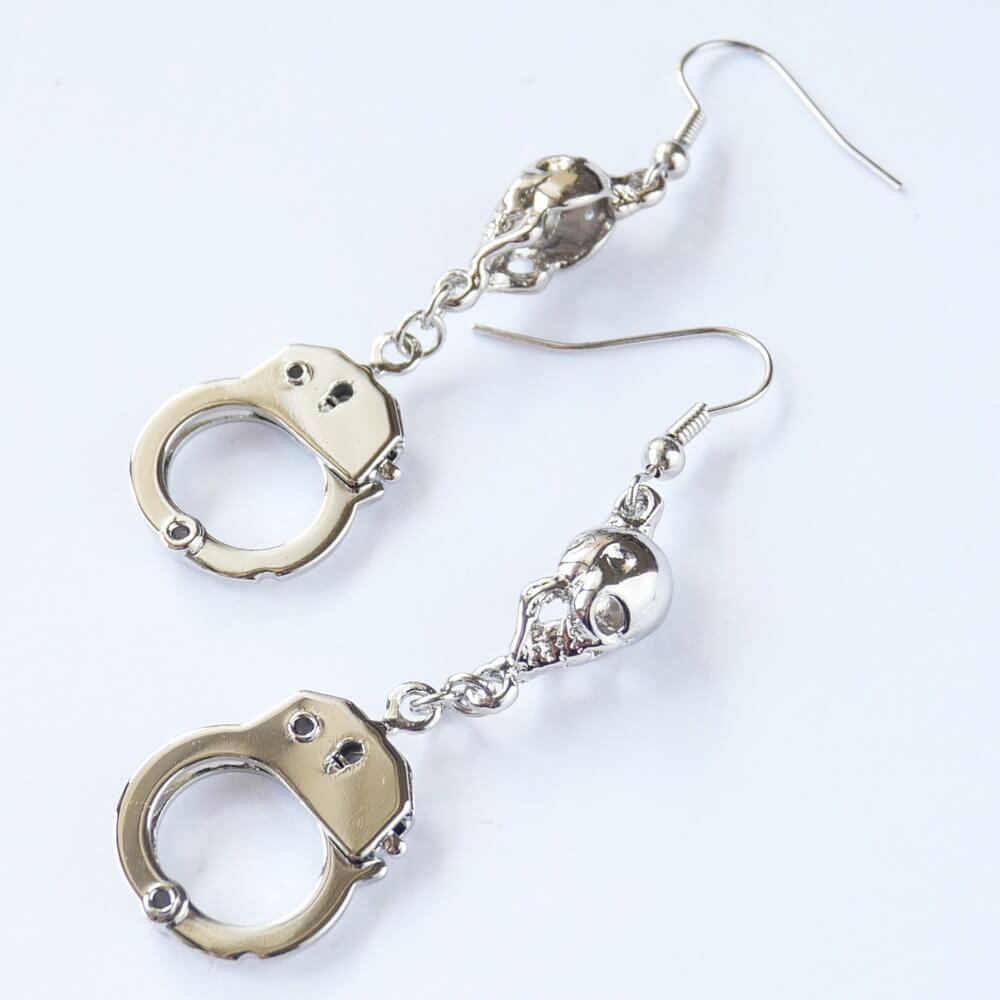 髑髏と手錠が揺れるパンク系フックタイプ系ピアス