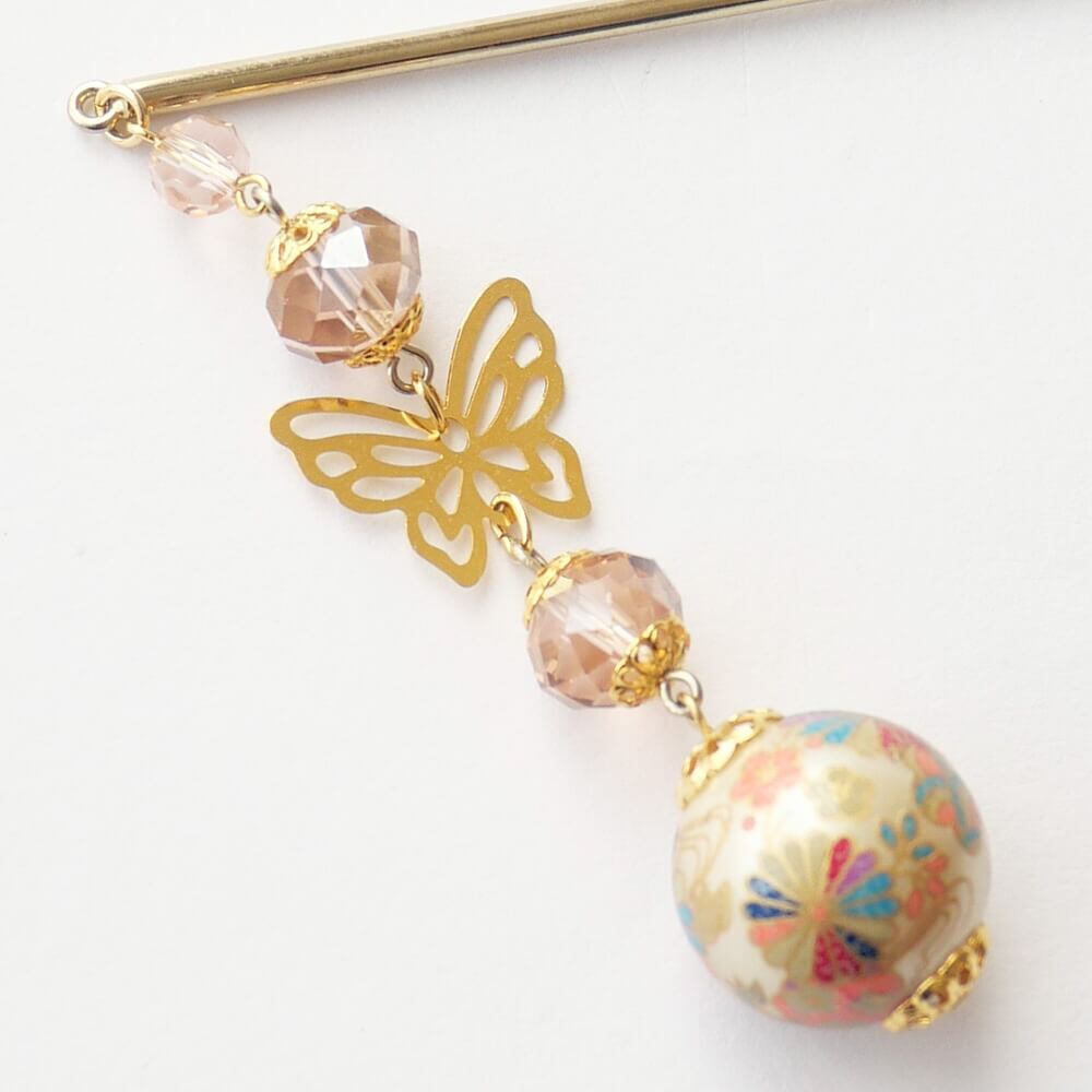 パール珠に和柄を転写し、和ゴススタイルに合わせられる
