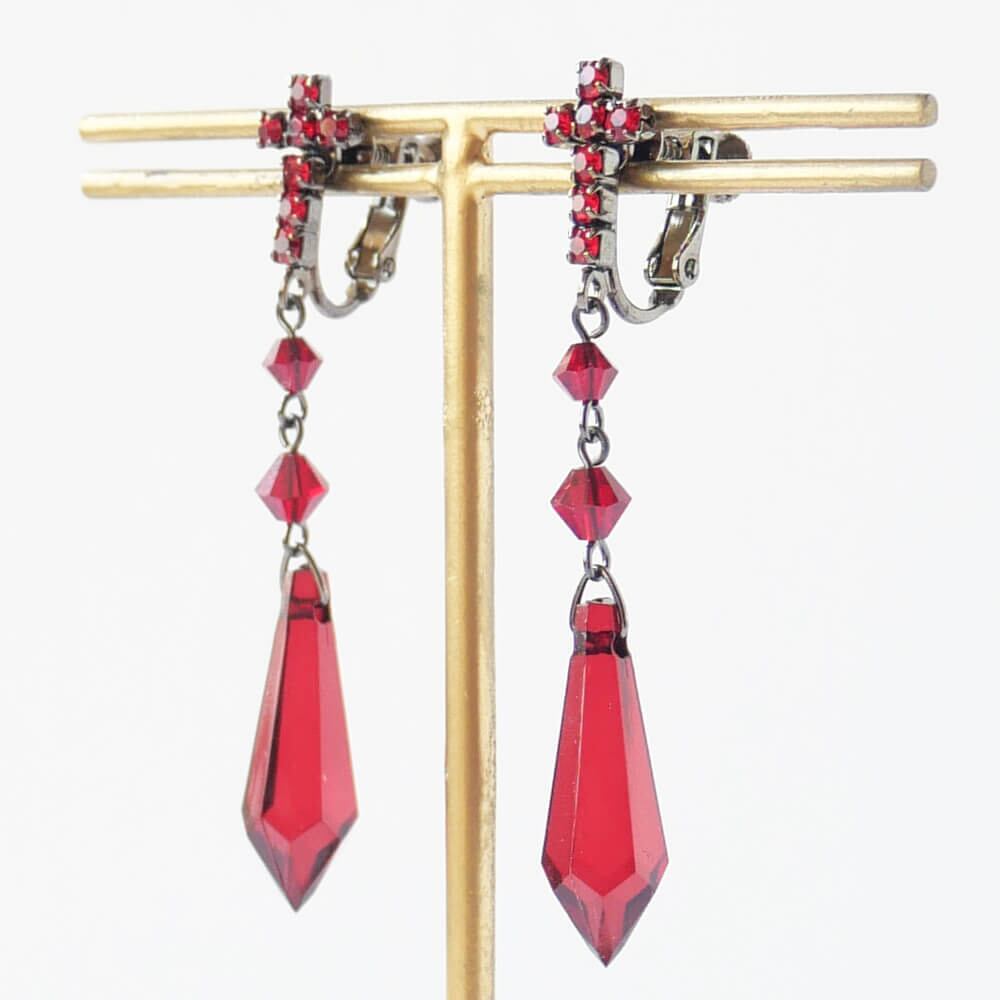 ゴシックスタイルから黒系、赤系のドレスに合わせられる十字架イヤリングです。