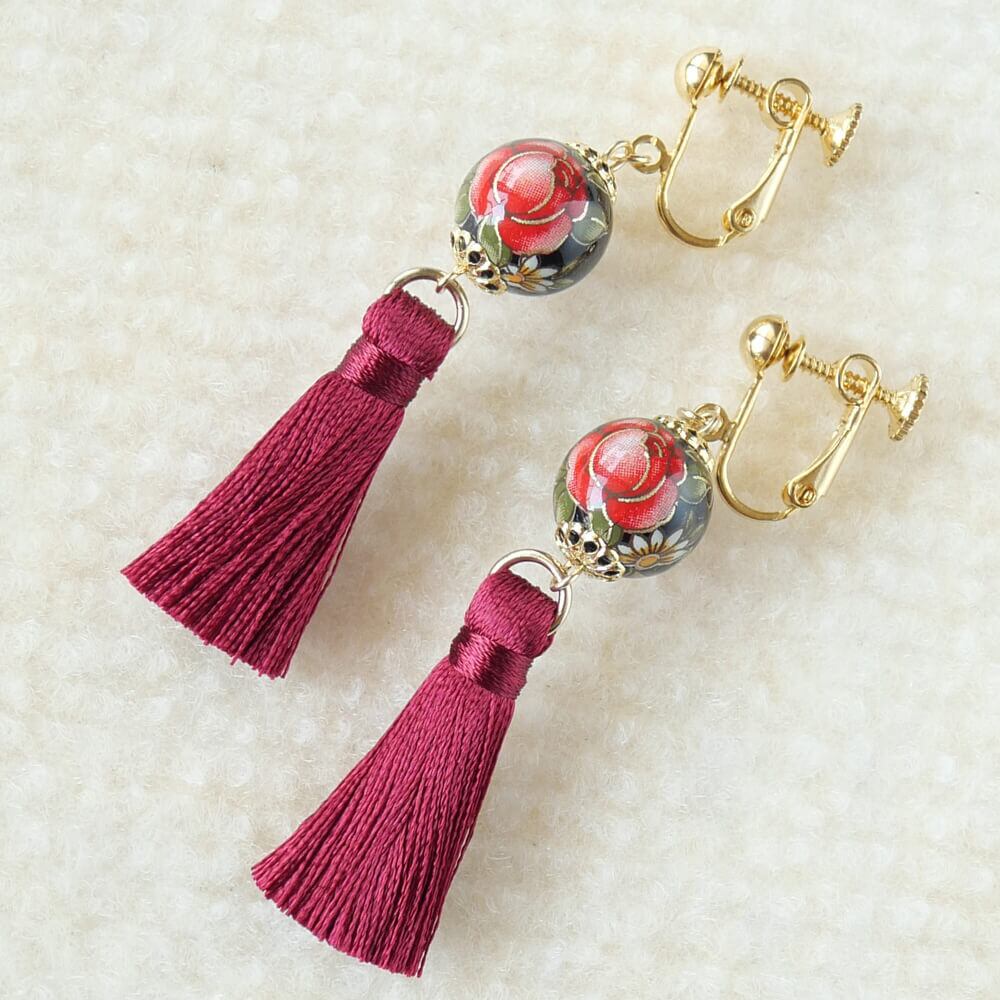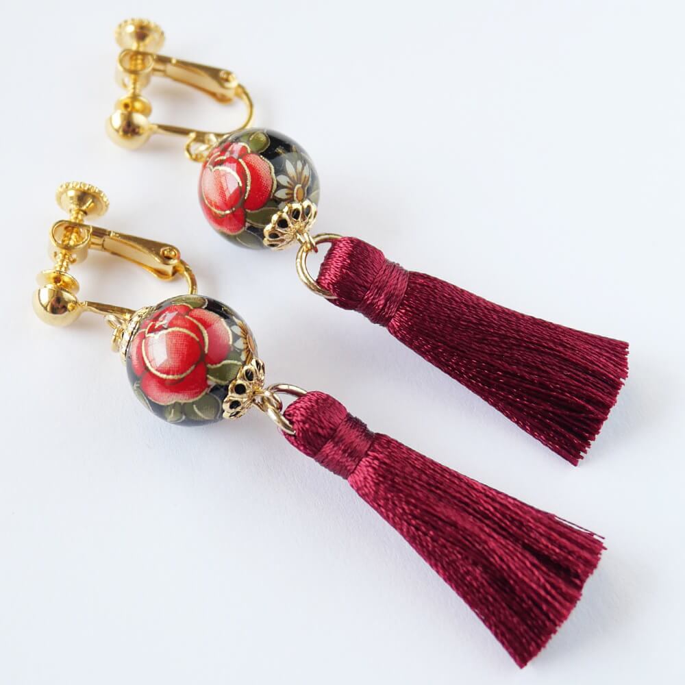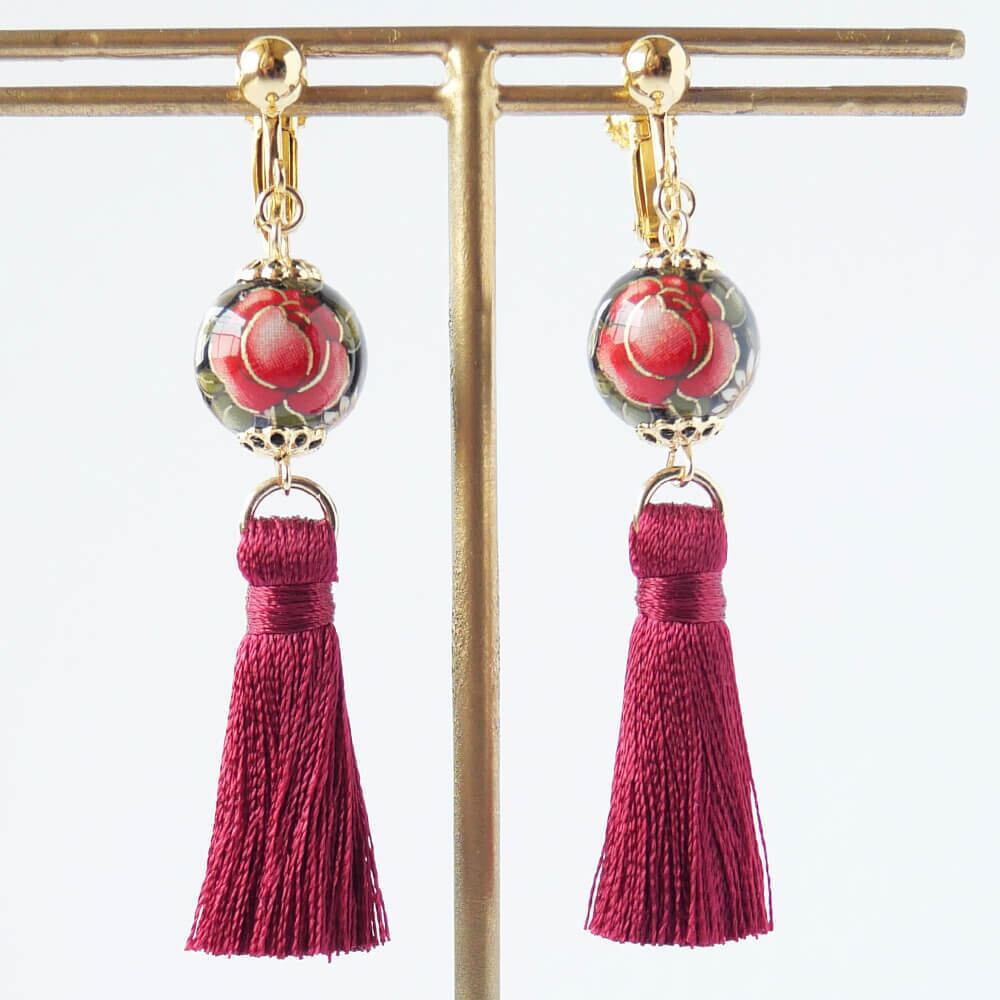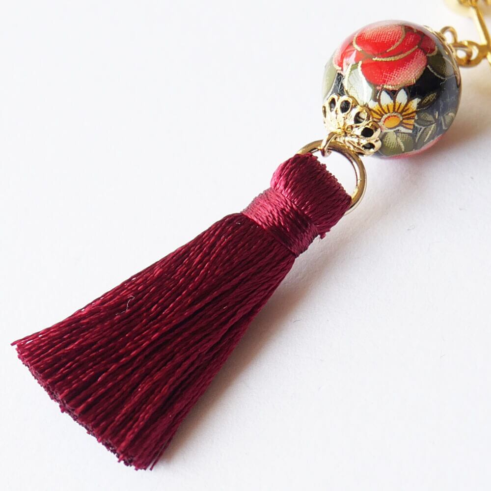 えんじ色の房が和のテイストを引き立て、和ゴスや着物ともマッチ