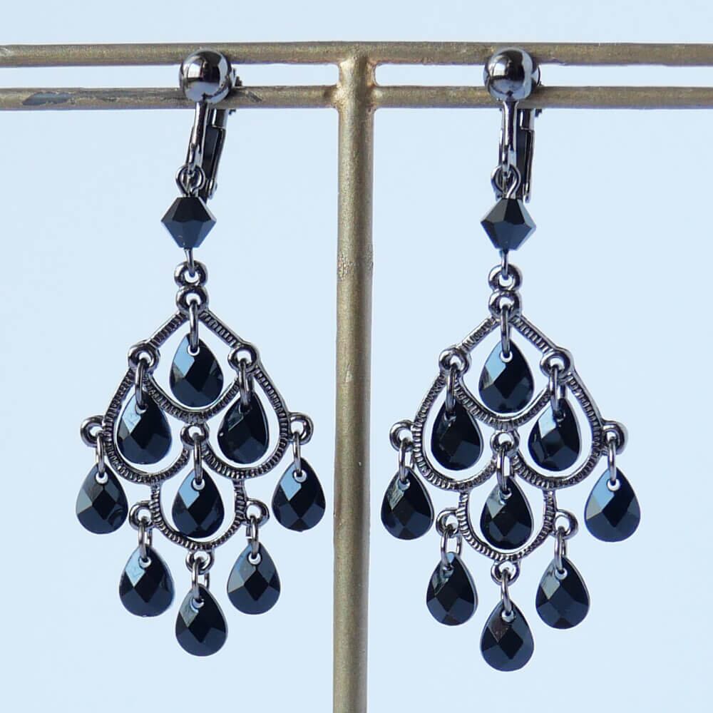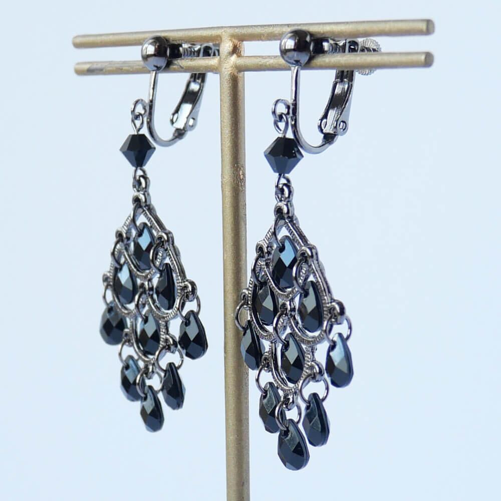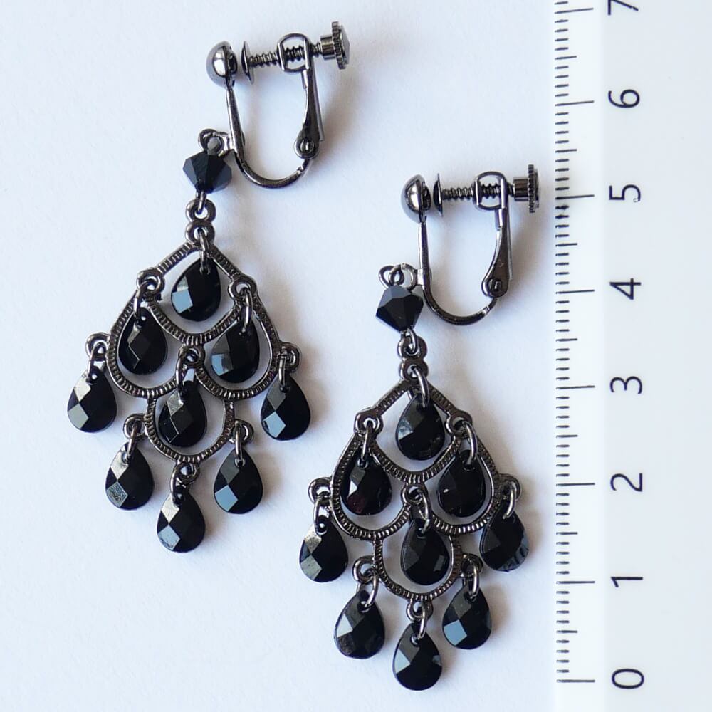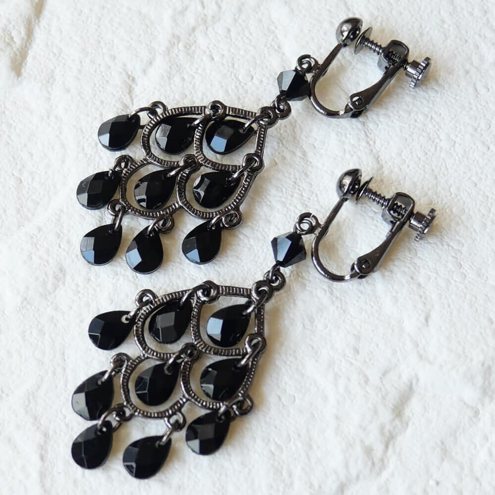【ゴシック】ブラック クリスタル シャンデリアイヤリング