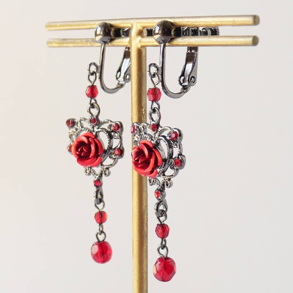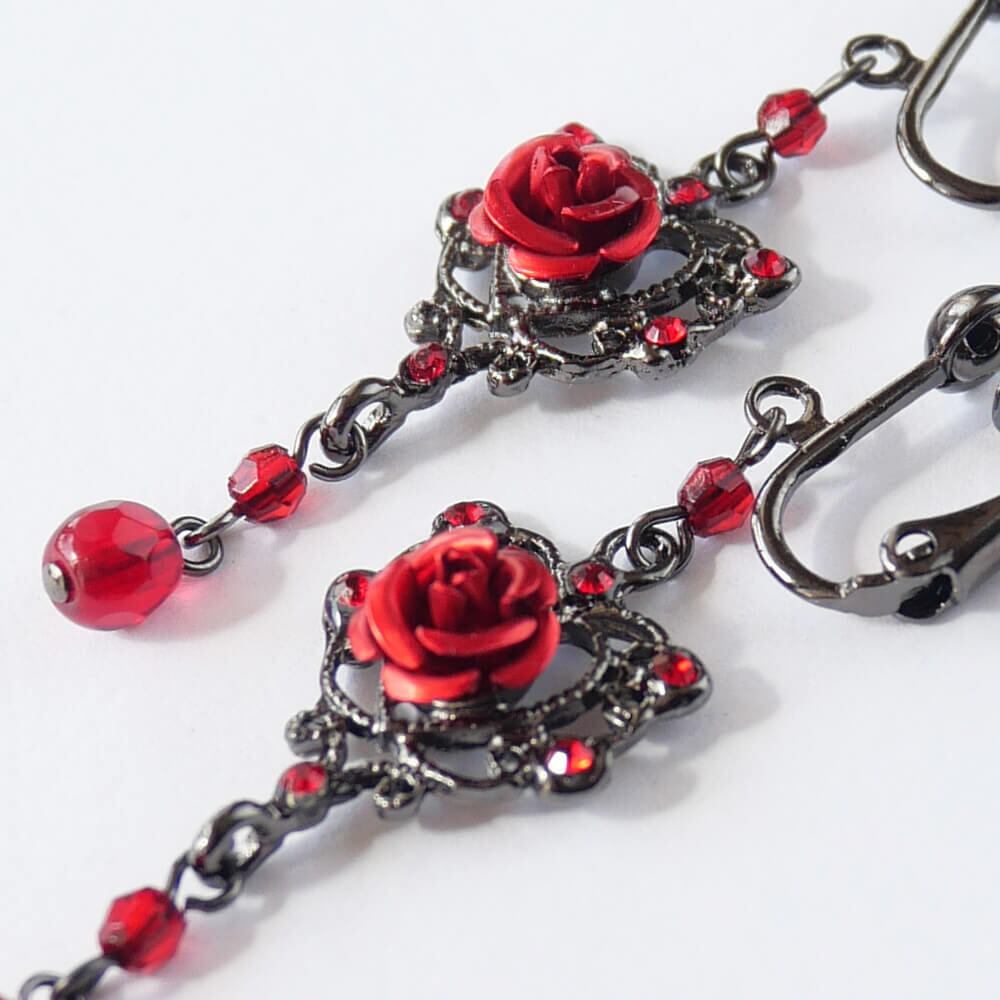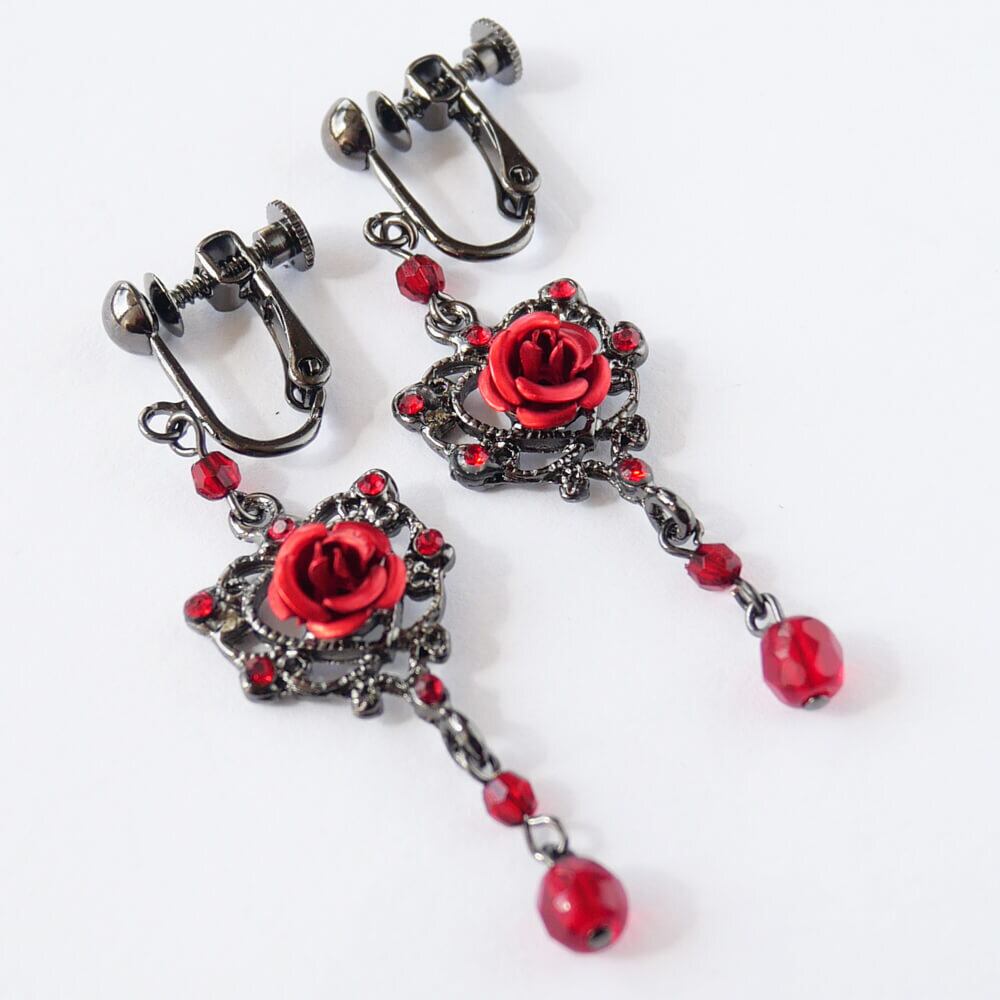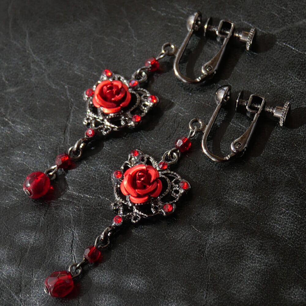 6つのレッドクリスタルを散りばめ中央には赤いメタルローズ