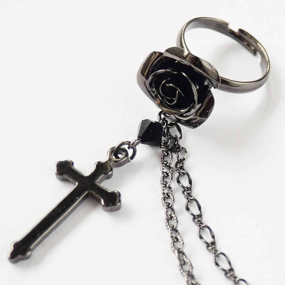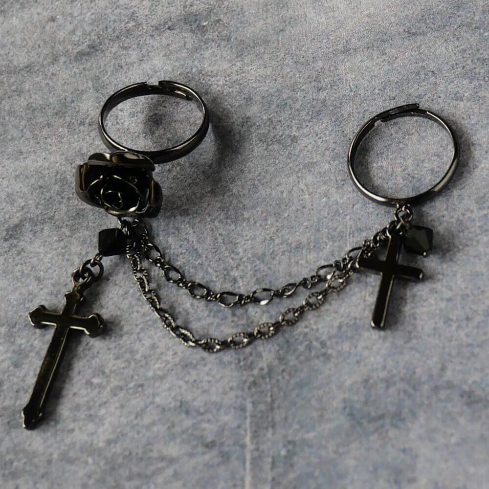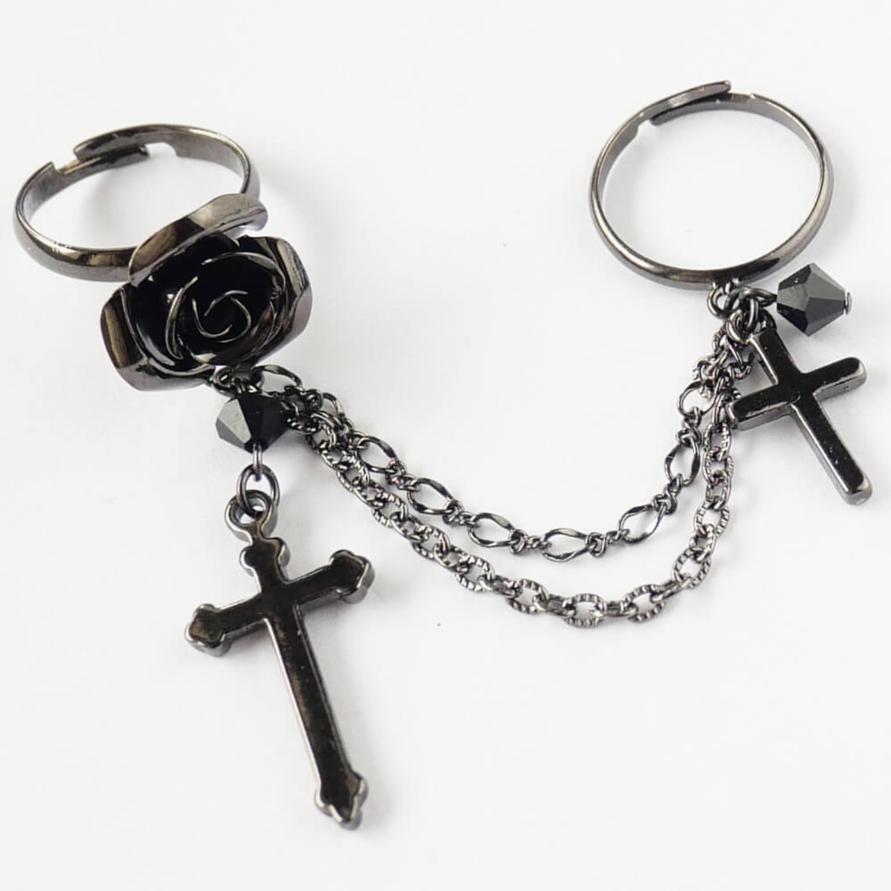 ゴシックロリータの美学を取り入れ、2つのリングが2連チェーンでつながっており、手元に個性的なアクセントを加えます。