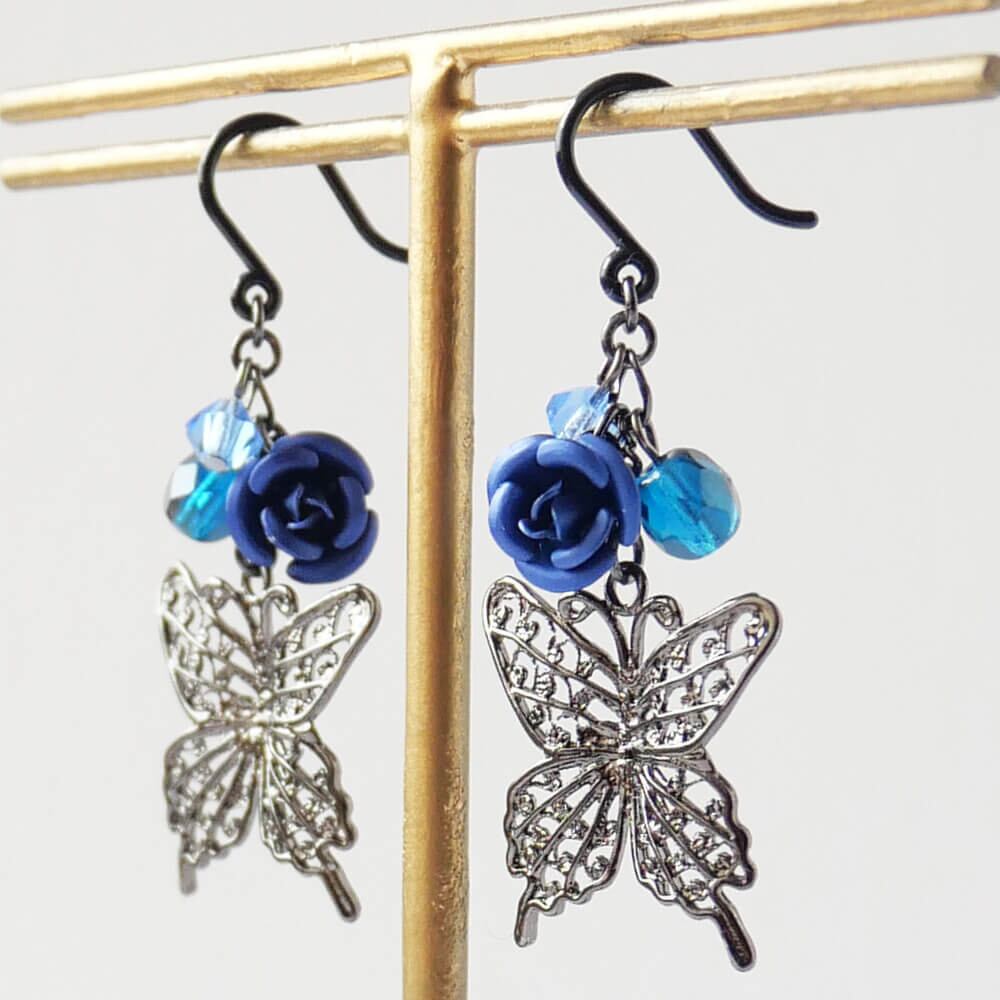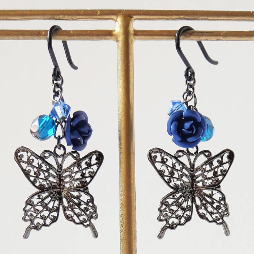 繊細なステンド蝶パーツがアクセントとなり、ゴスロリ系のスタイルを一層引き立てます。