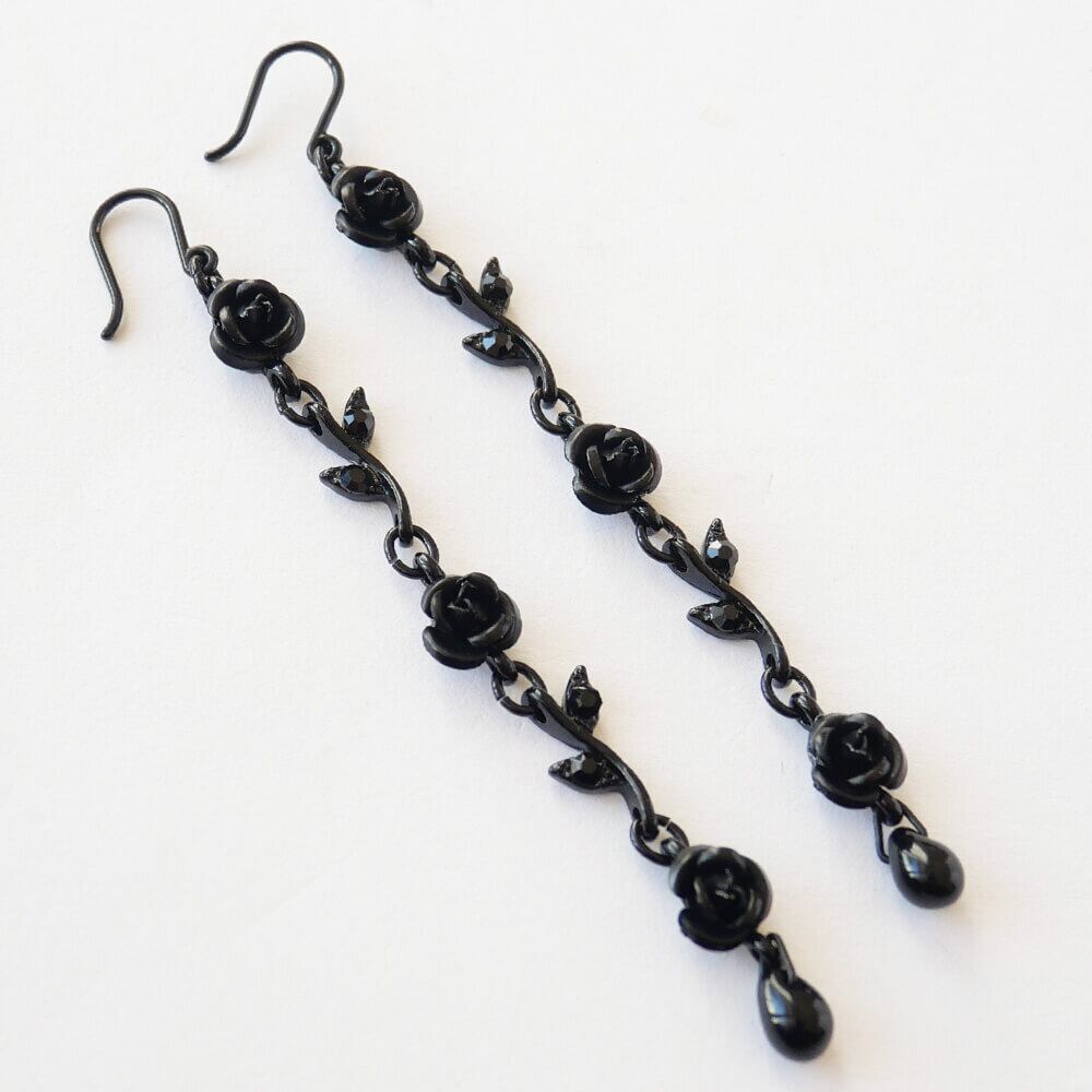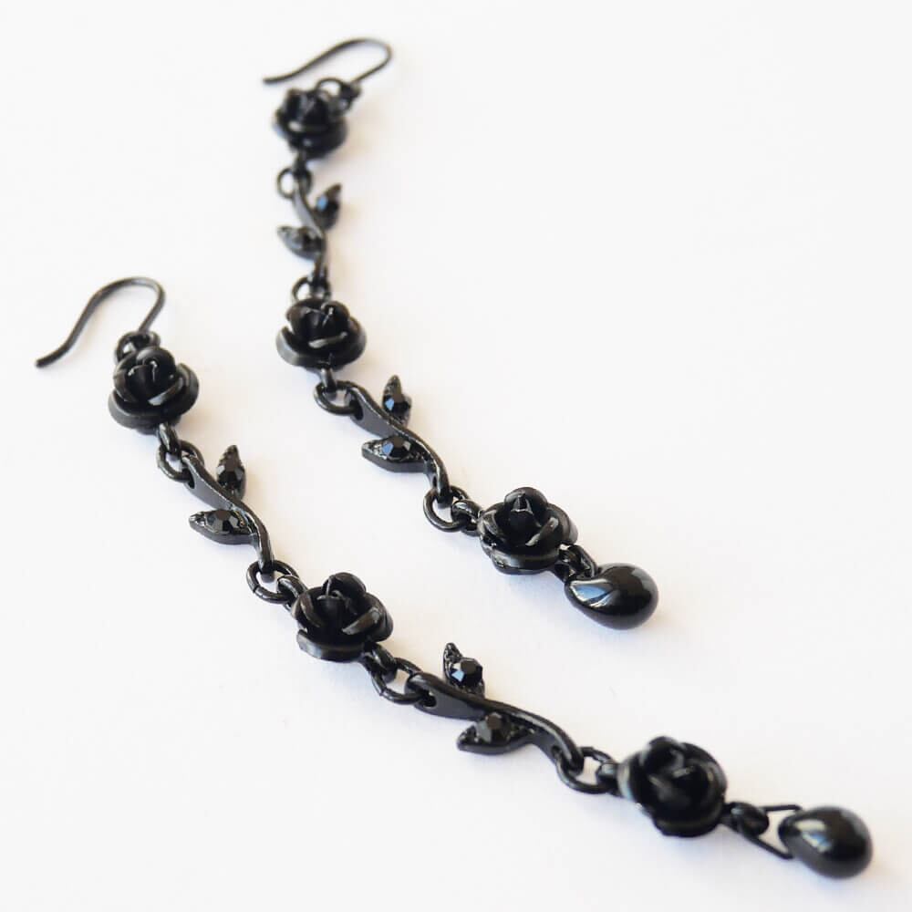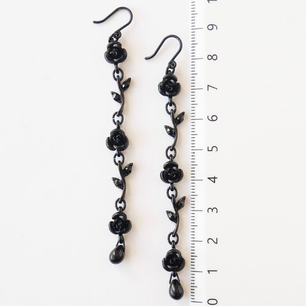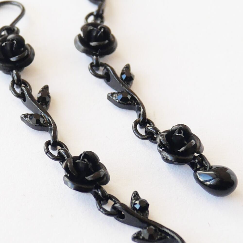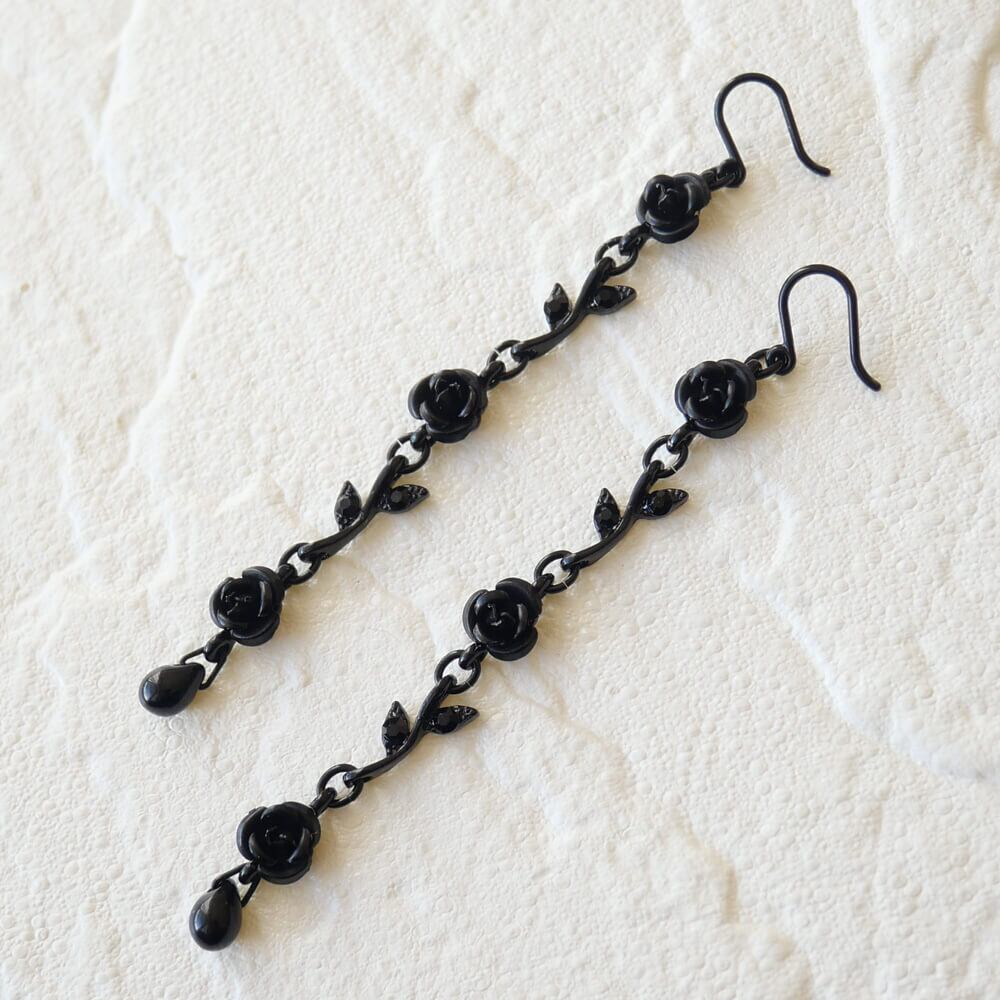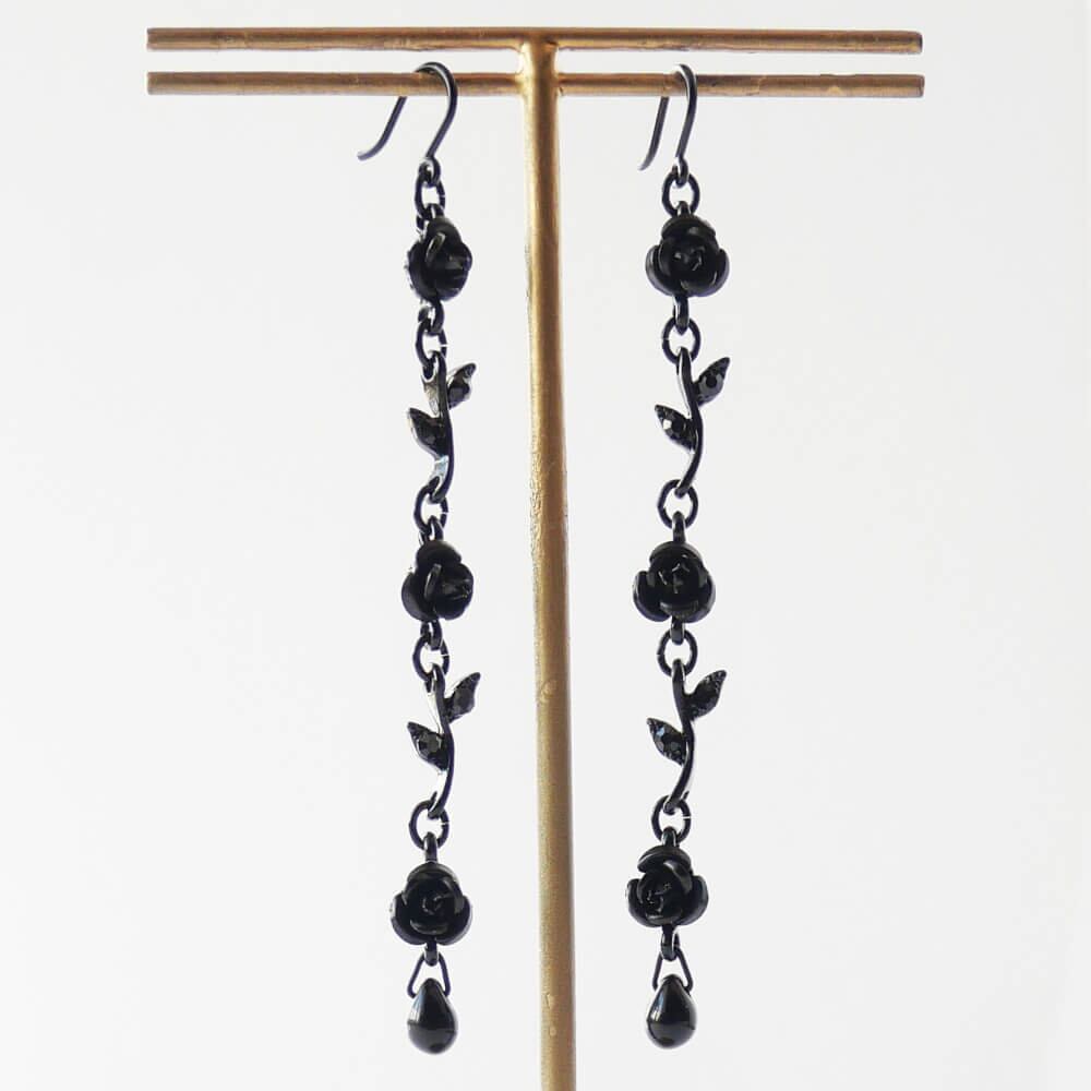 黒薔薇をイメージしたエレガントなデザインが特徴のロングピアス