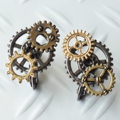 3種類の歯車パーツを使用したスチームパンク系イヤリング