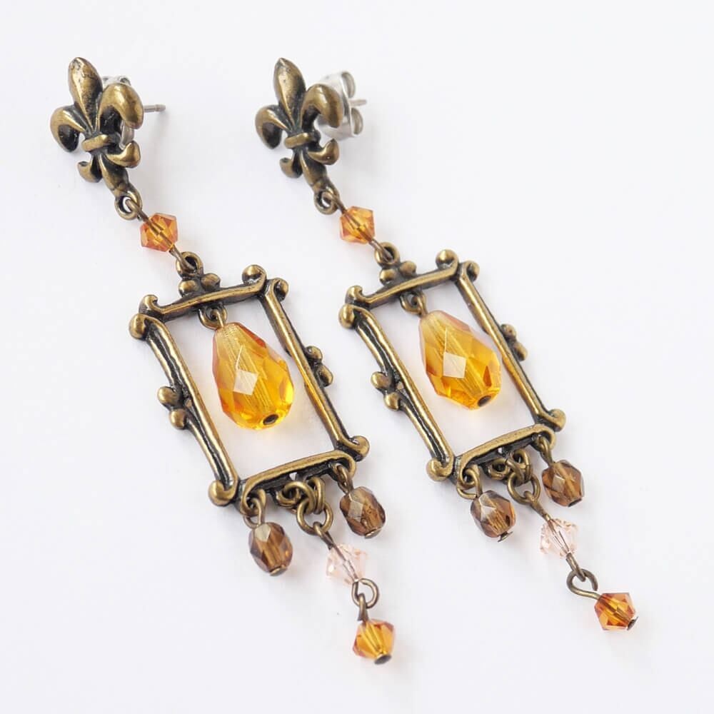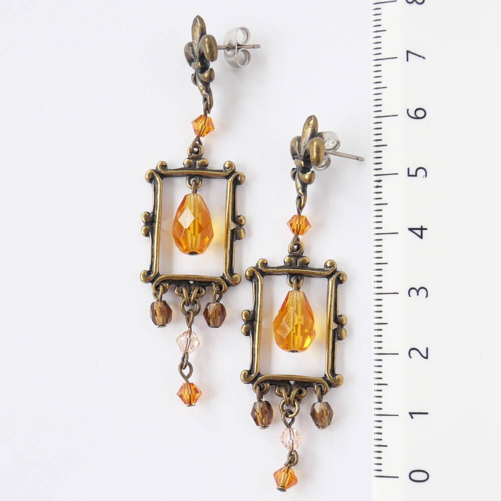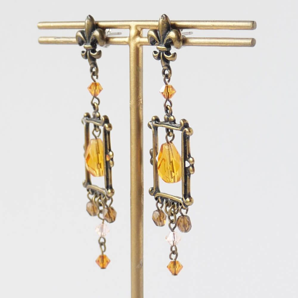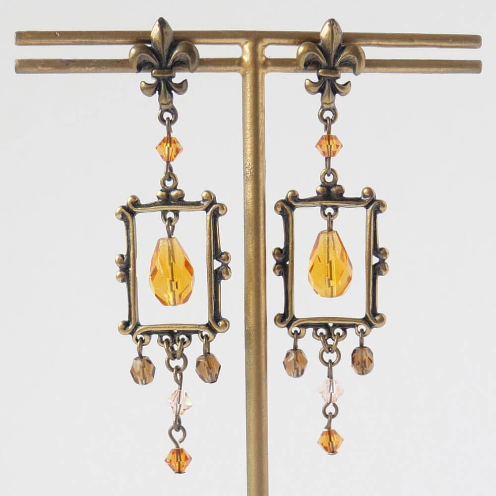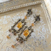 茶系、トパーズカラーのチェコビーズがフレームの中に