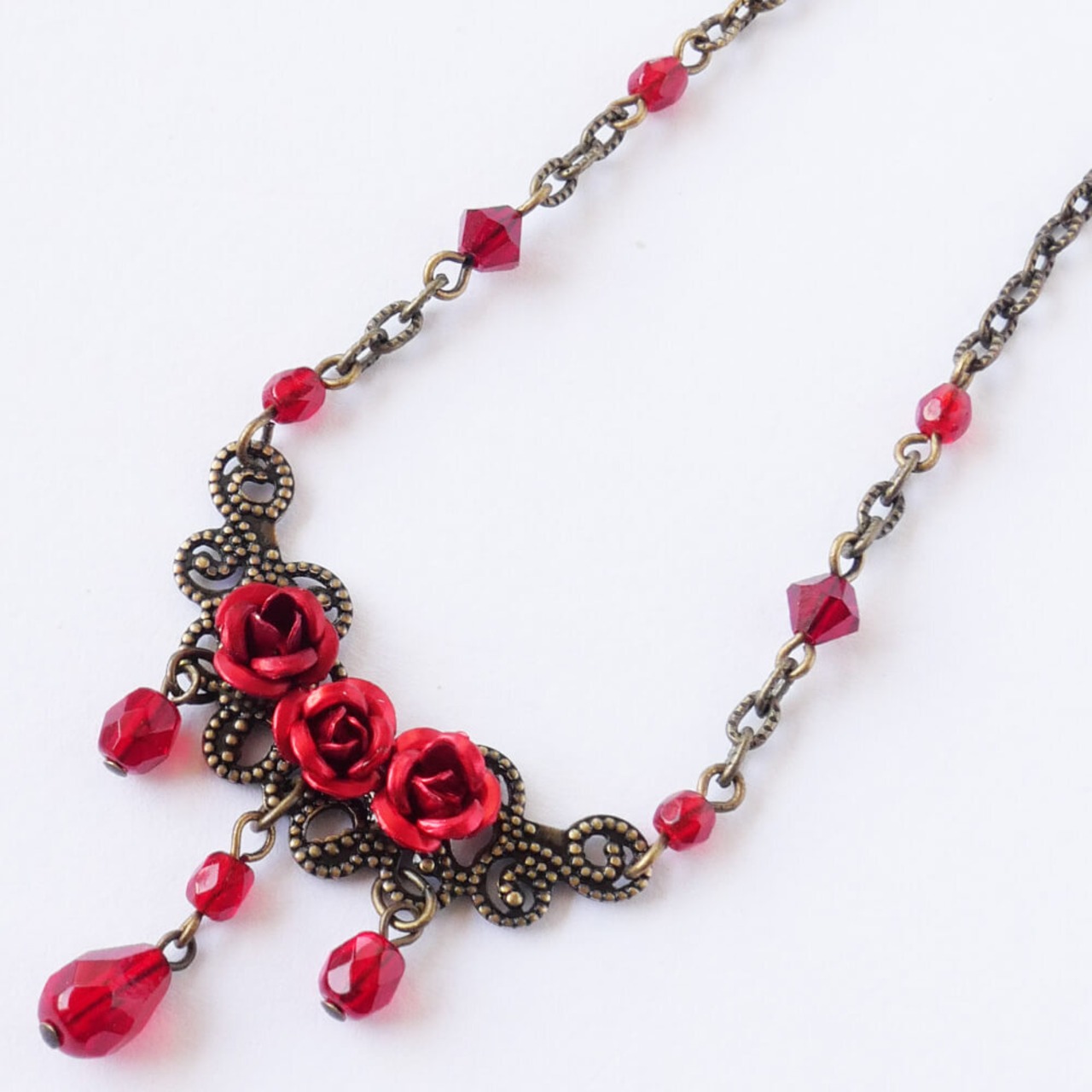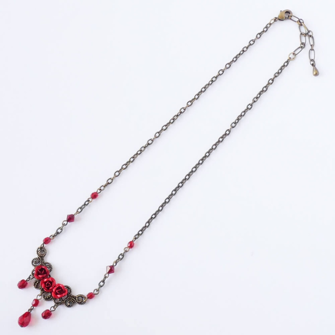 メタルチェーンの両サイドにも赤いチェコビーズ