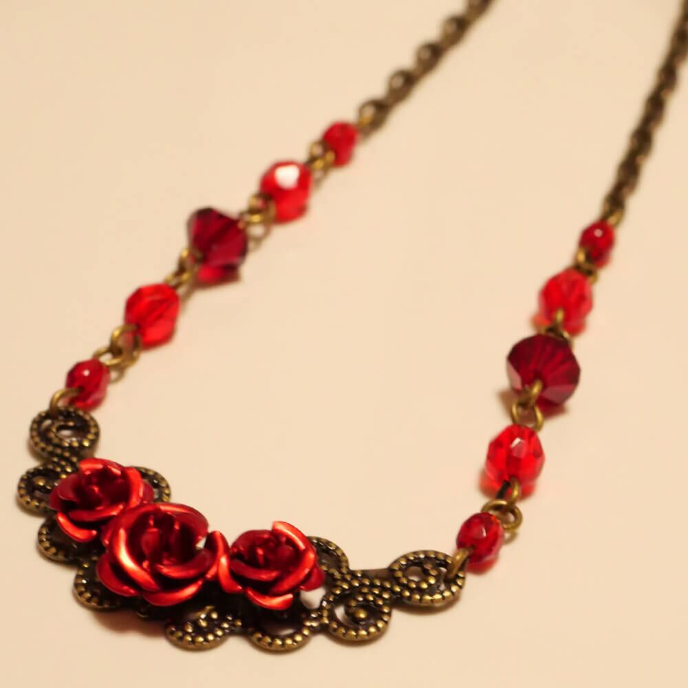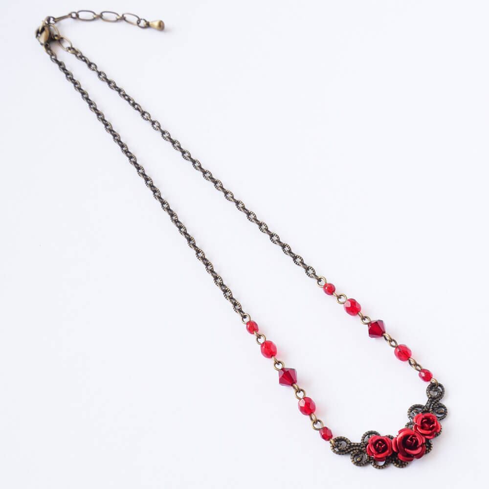 メタルチェーンの両サイドにも赤いチェコビーズ