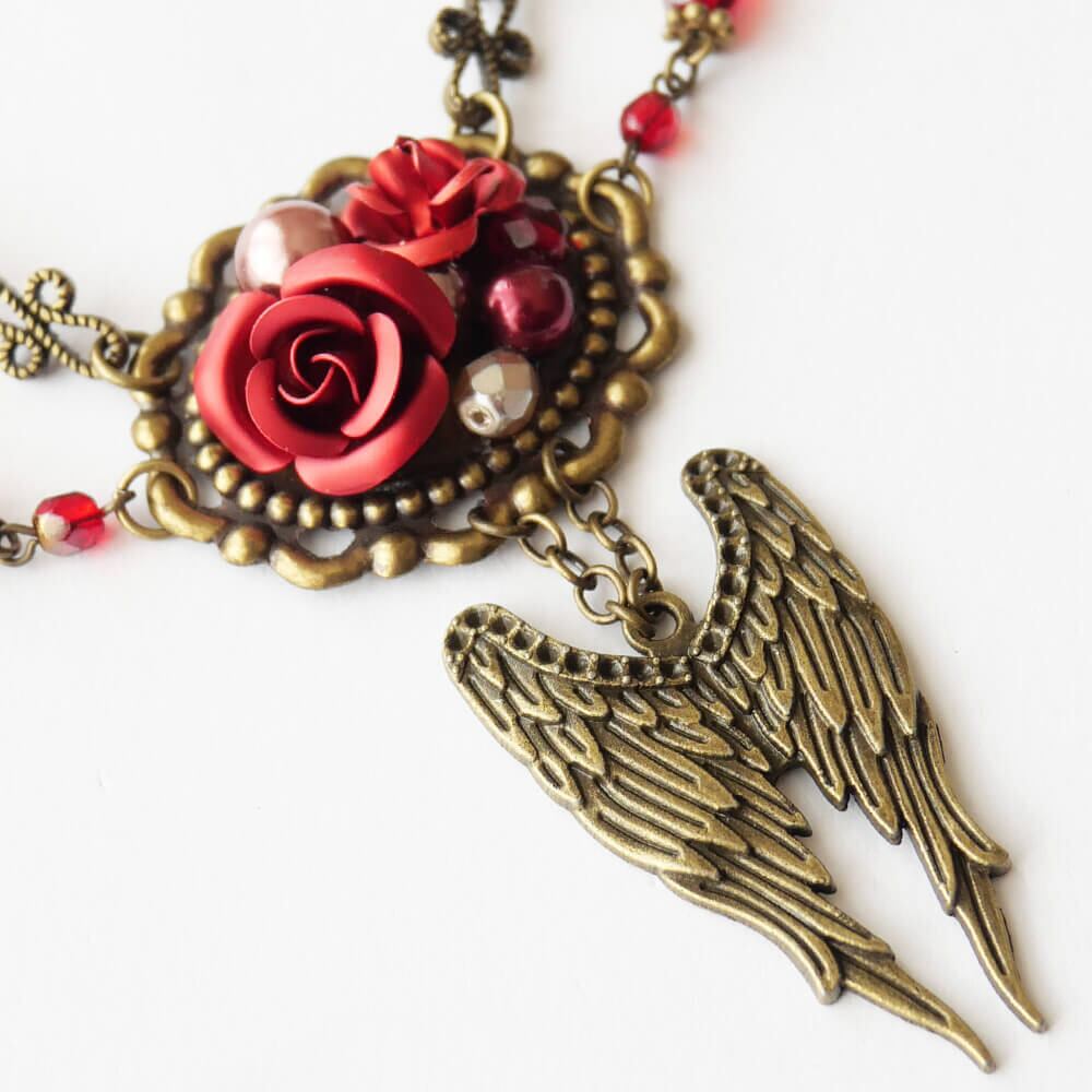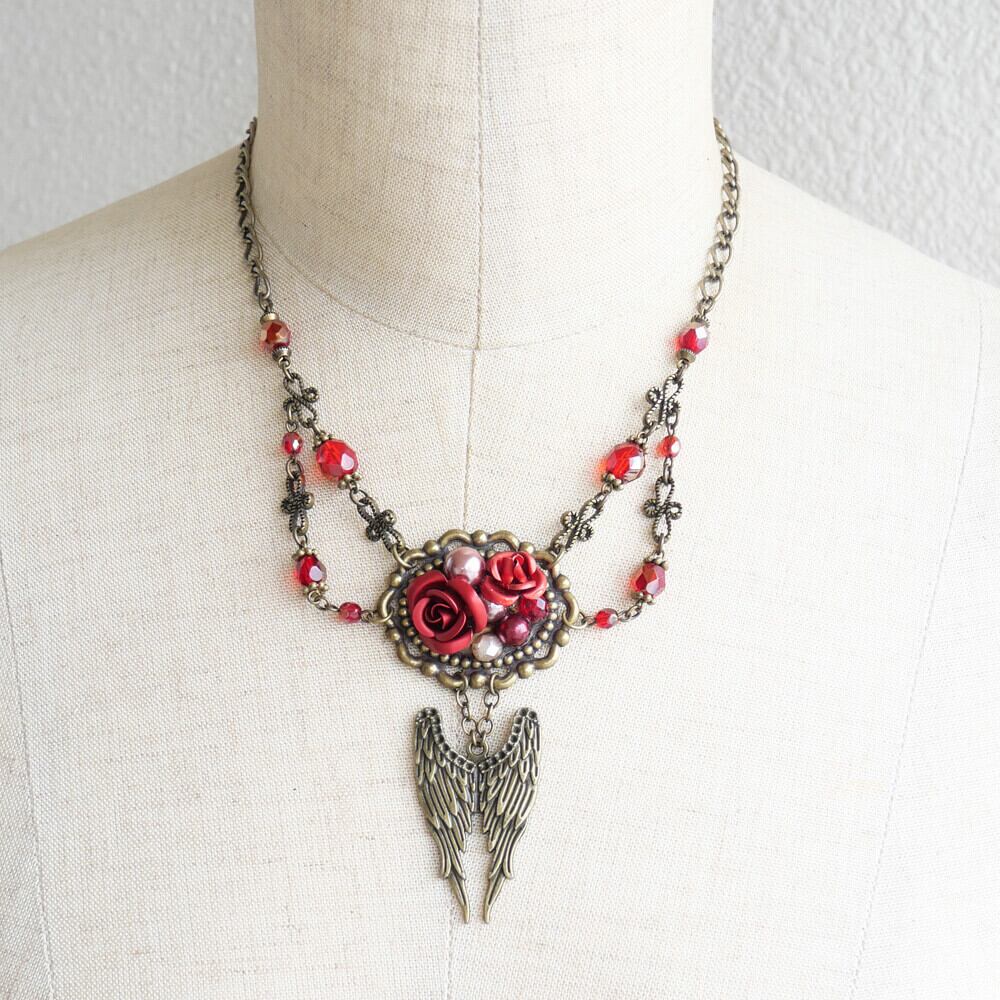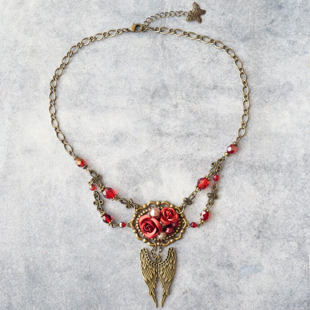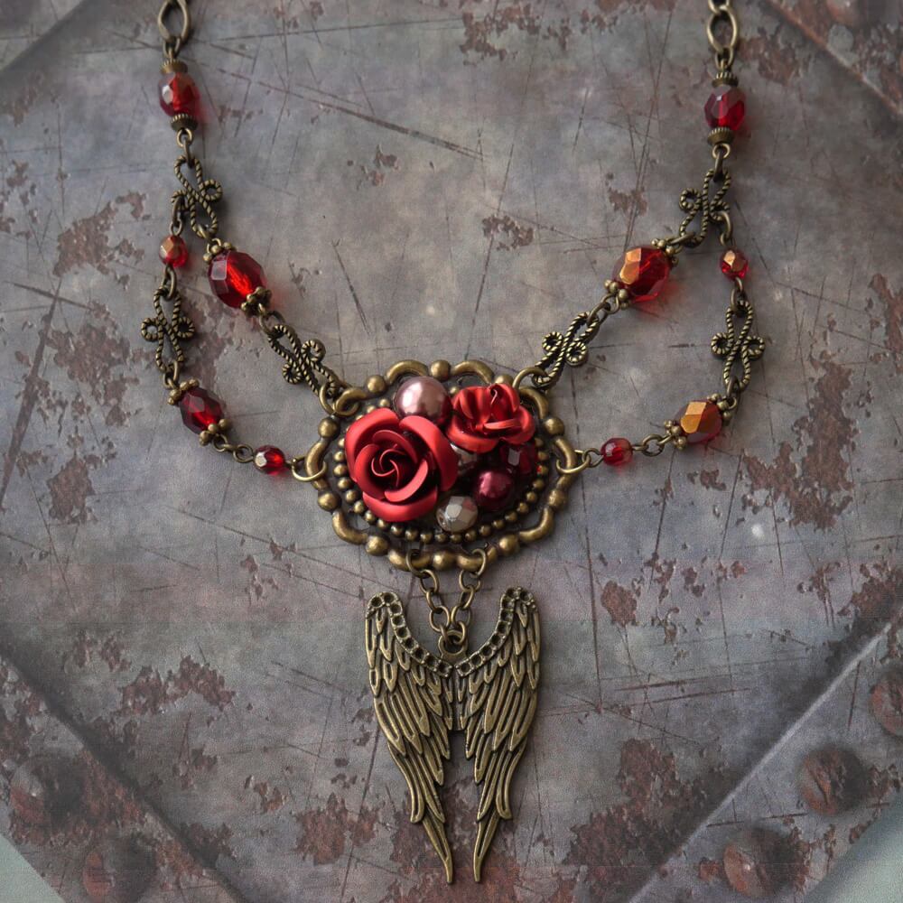 レッドローズとワイン系パール、ビーズのデコラヘッド