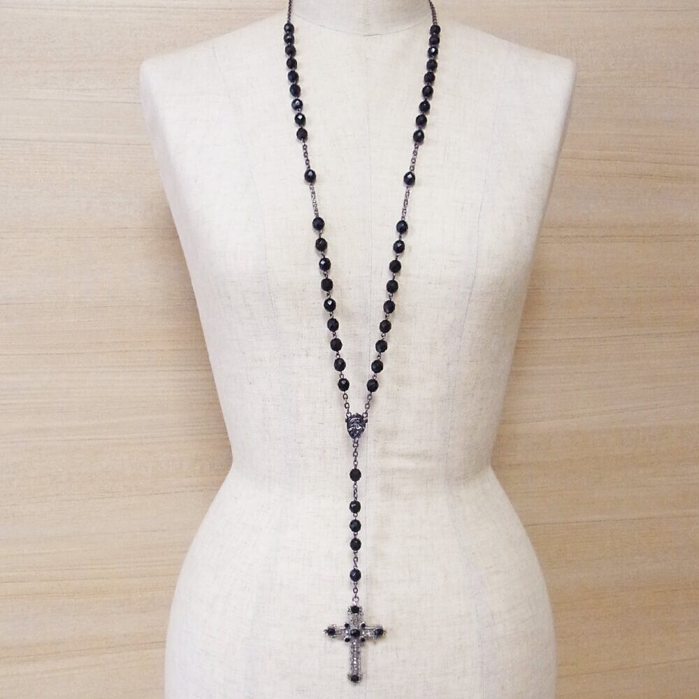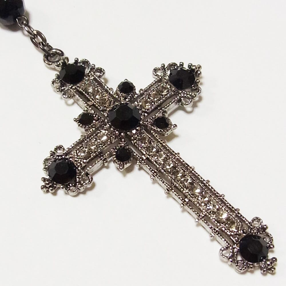 ブラック、ブラックダイヤカラーのストーンを使った大きな十字架