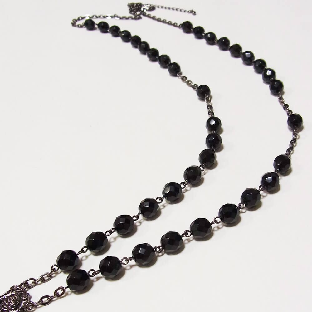 オーロラ加工のブラック系チェコビーズを贅沢に使用