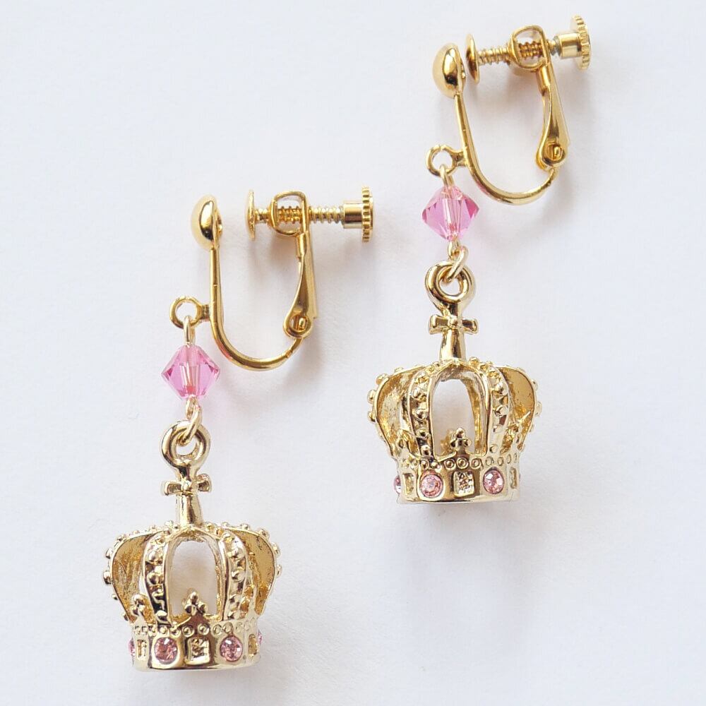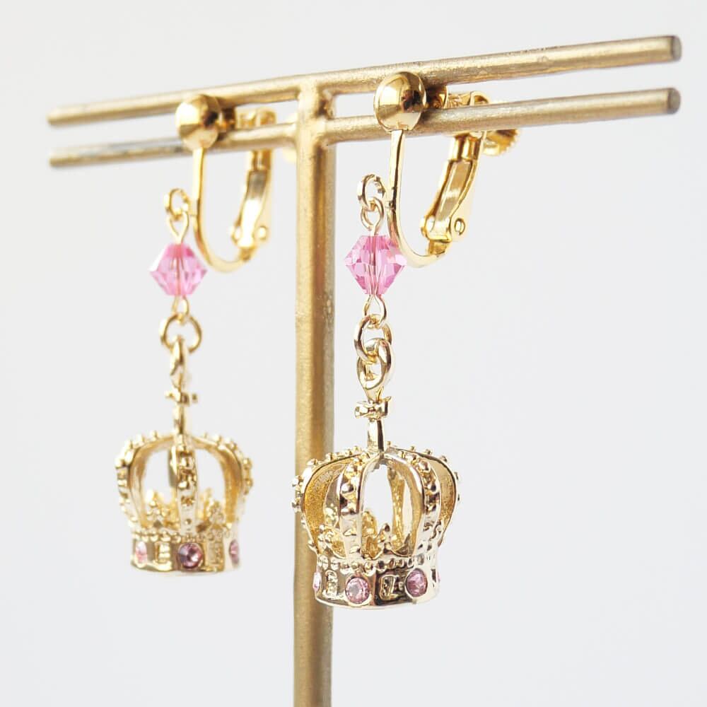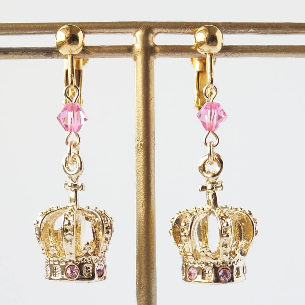 ピンクのストーンを散りばめたクラウンイヤリング