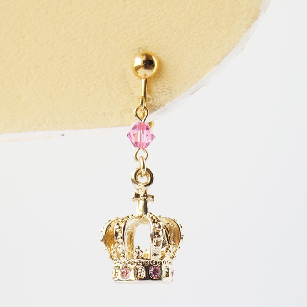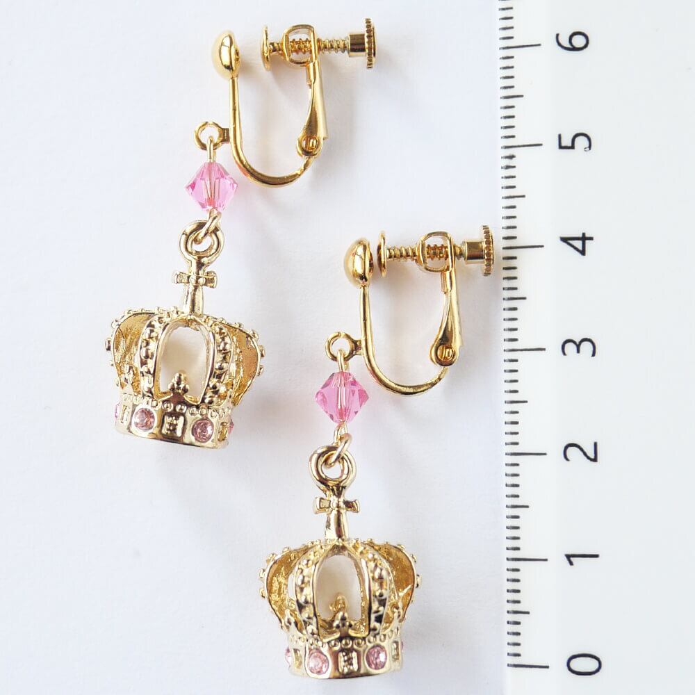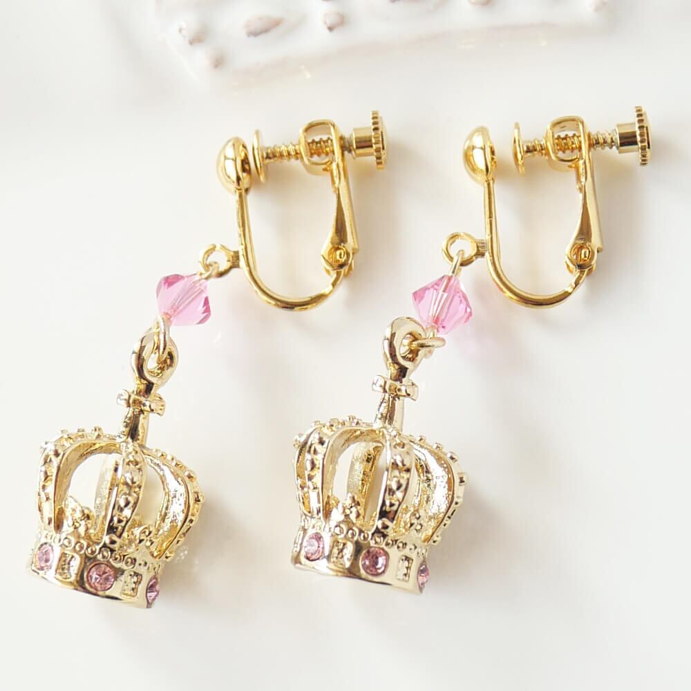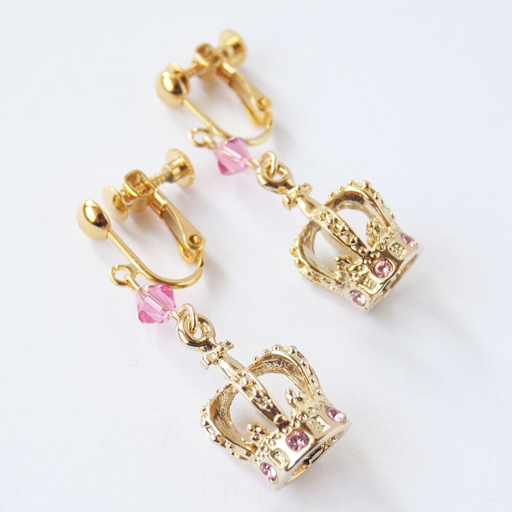 ピンクのストーンを散りばめたクラウンイヤリング