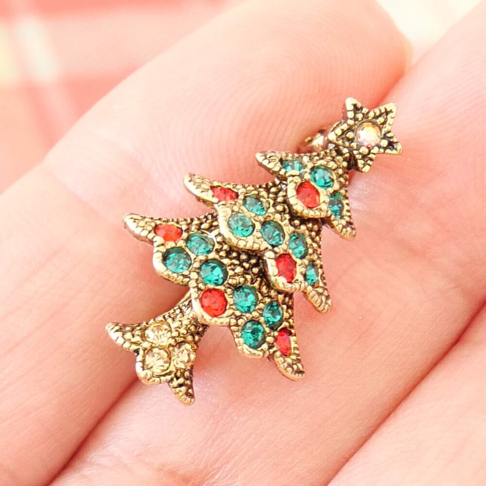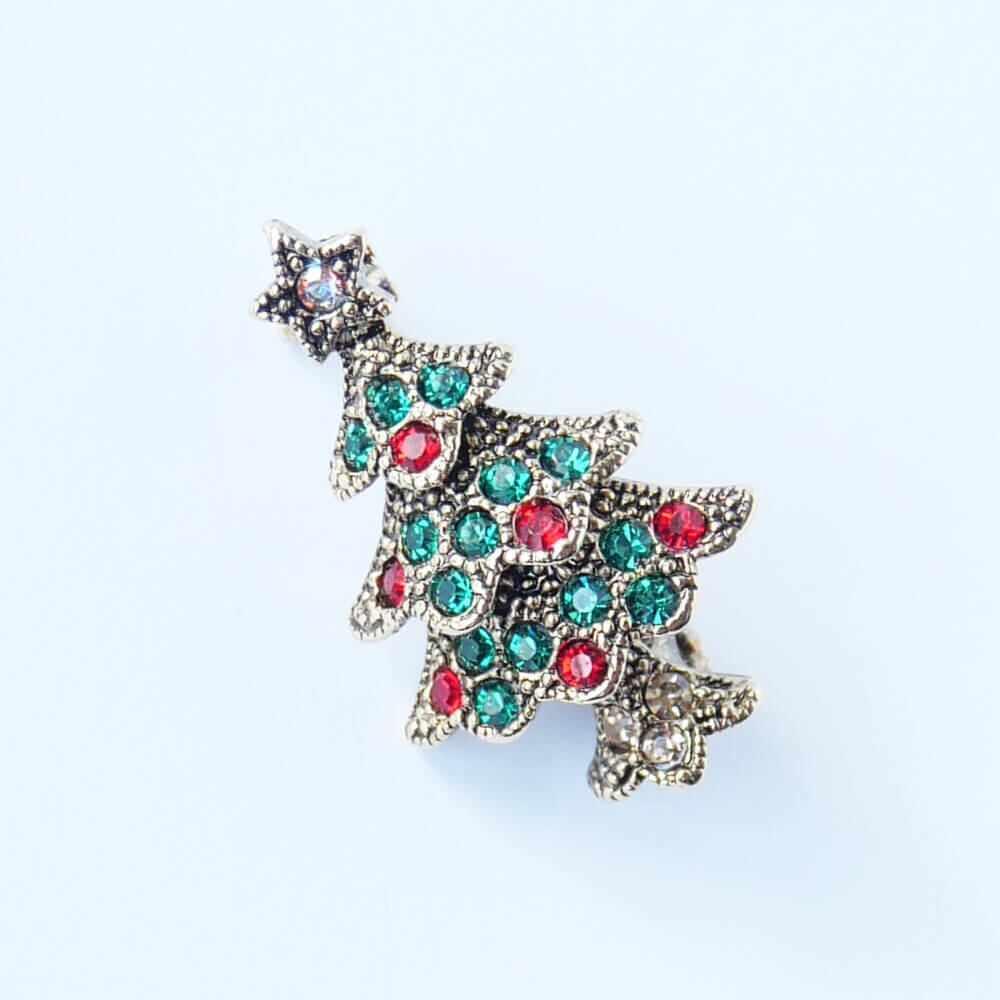 赤、緑、白ストーンを散りばめたクリスマスツリー