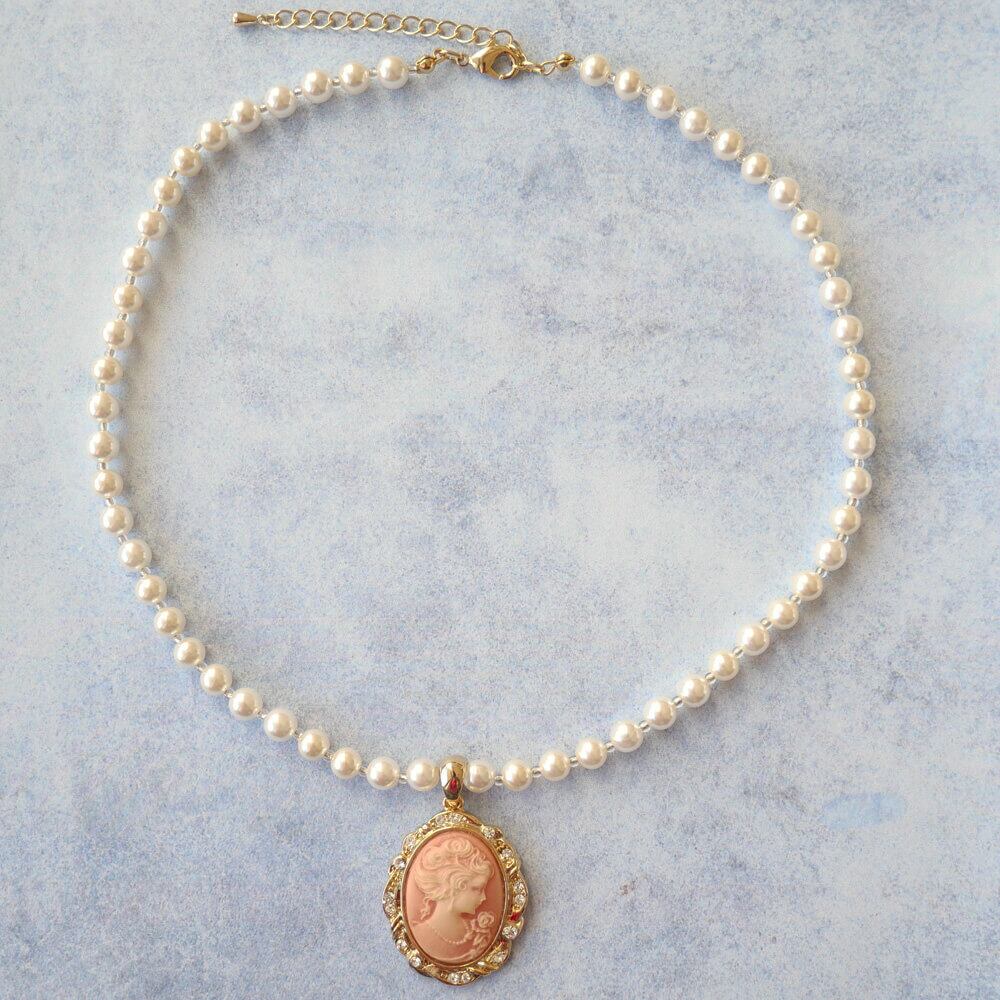 ホワイトパールとクリアビーズを通したハンドメイドのネックレス