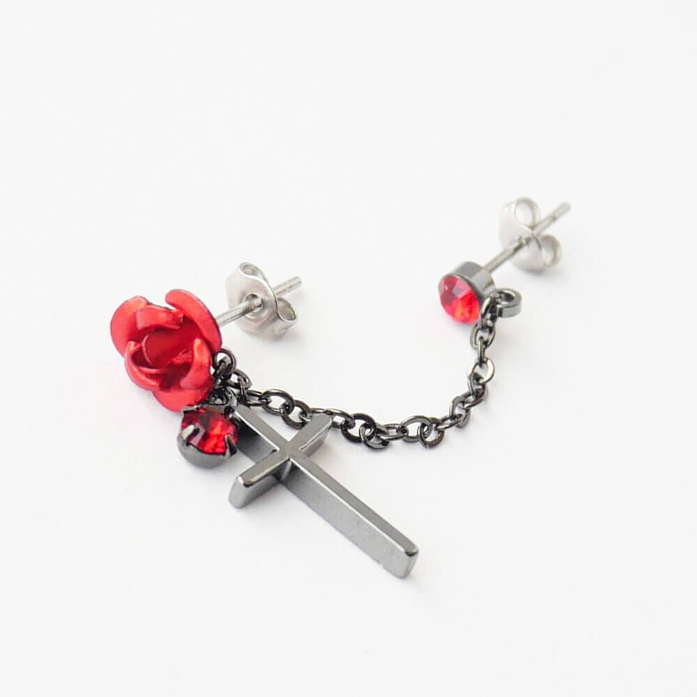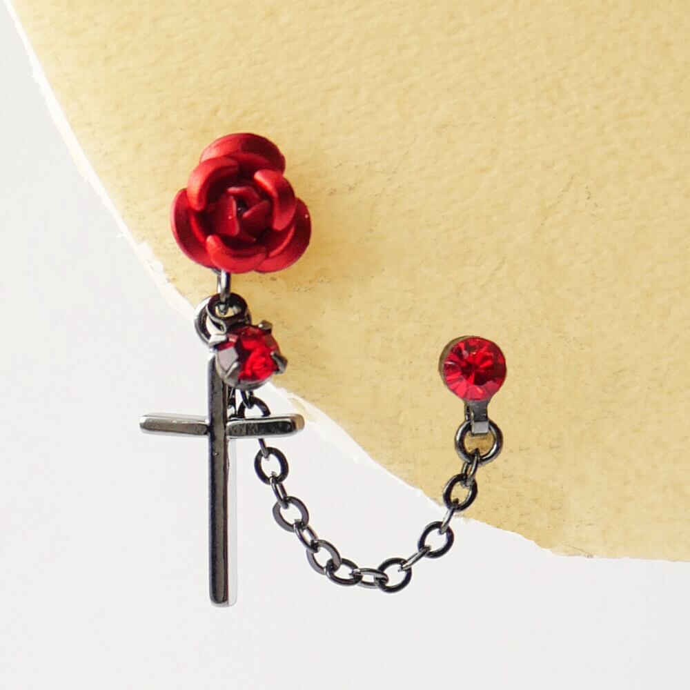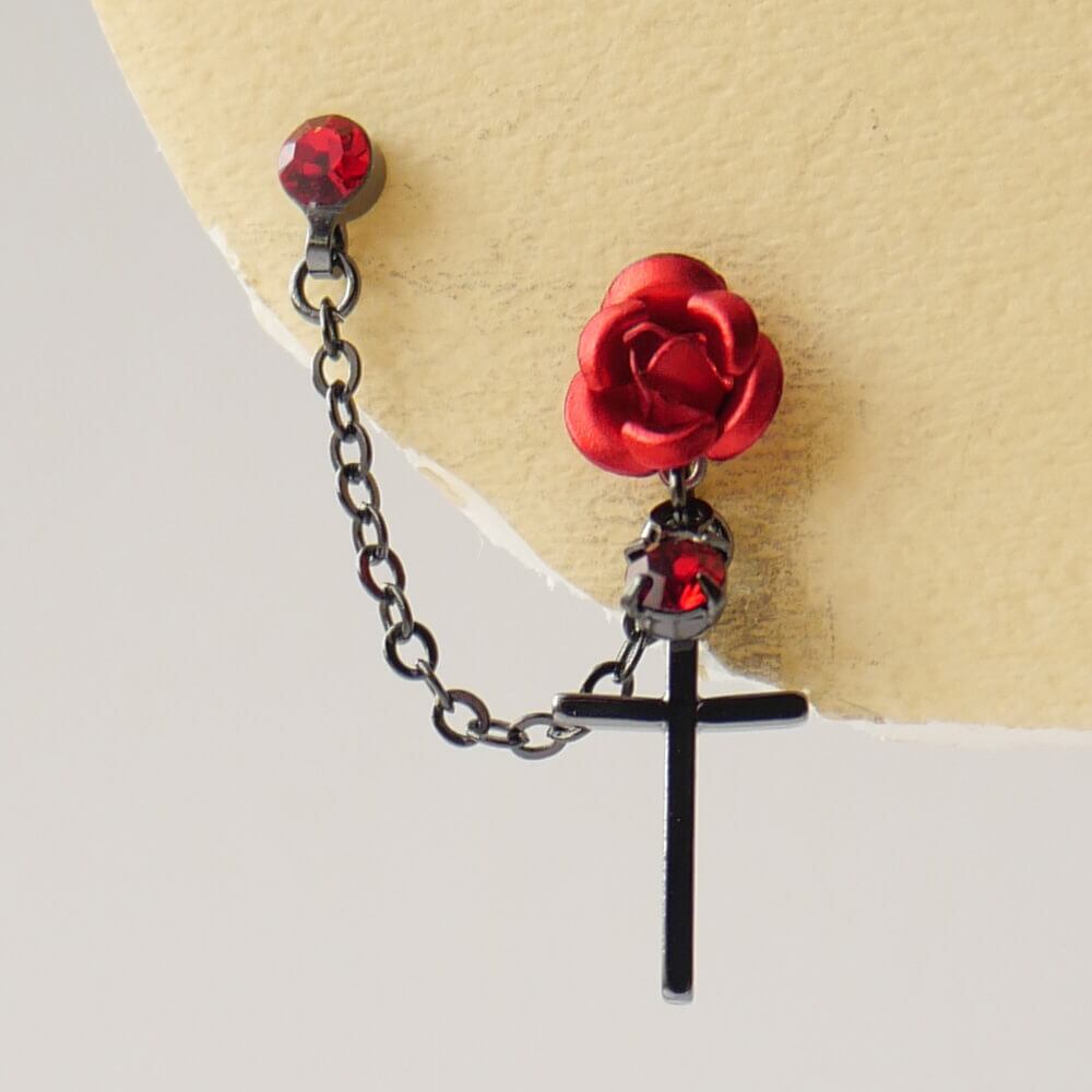 薔薇&十字架 ダブル ピアス(片耳タイプ)赤 紫 黒 青