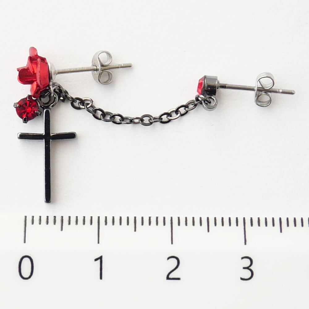薔薇&十字架とチェーンで繋がるミニストーンピアス