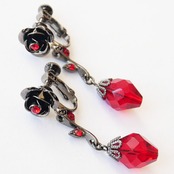 レッドストーンが美しく輝く薔薇のモチーフが、リーフパーツの下で揺れる大粒のレッドクリスタルと共に、華やかさを演出。