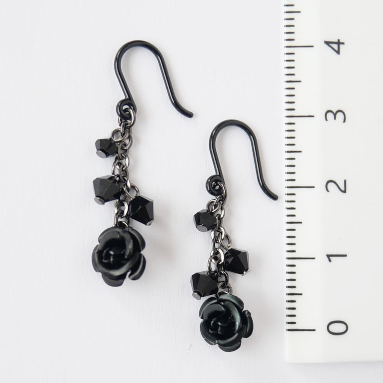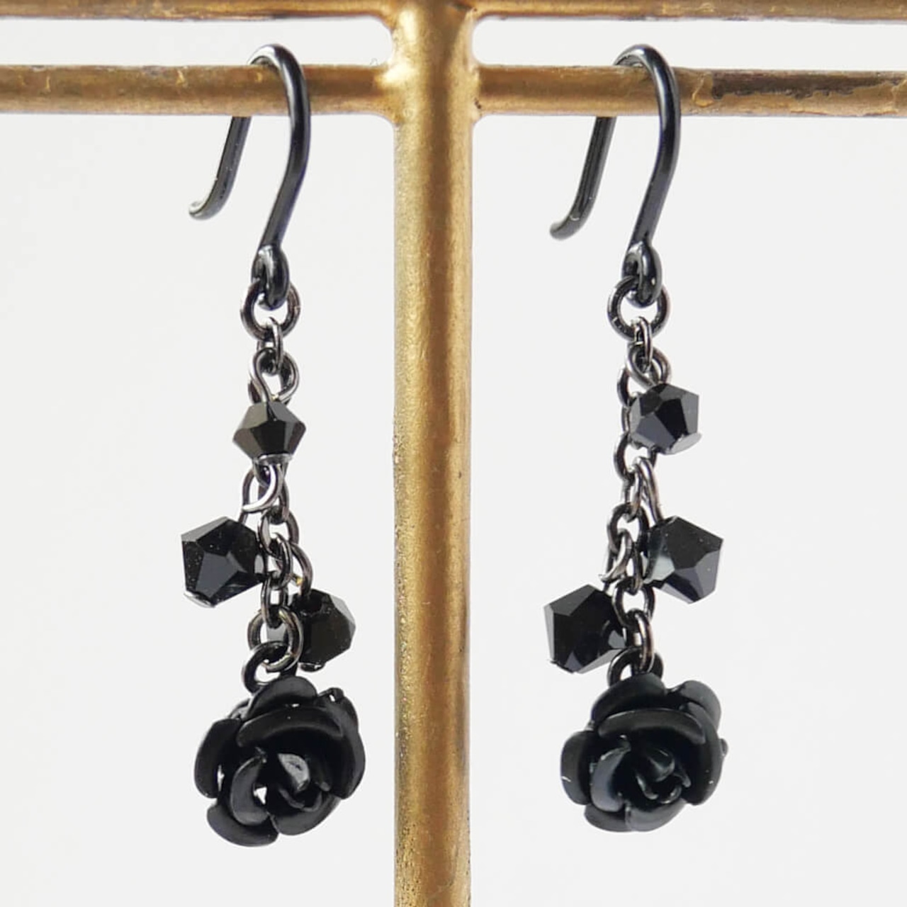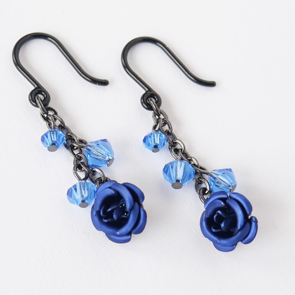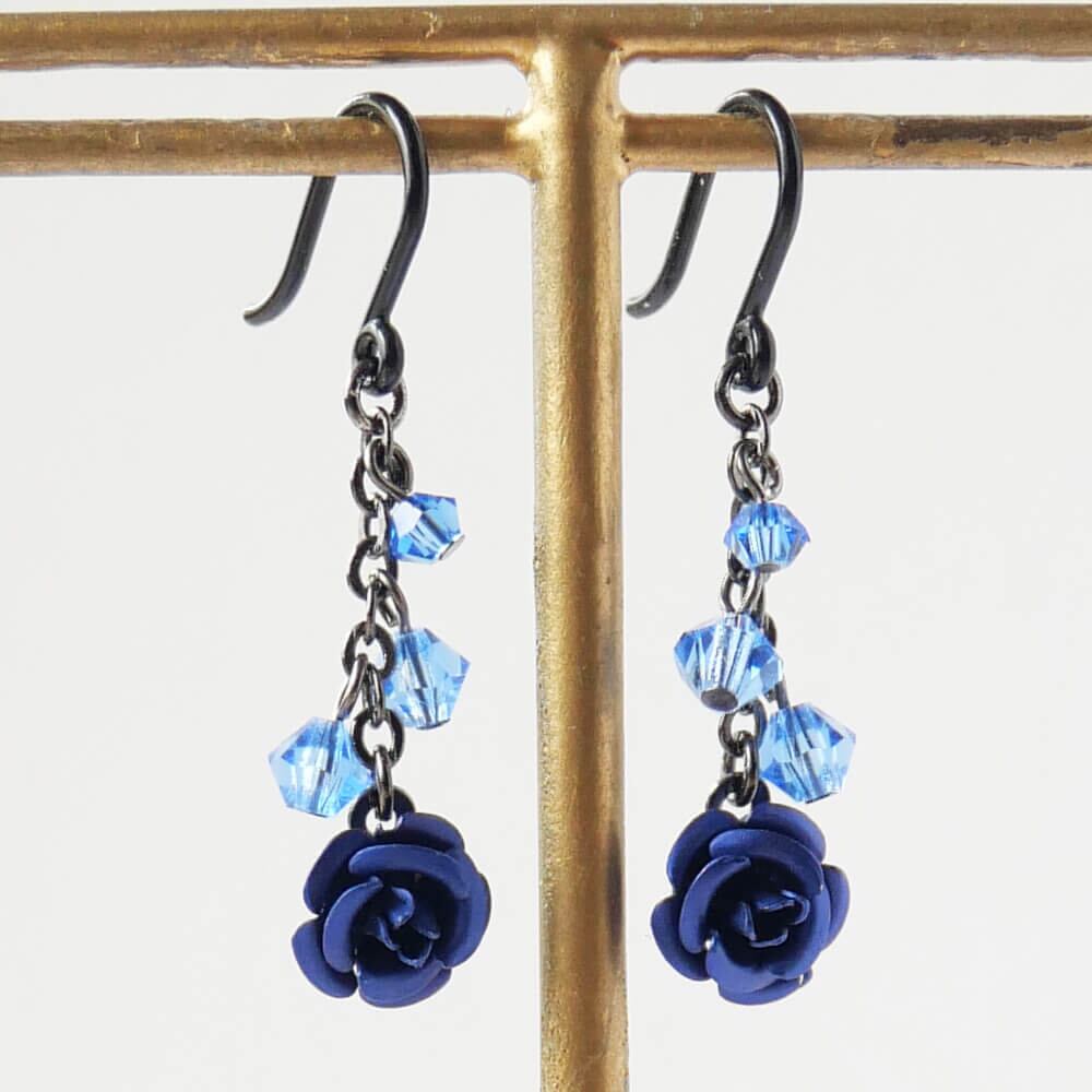 繊細なハンドメイドでカットクリスタルと同色の薔薇がさり気なく耳元を飾ります。