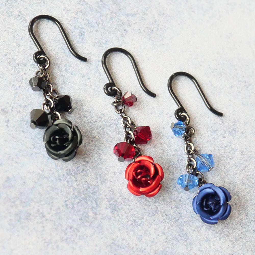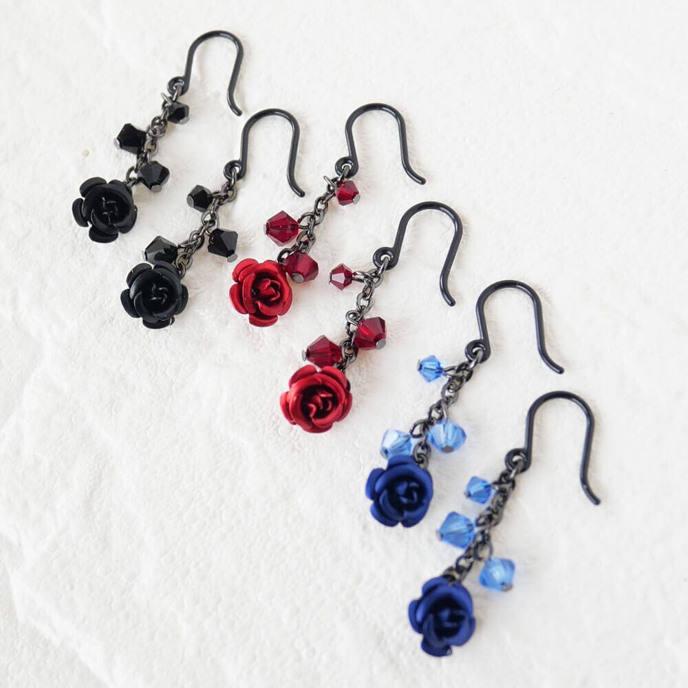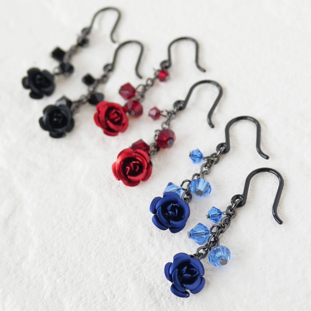 青バラは神秘的なイメージを演出し、赤バラはゴシックなテイストを引き立てます。さらに、黒バラはブラックスタイルにお薦め