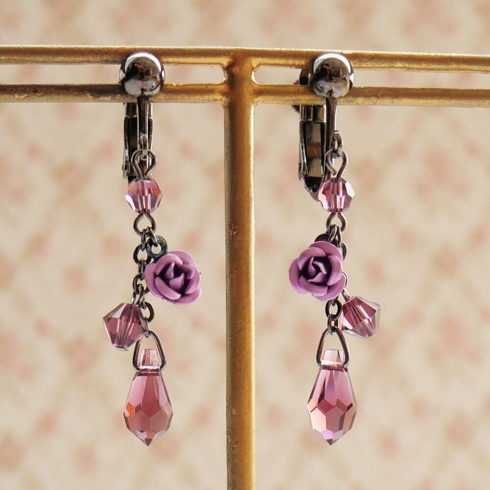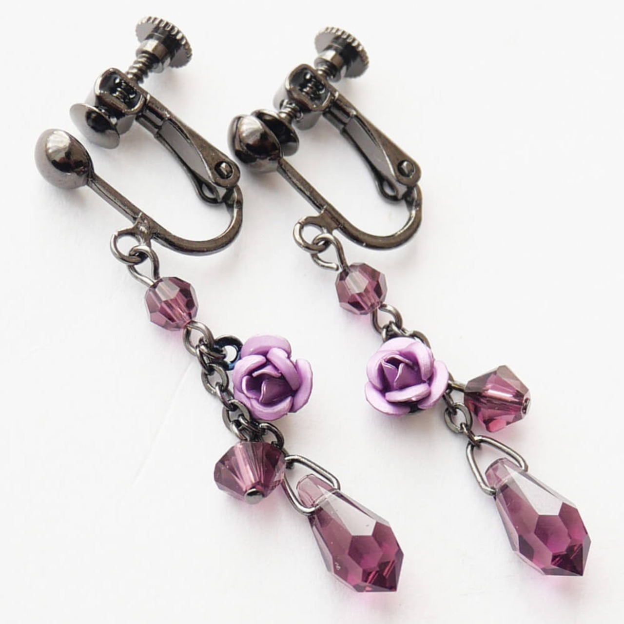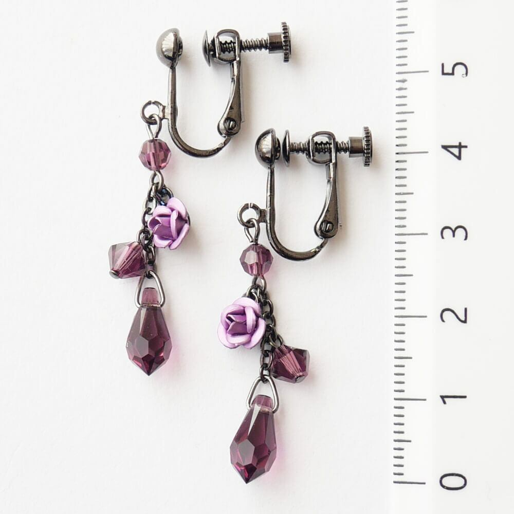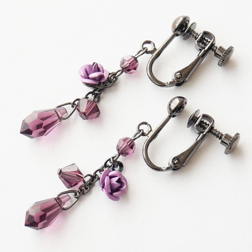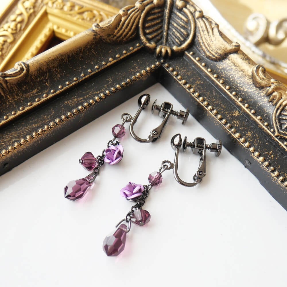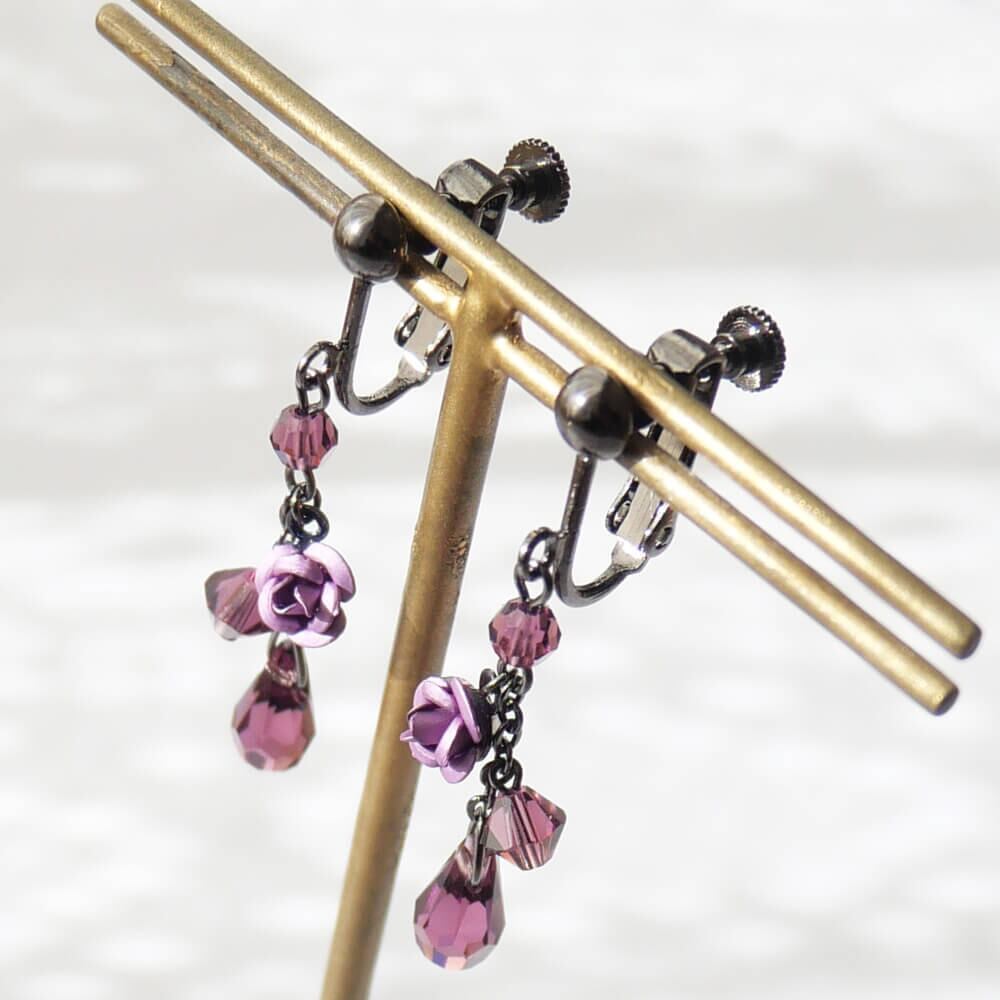 紫薔薇 パープルクリスタル ローズ イヤリングは、エレガントなデザインが特徴のアクセサリーです。