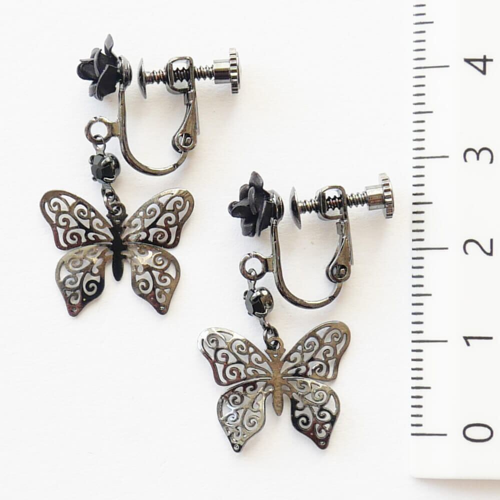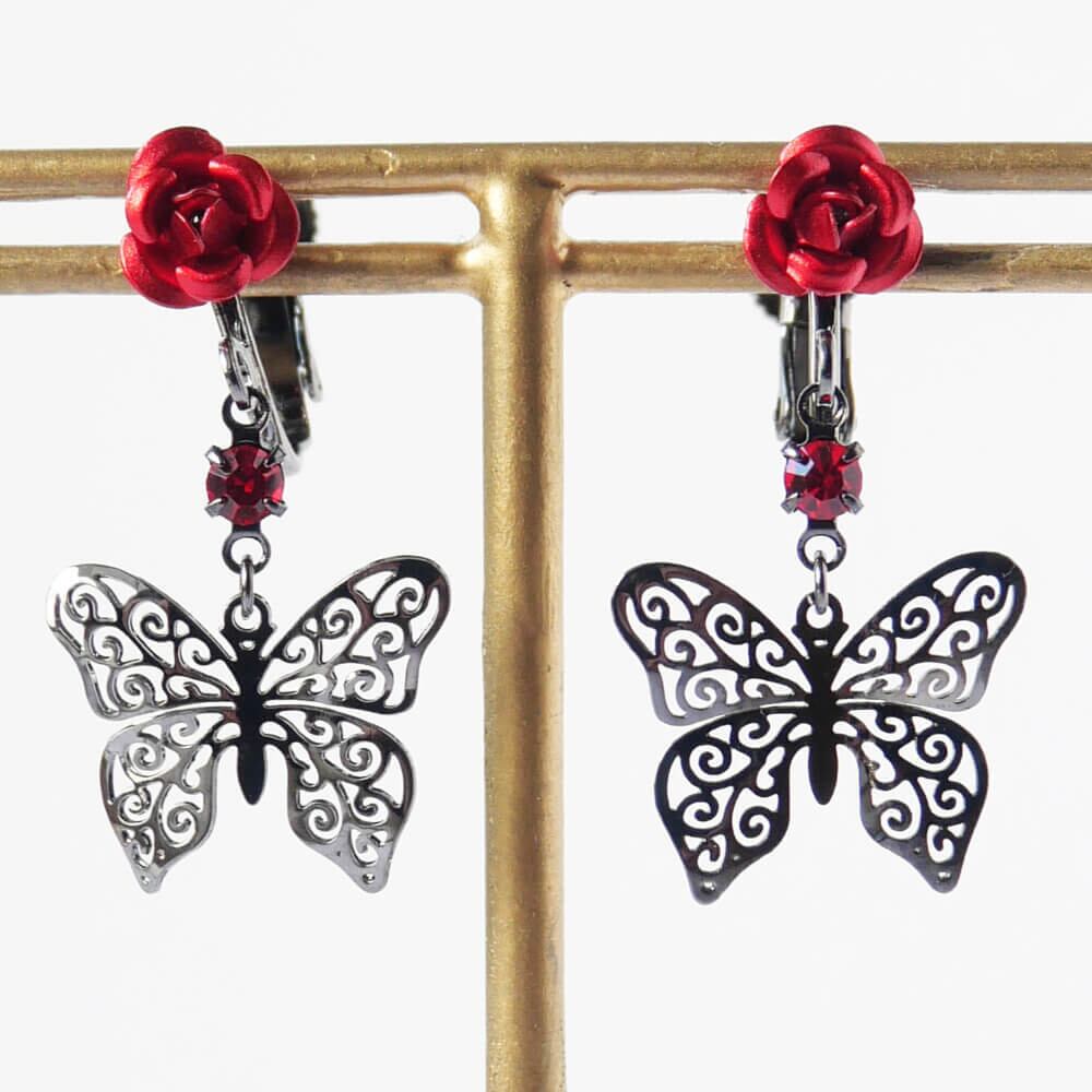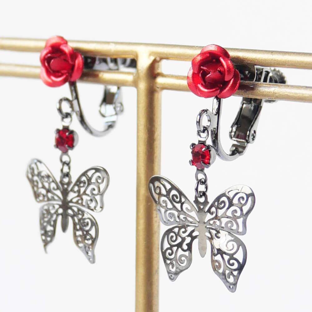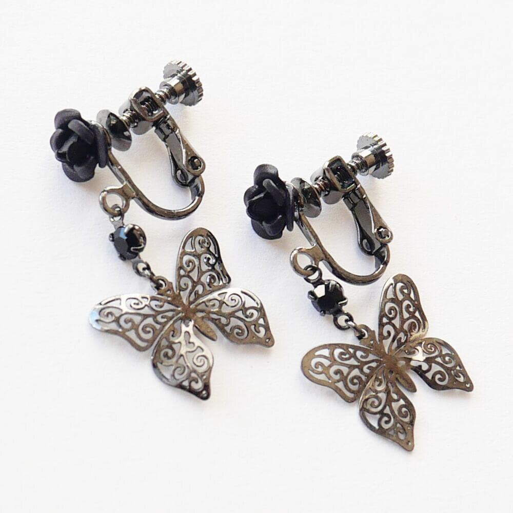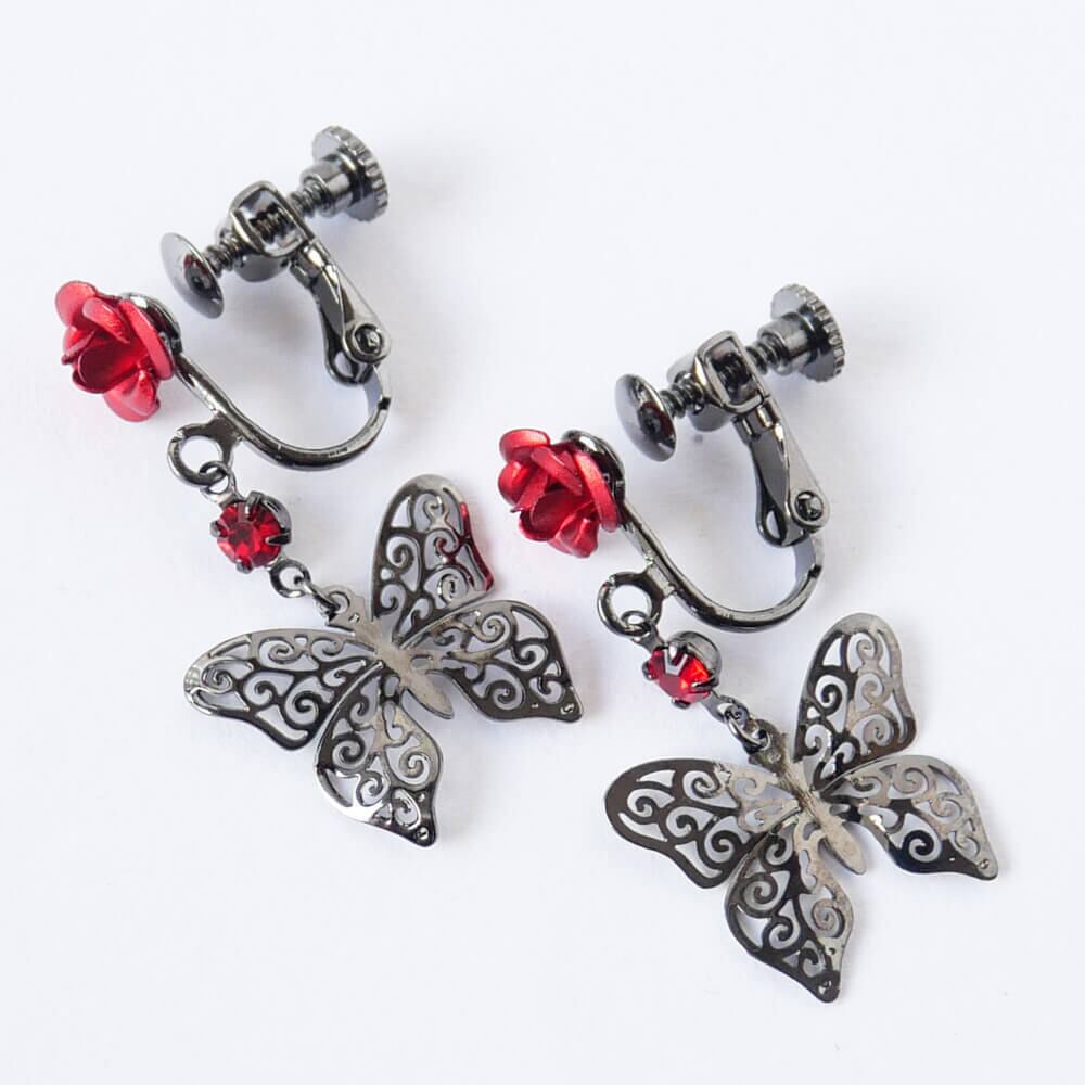 控えめゴスロリ イヤリング 薔薇 蝶 小さめ