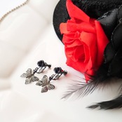繊細なステンド蝶のミニパーツが美しく、控えめなゴスロリテイストを楽しむことができるイヤリングです。