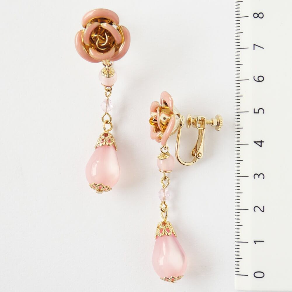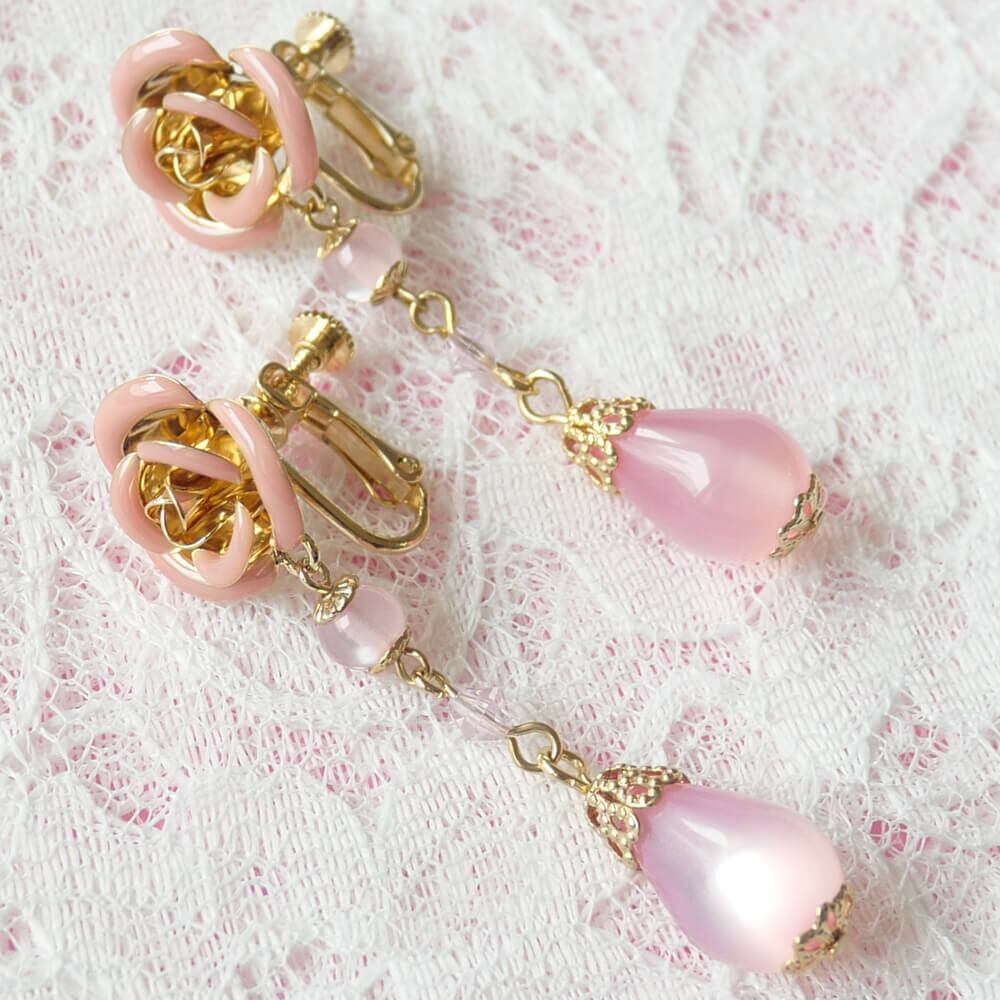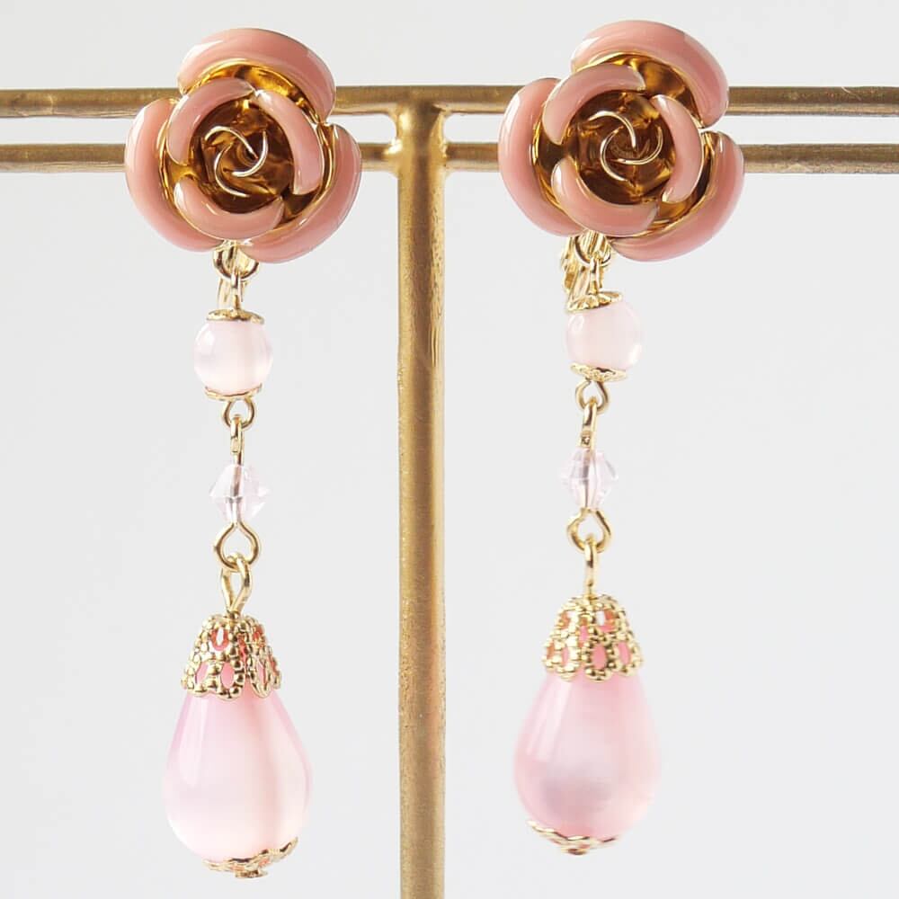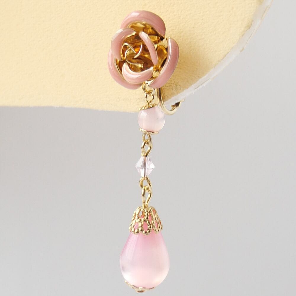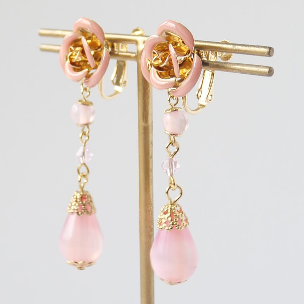 ピンク ローズ ドロップ イヤリング 薔薇