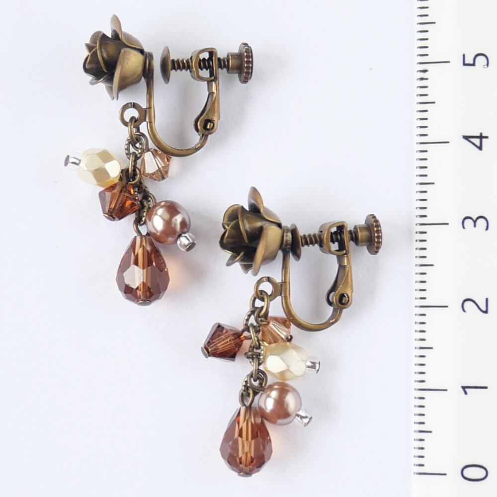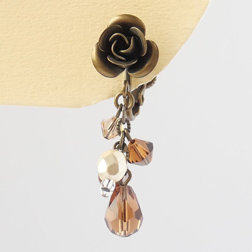 【ローズガーデン】アンティークゴールド ブラウン パール イヤリング 秋