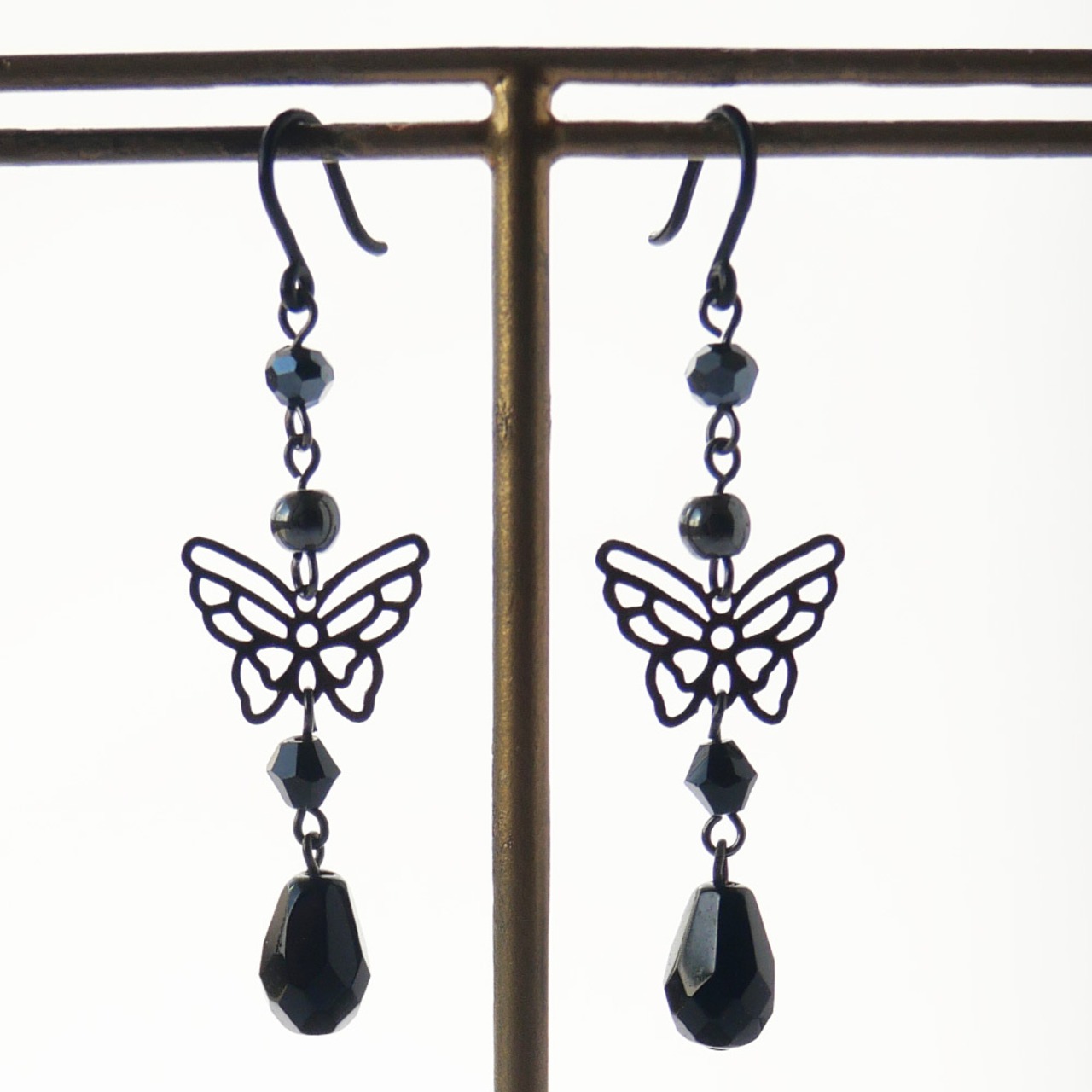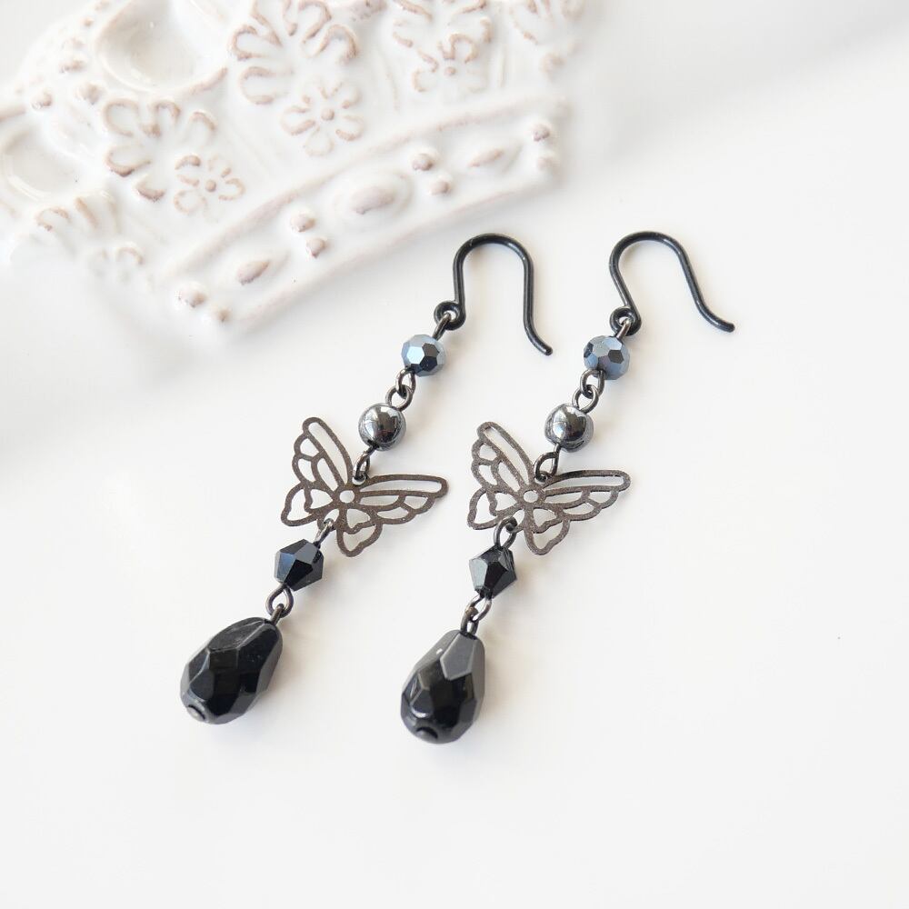 繊細なガンメタルカラーの蝶パーツは数ある蝶の中の1番人気でティアーズヘブンお薦めのアクセサリーです。