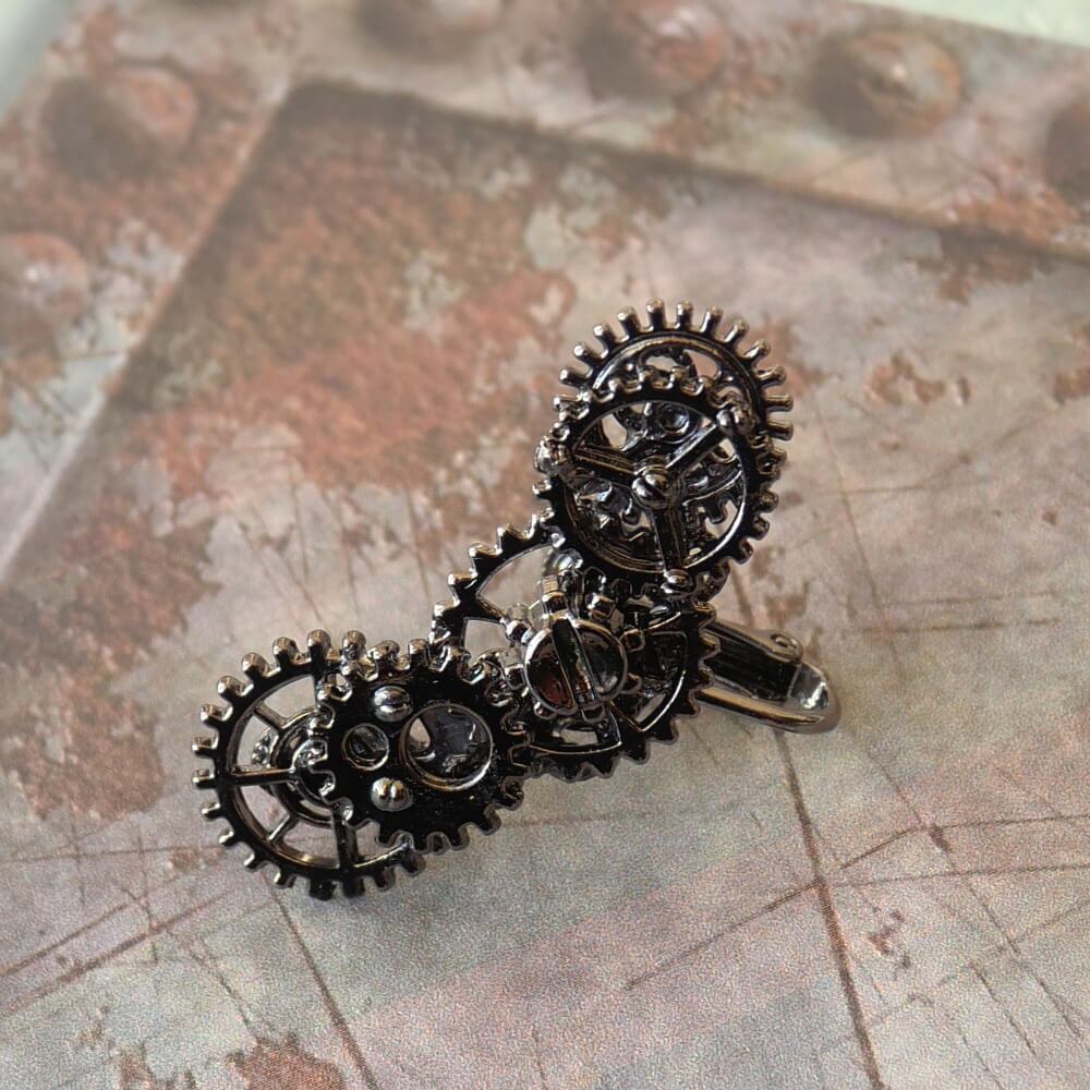【steampunk】歯車 ギア スチームパンク イヤリング ガンメタ (片耳タイプ)