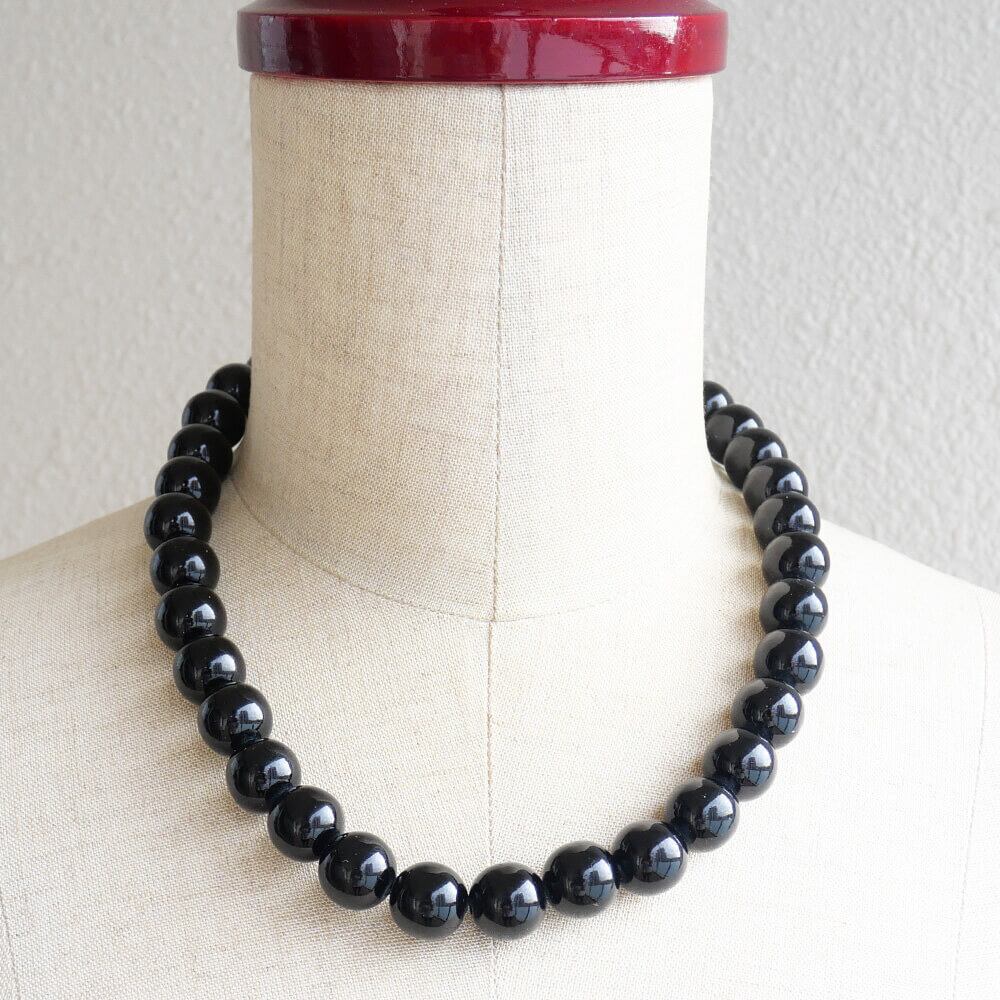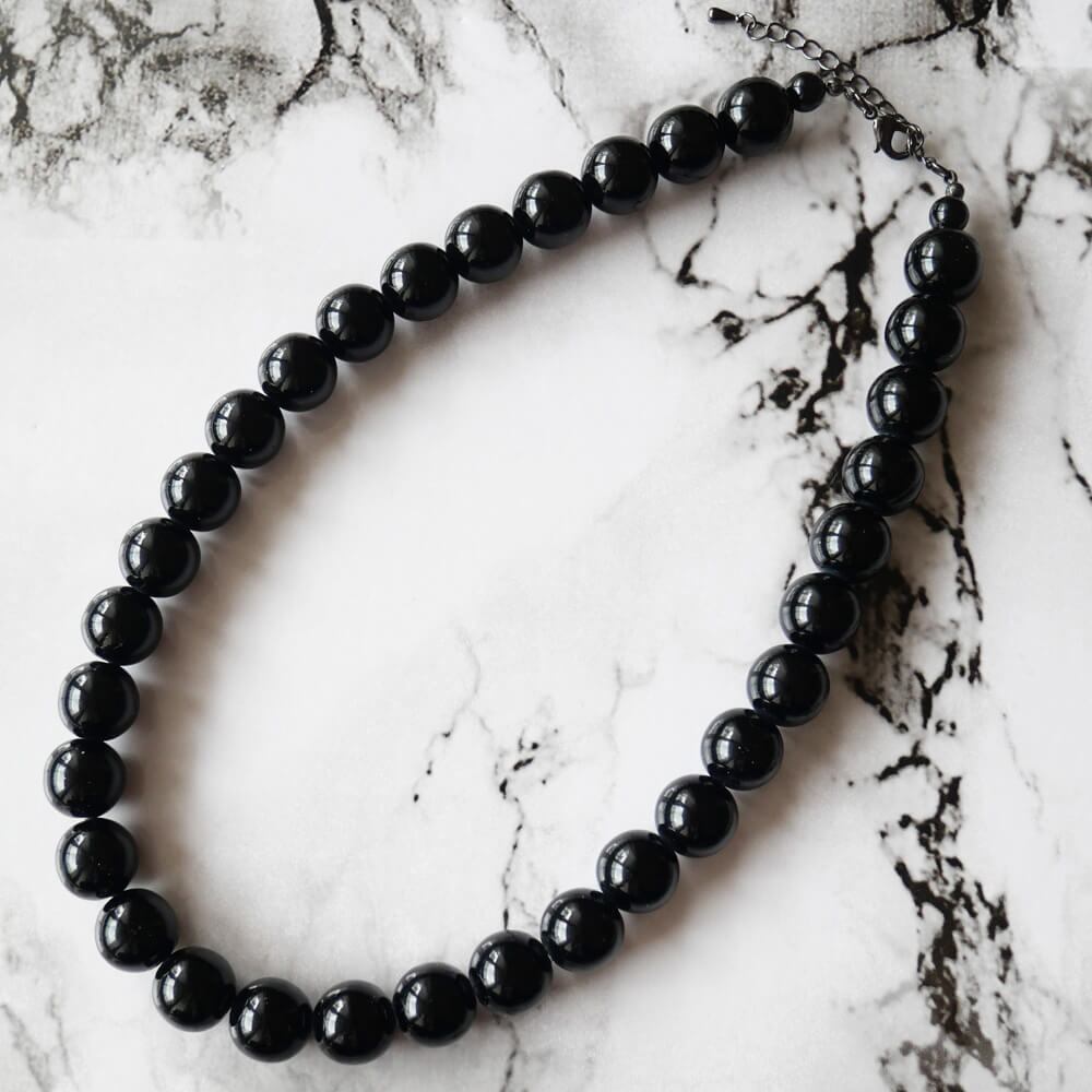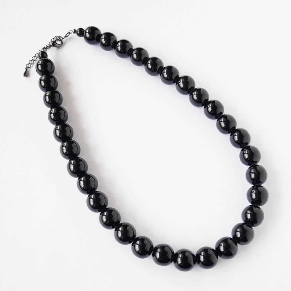 ブラック ボール 黒 玉 ネックレス ストレート14ミリ