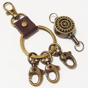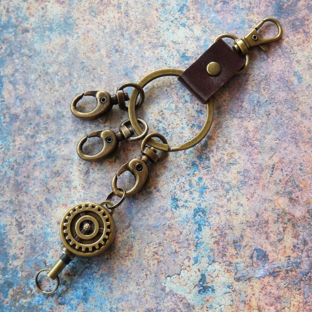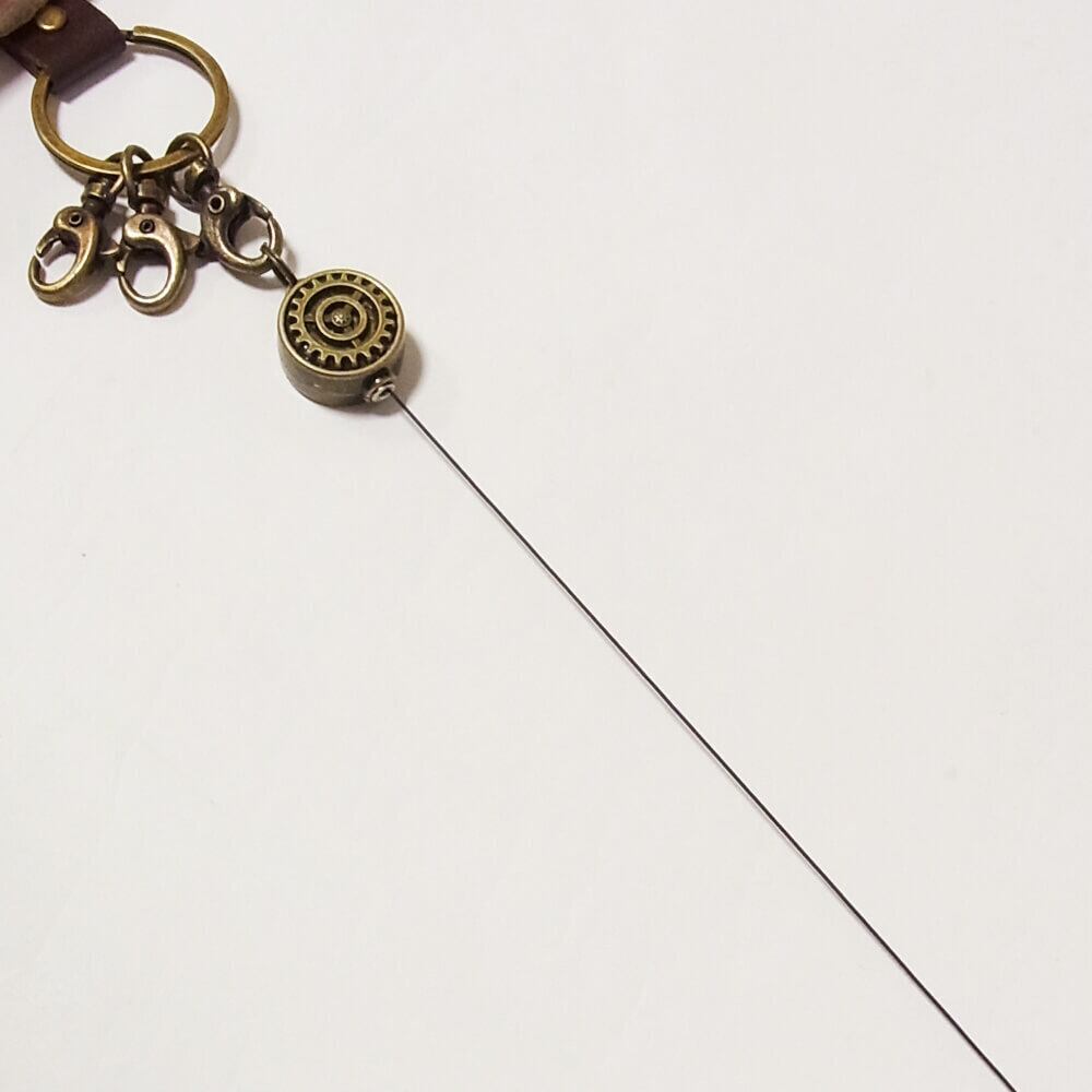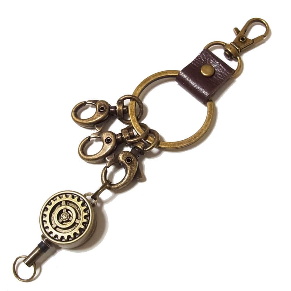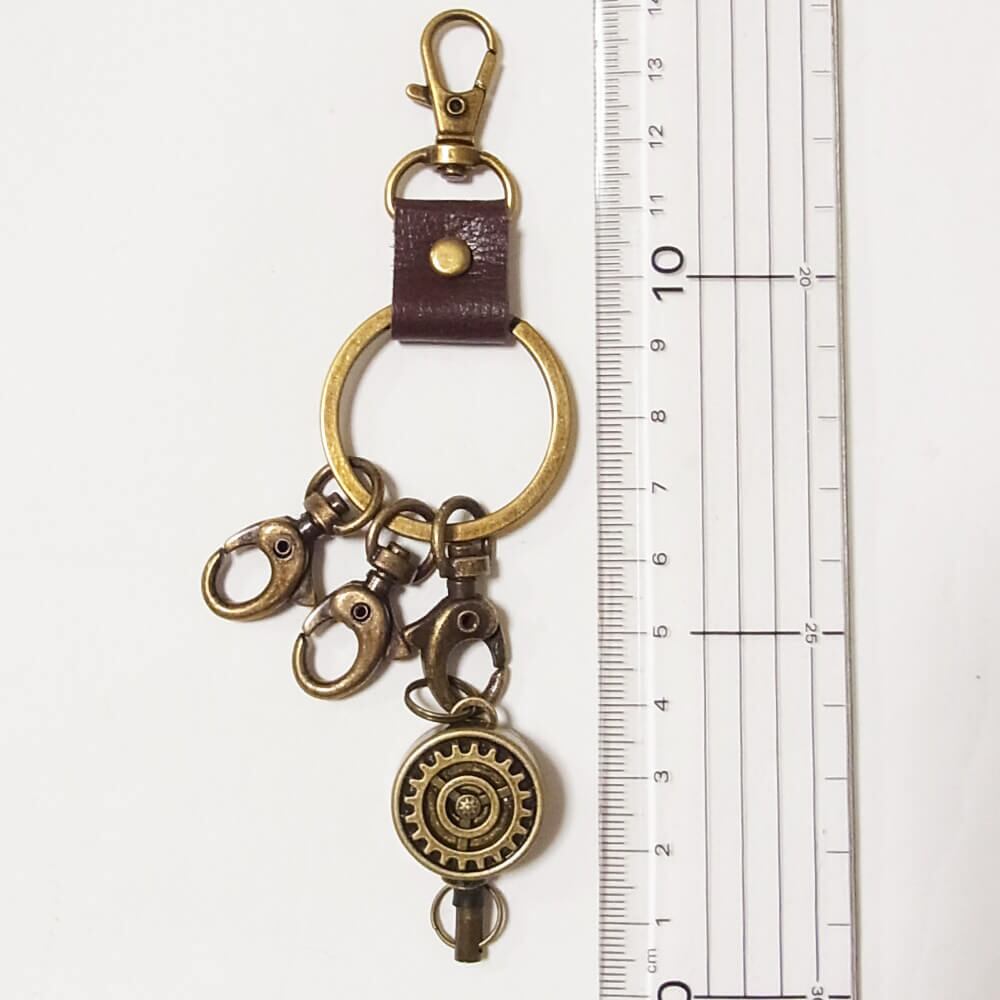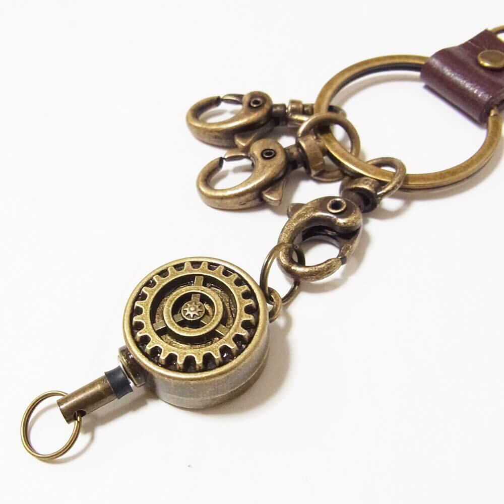 【steampunk】歯車 スチームパンク リール キーホルダー 伸びる ワイヤー