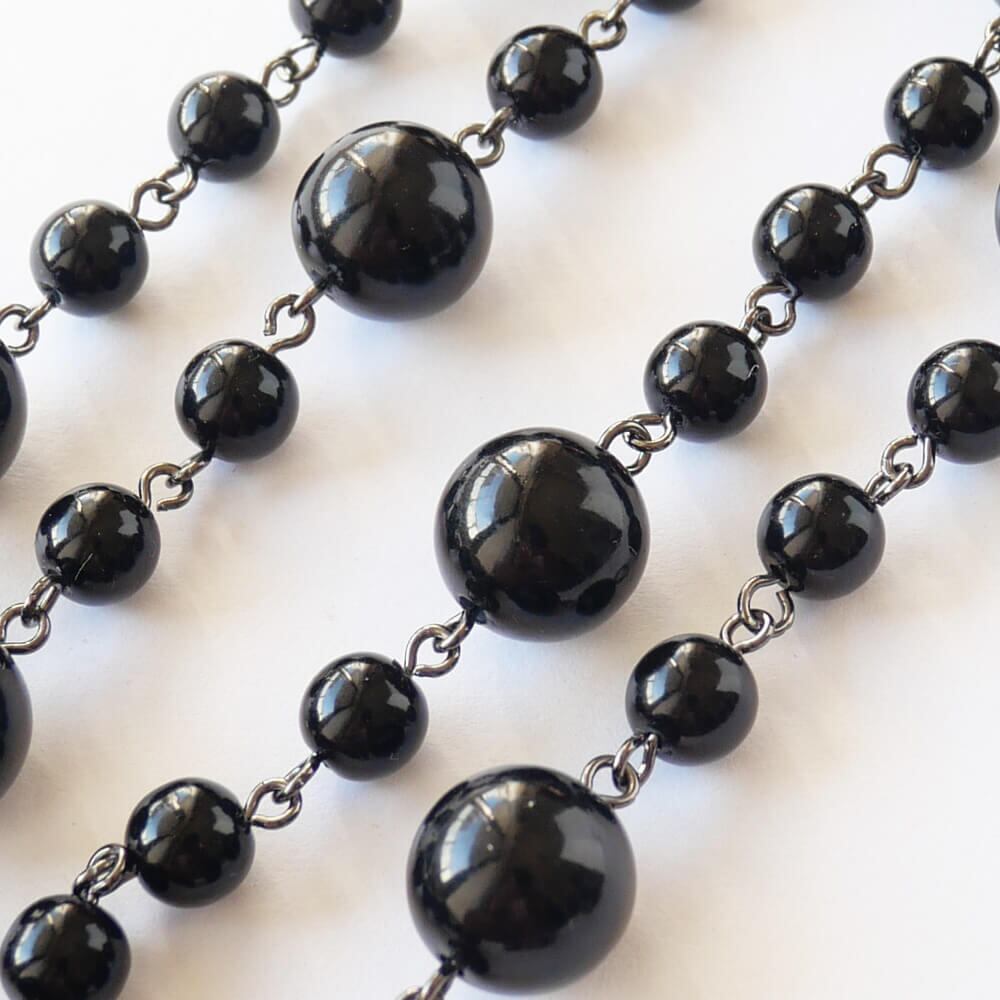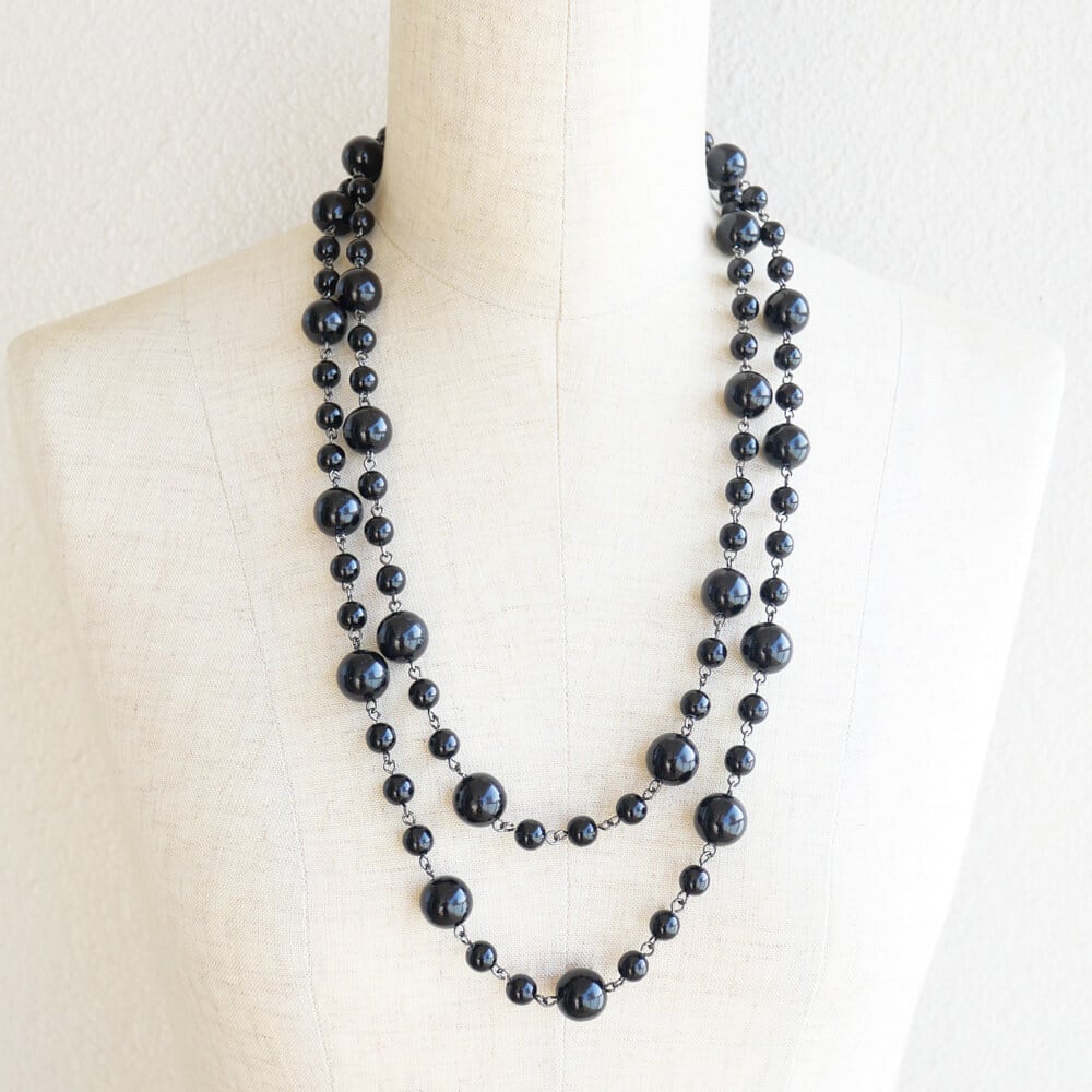 8ミリ、13ミリの2サイズの黒丸玉を9ピンでつないだネックレス