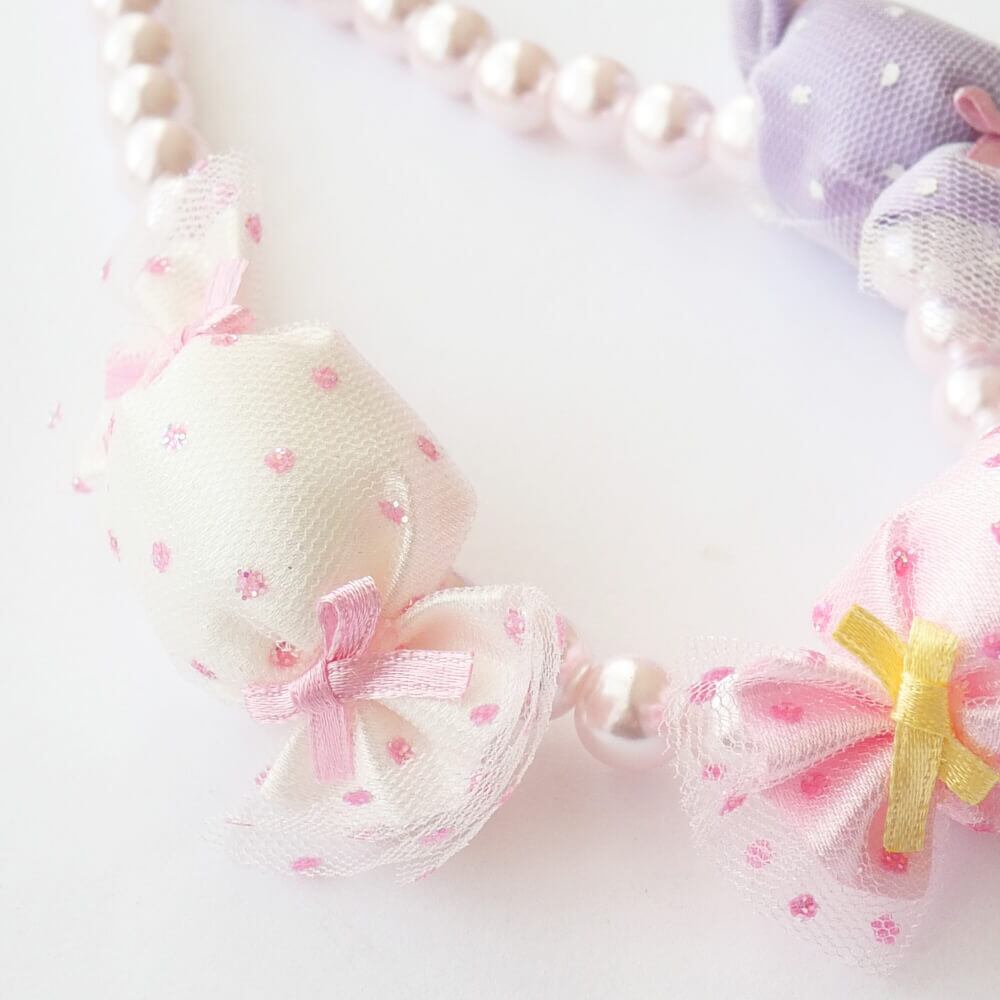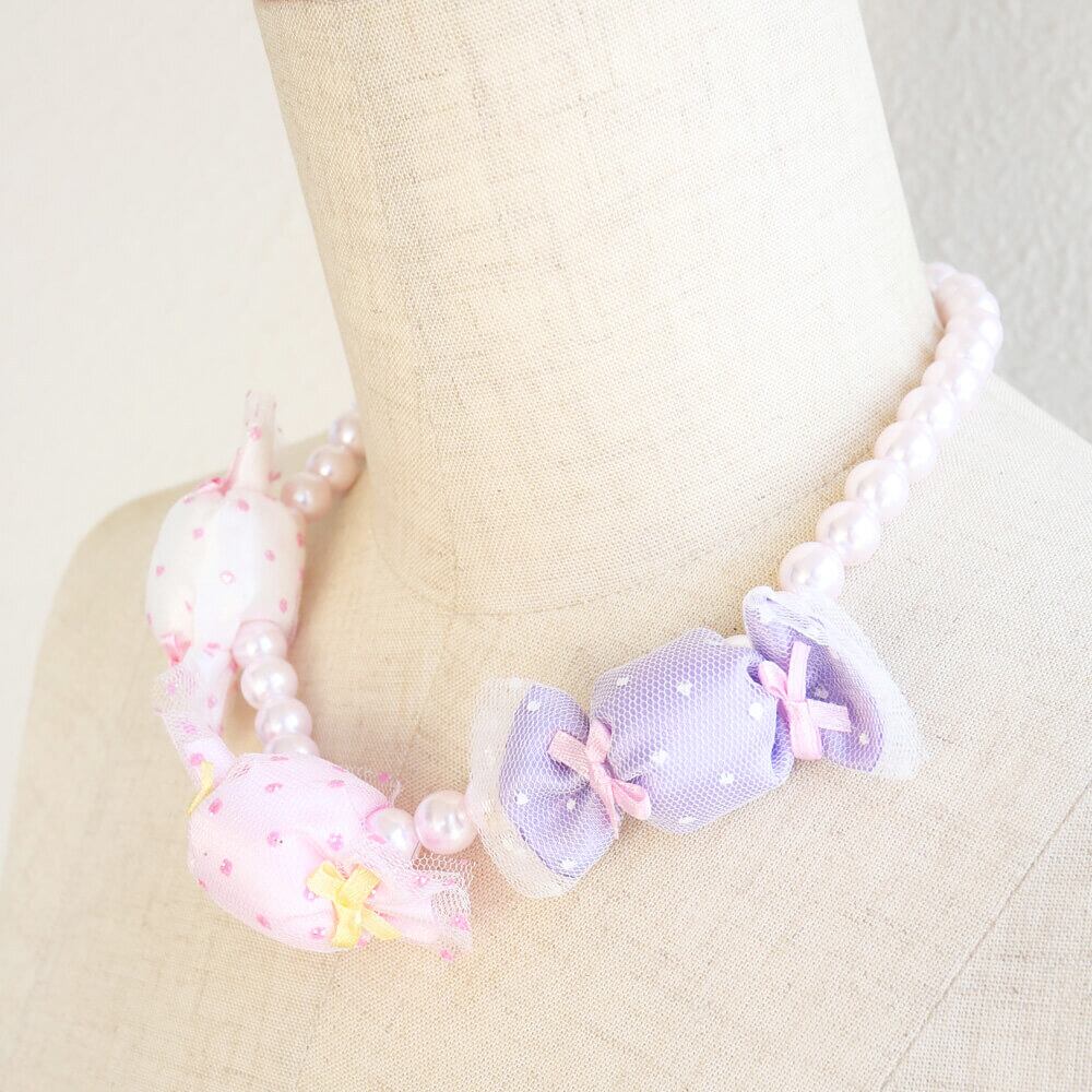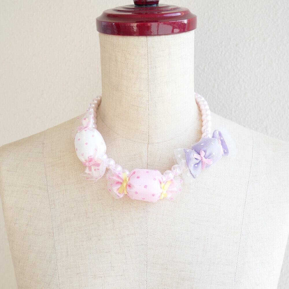 ホワイト、ピンク、パープルの水玉パステルカラーの3色のキャンディが、可愛らしさを引き立てます。