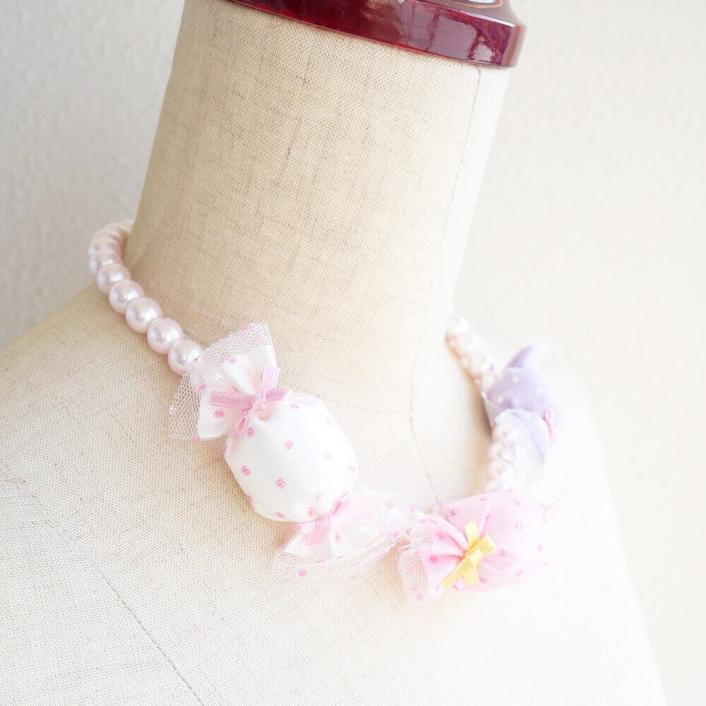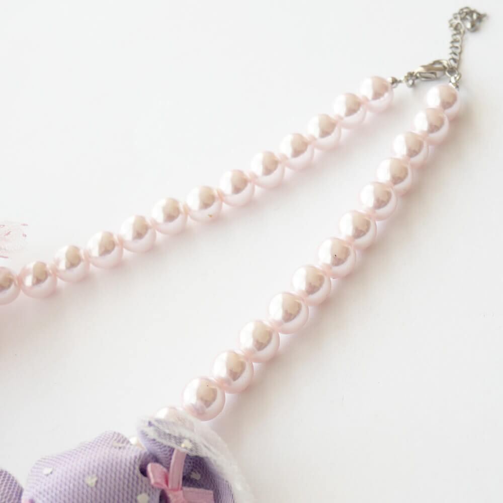 ピンクのパールを通したショートネックレスは、ロリータ系ファッションにぴったりのアイテムです。