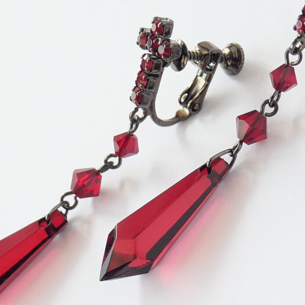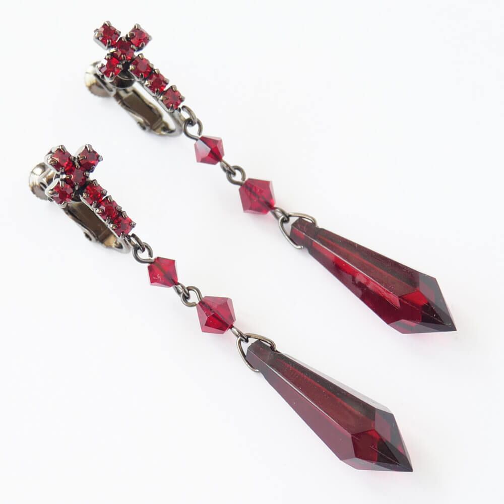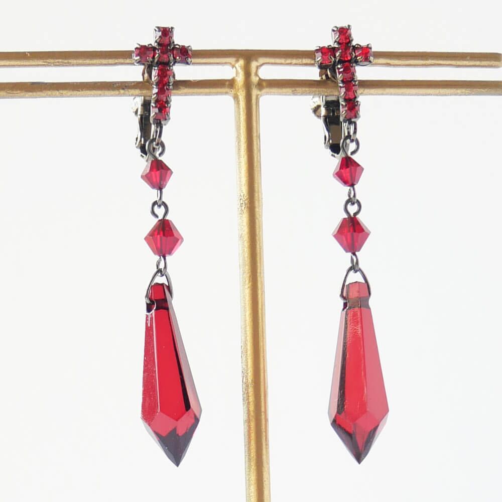 イヤリング クロス ゴスロリ レッド カットパーツ ラインストーン 十字架