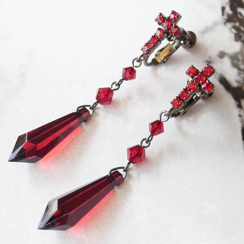 ゴシックスタイルから黒系、赤系のドレスに合わせられる十字架イヤリングです。