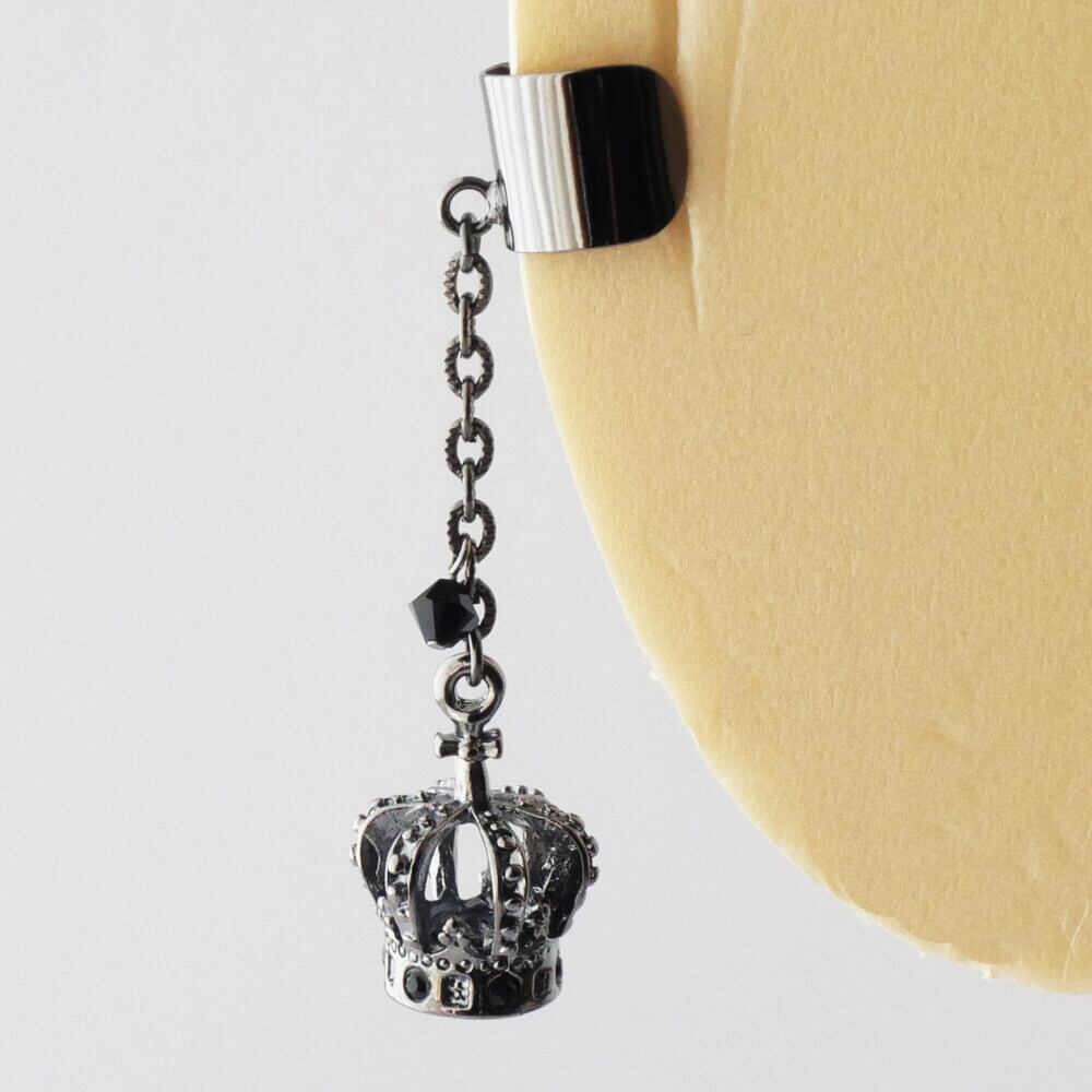 イヤーカフ 王冠 ブラック クリスタル ゴスロリ 地雷系 片耳タイプ