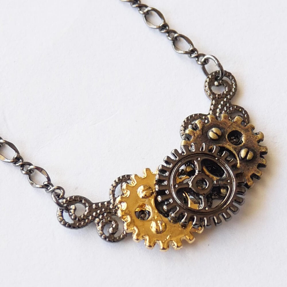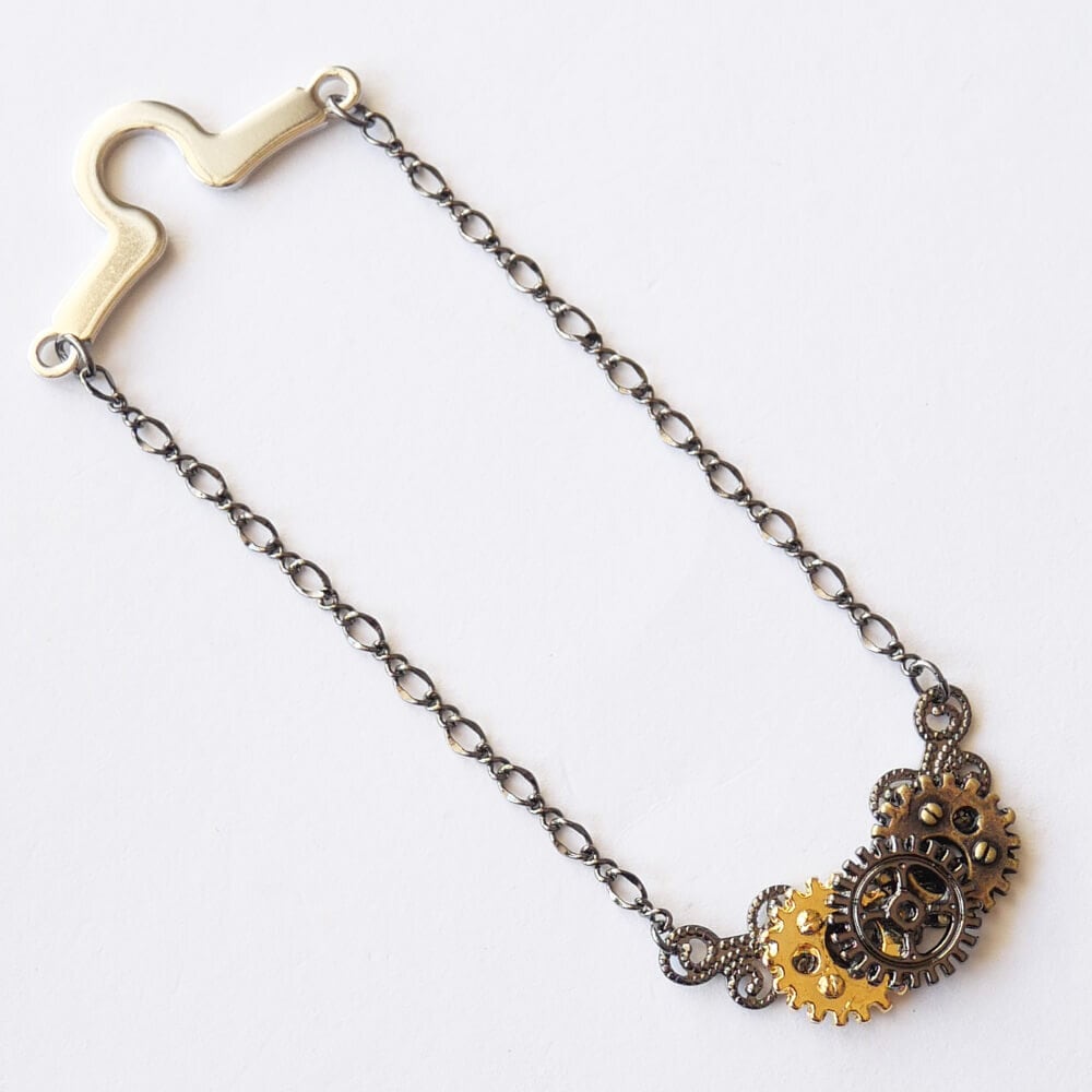 3つの歯車を重ねたデザインが特徴で、スチームパンクの魅力を引き立てて個性的な印象を与えます