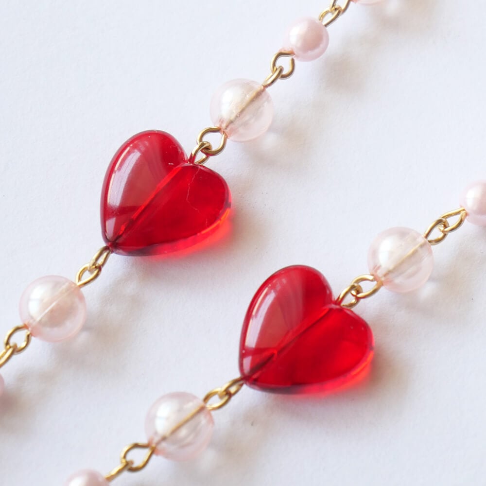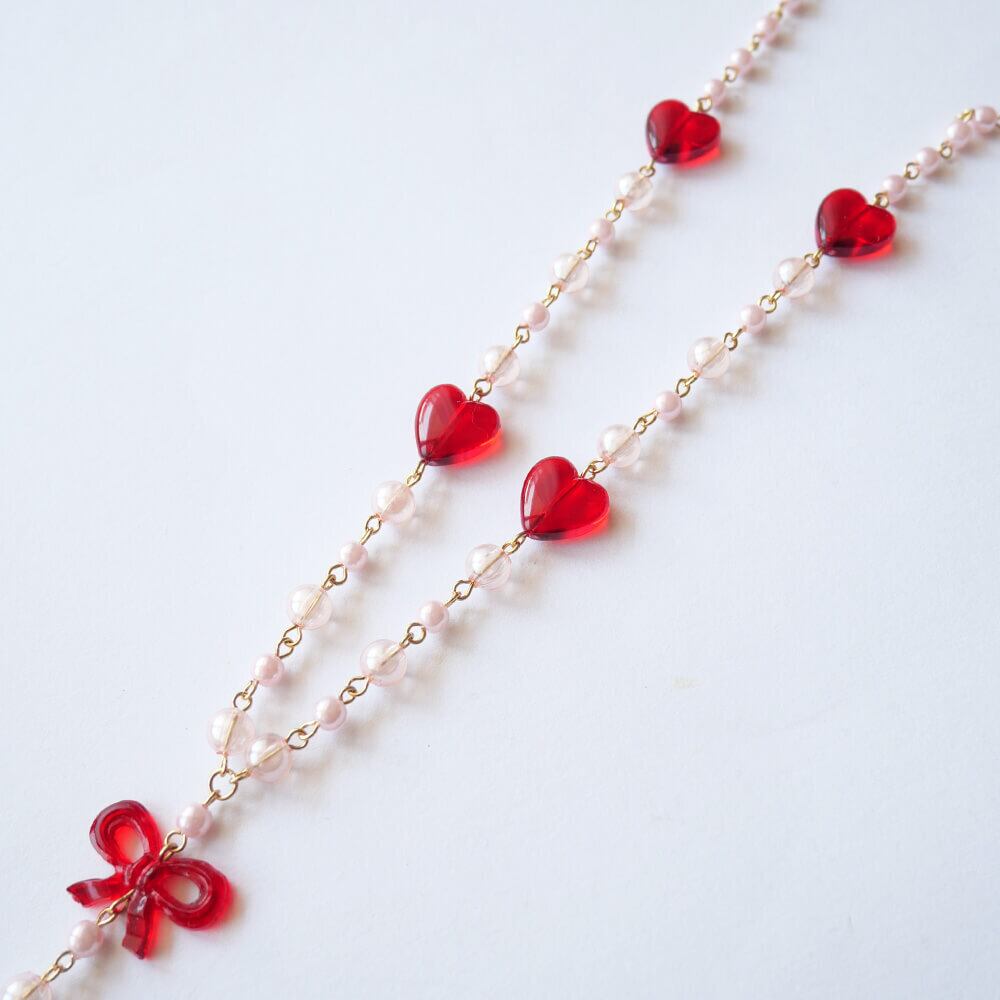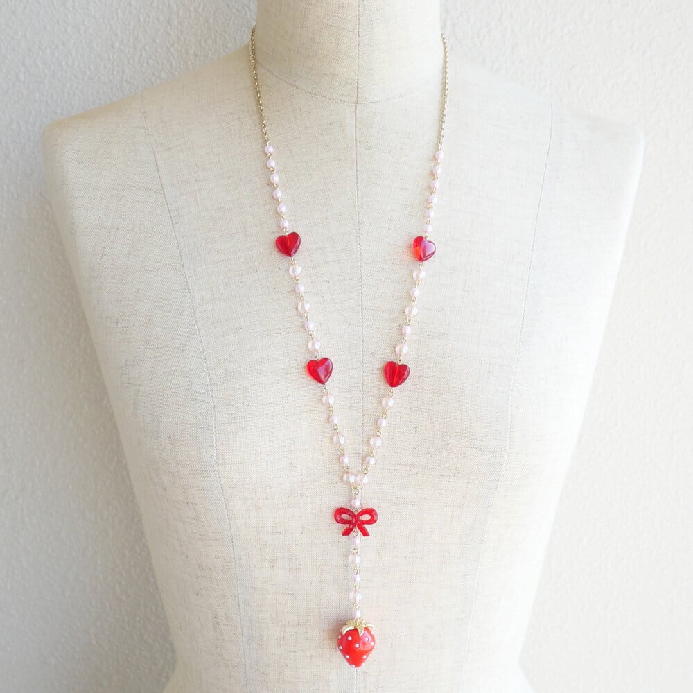 苺×リボン×ハートモチーフのロザリオネックレスです。