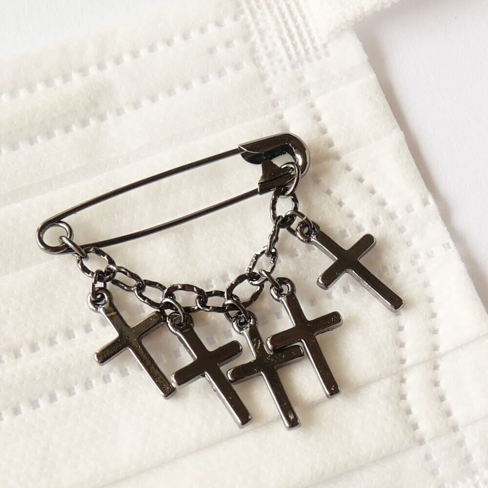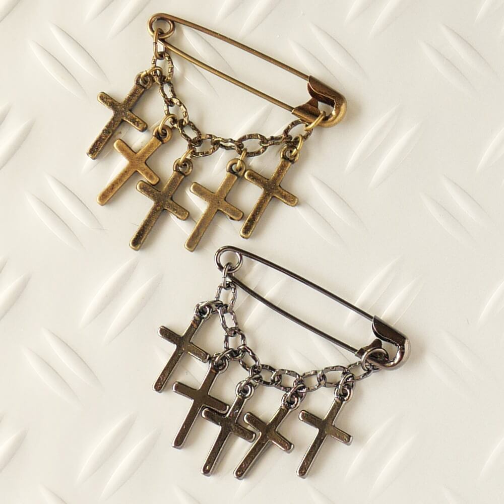 十字架 ミニブローチ 安全ピン マスクチャーム | ゴスパン アンティークゴールド